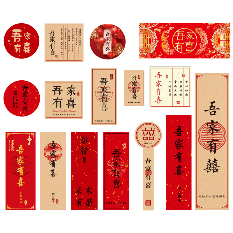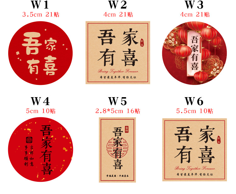 吾家有喜 贴纸 喜庆用品 不干胶 喜事封口贴