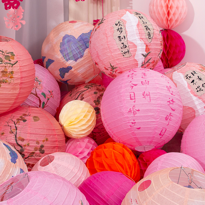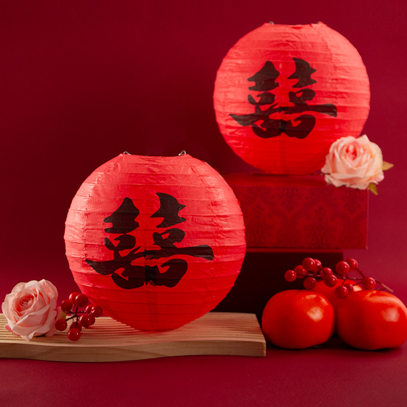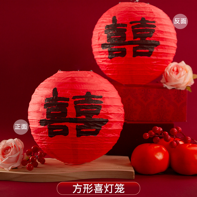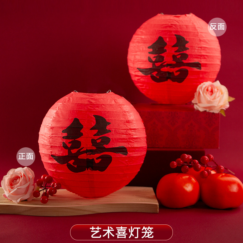 结婚纸灯笼婚房布置拍照道具喜庆红喜字灯笼中式婚礼摆件树挂灯笼
