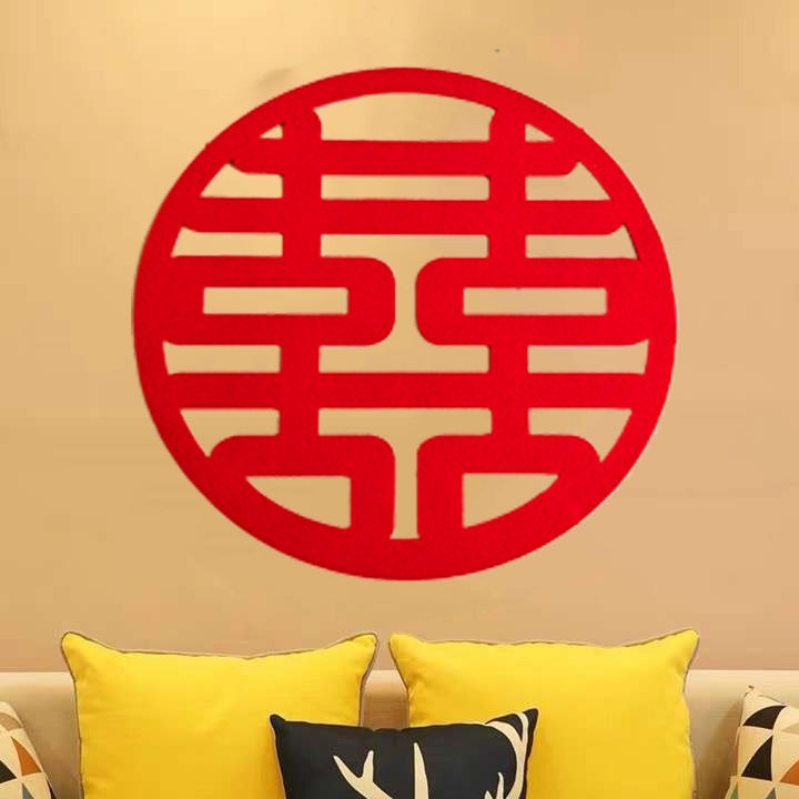 结婚婚庆用品喜字厂家批发大号喜字窗花喜字大门植绒喜字贴喜庆用