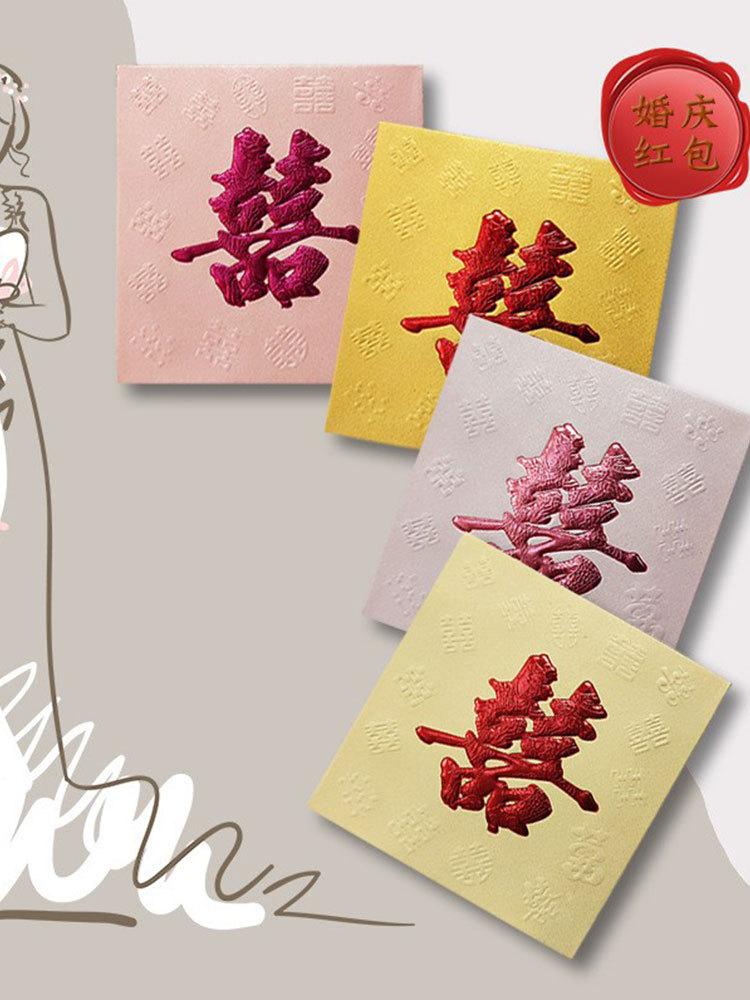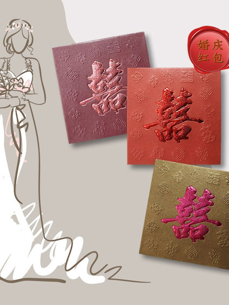 结婚红包立体浮雕双喜利是封婚庆用品礼金方形百元红包袋婚庆用品