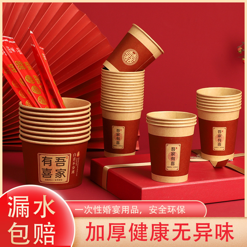 结婚用品大全喜字纸杯家用婚礼婚庆加厚红色一次性喜杯子喜庆水杯