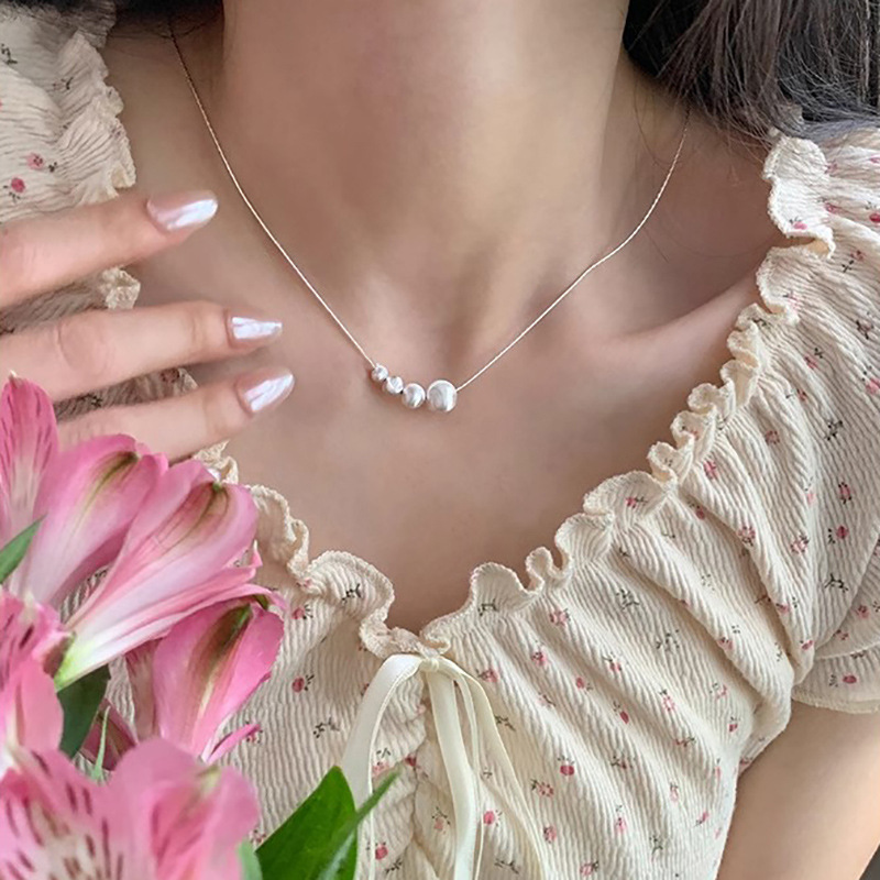法式猫眼滚珠项链女ins小众百搭设计感颈链轻奢时尚高级感锁骨链