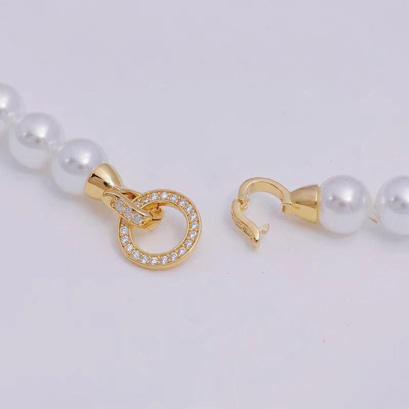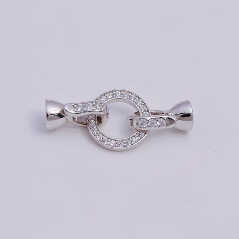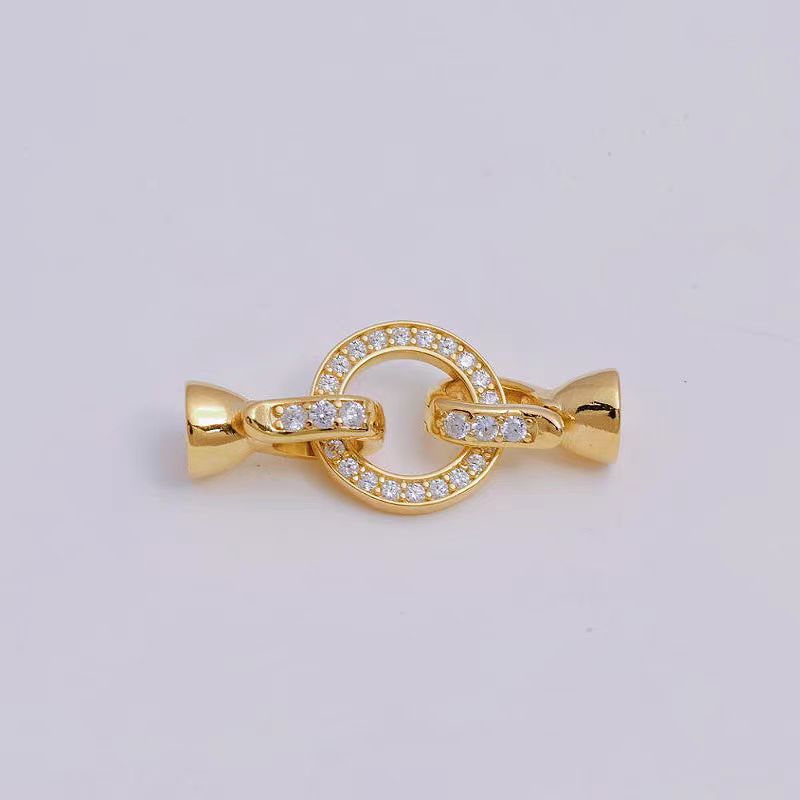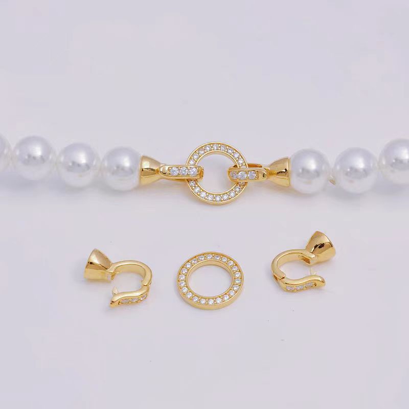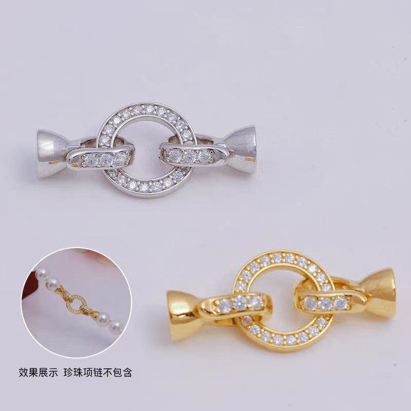 18k包金圆形mini迷你锆石项链扣穿小珠子搭扣珍珠饰品扣配件批发
