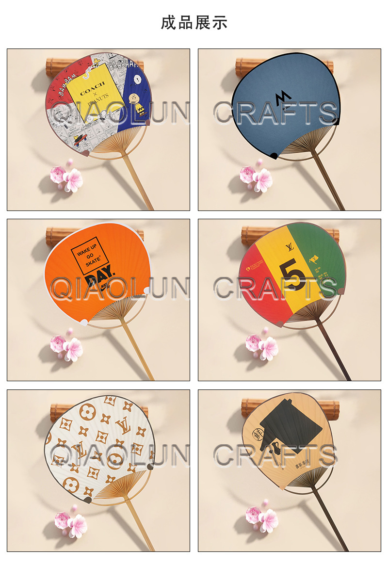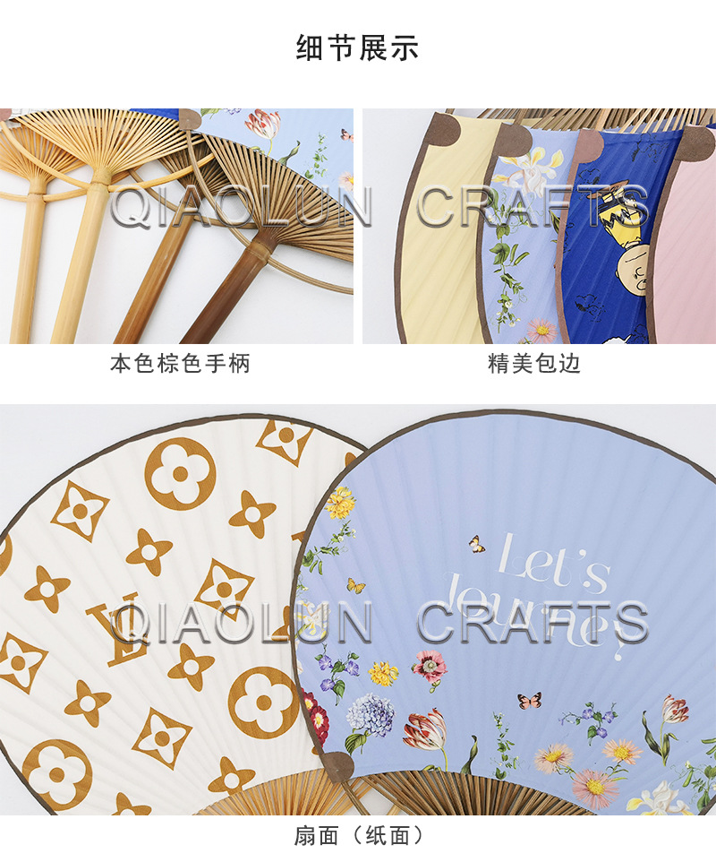 厂家制作广告团扇diy 山水画圆柄团扇 日式古典团扇图案批发