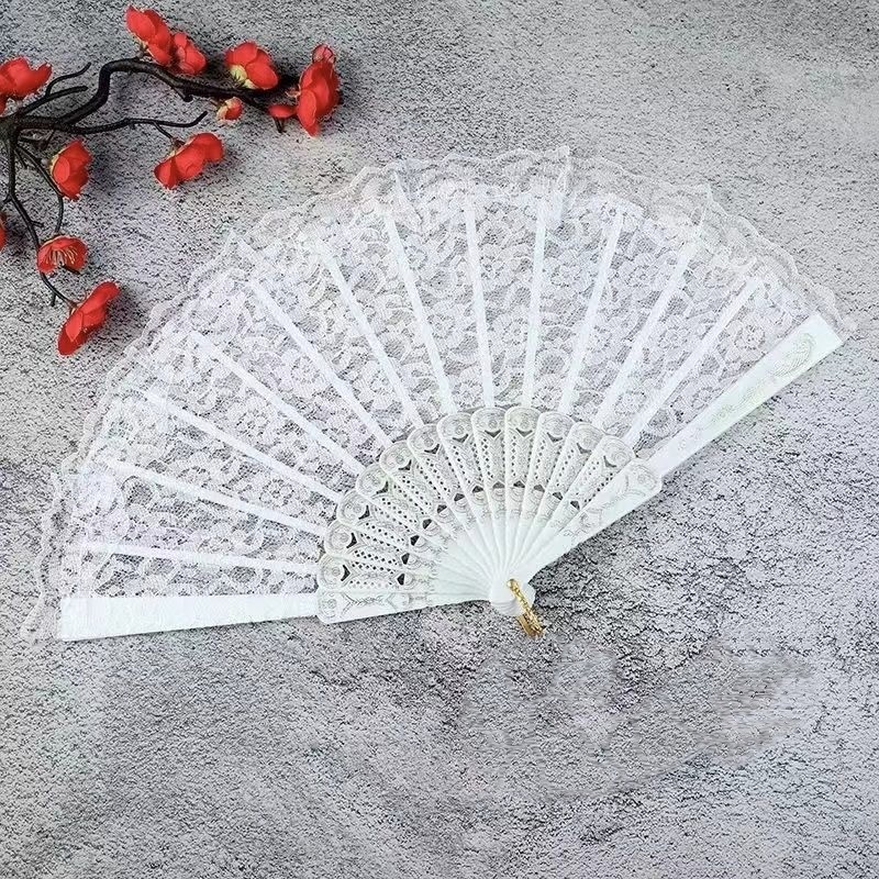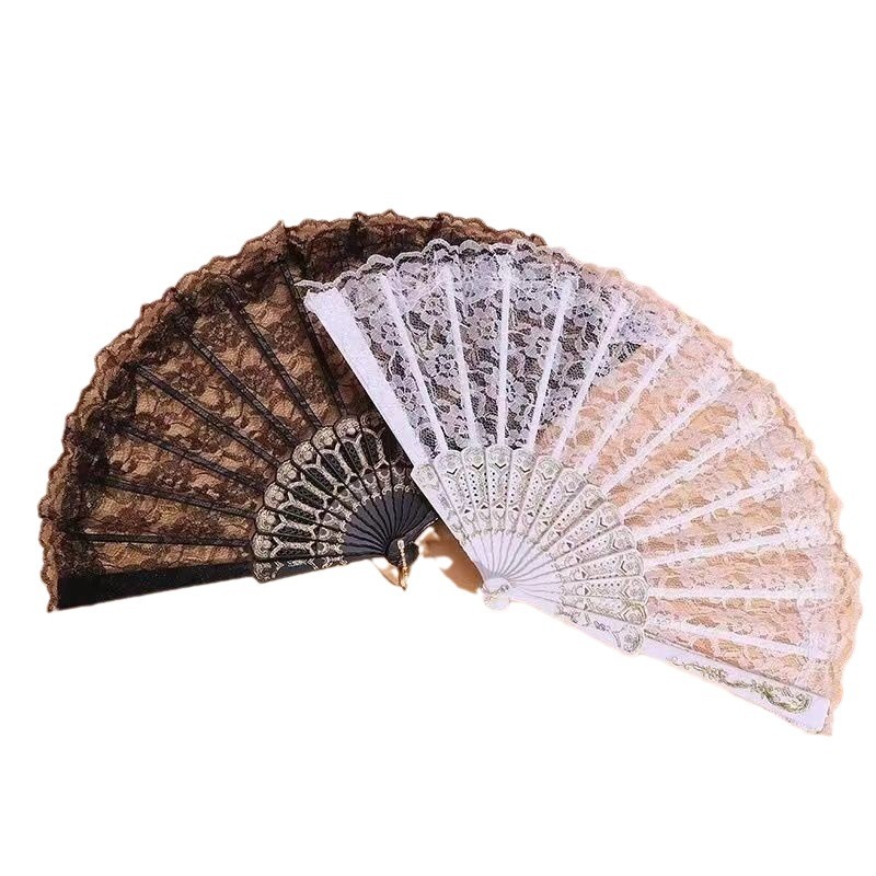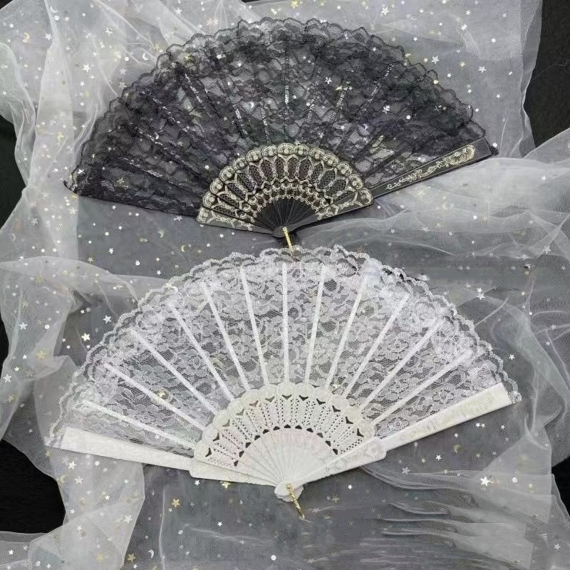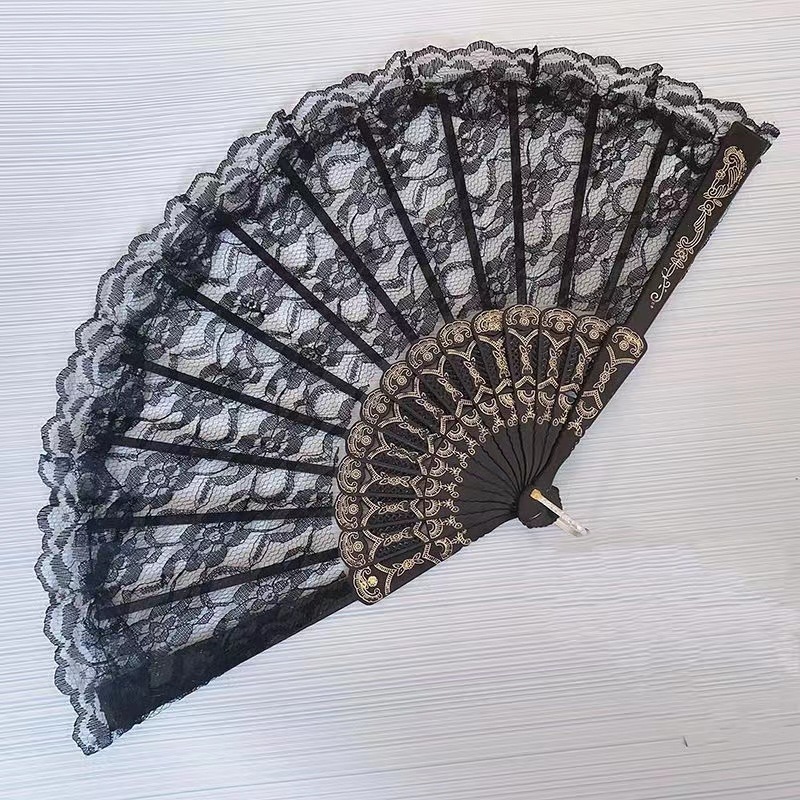 洛丽塔单层花边蕾丝扇新中式古典旗袍走秀拍照折扇暗黑系中华娘娘