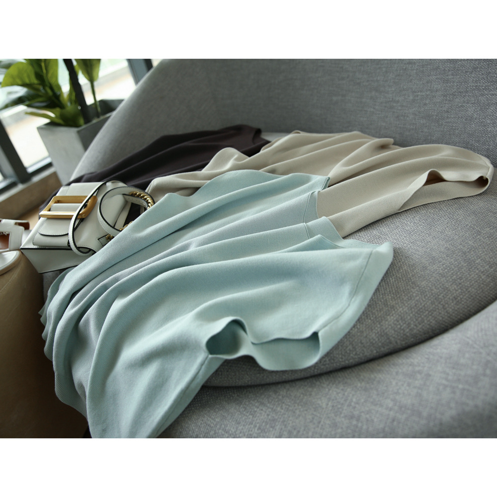 女装2024纯色 针织t恤短袖冰丝蝙蝠衫夏季新款英伦风薄款套头上衣