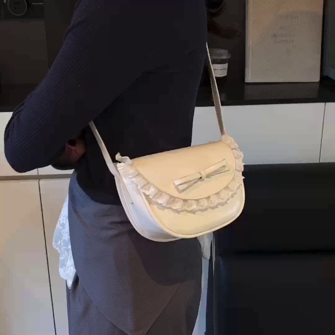 韩版蕾丝花边单肩腋下包新款休闲时尚甜美斜挎马鞍包816