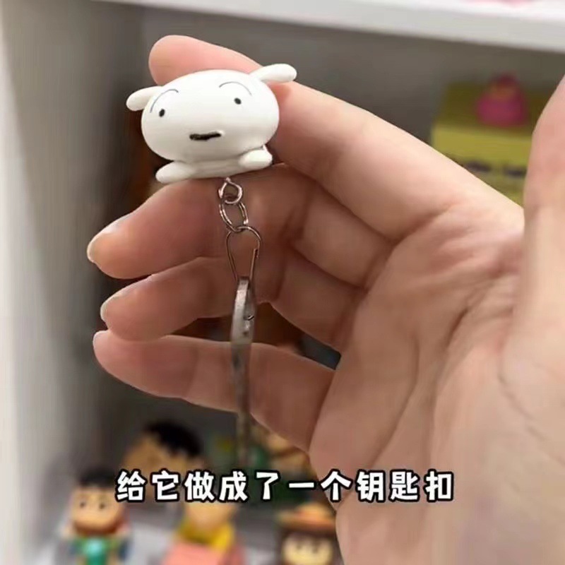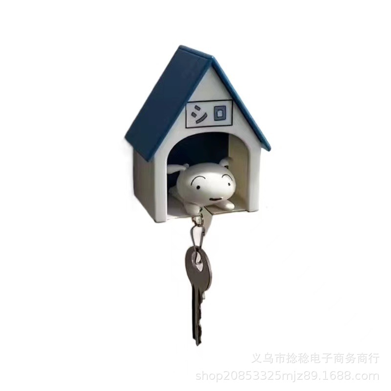 抖音爆款超可爱小白回家钥匙扣蜡笔小新玩偶防丢狗窝房子创意挂件