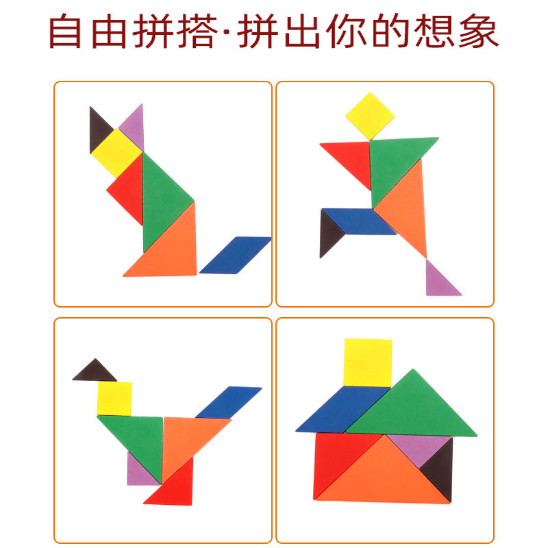 七巧板智力拼图小学生数学几何教具学具一二年级上下册带收纳盒