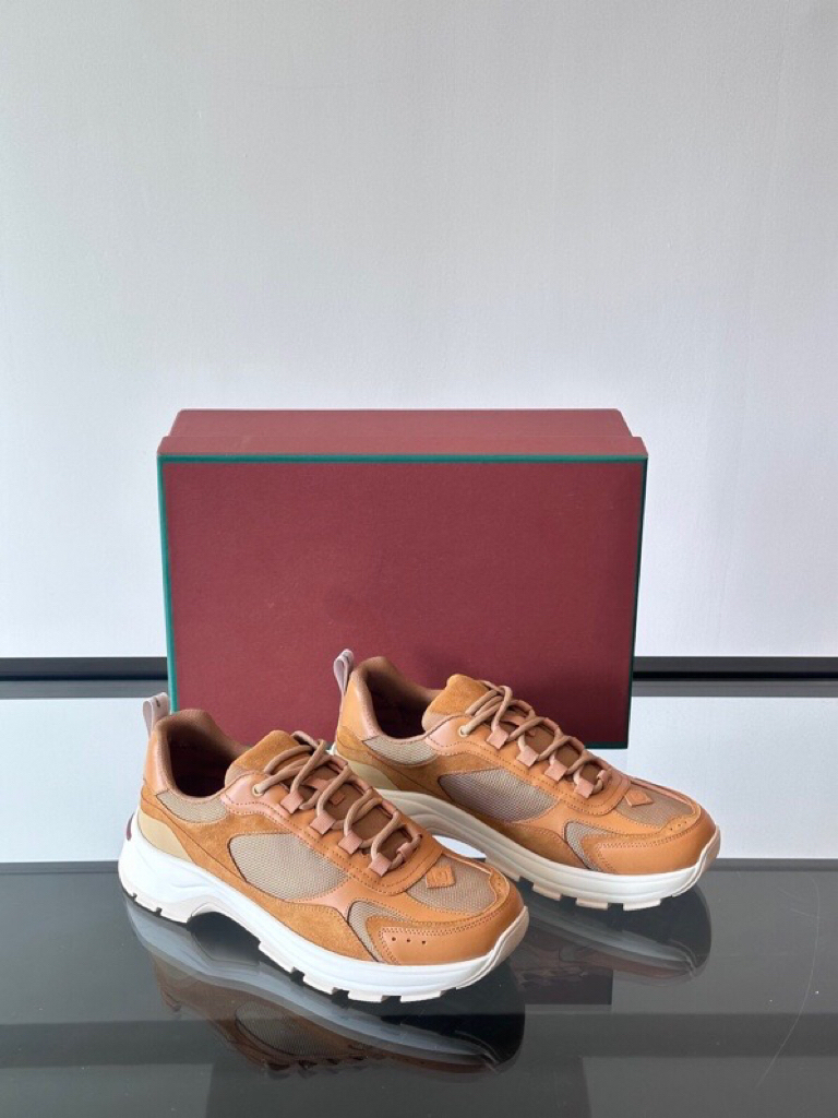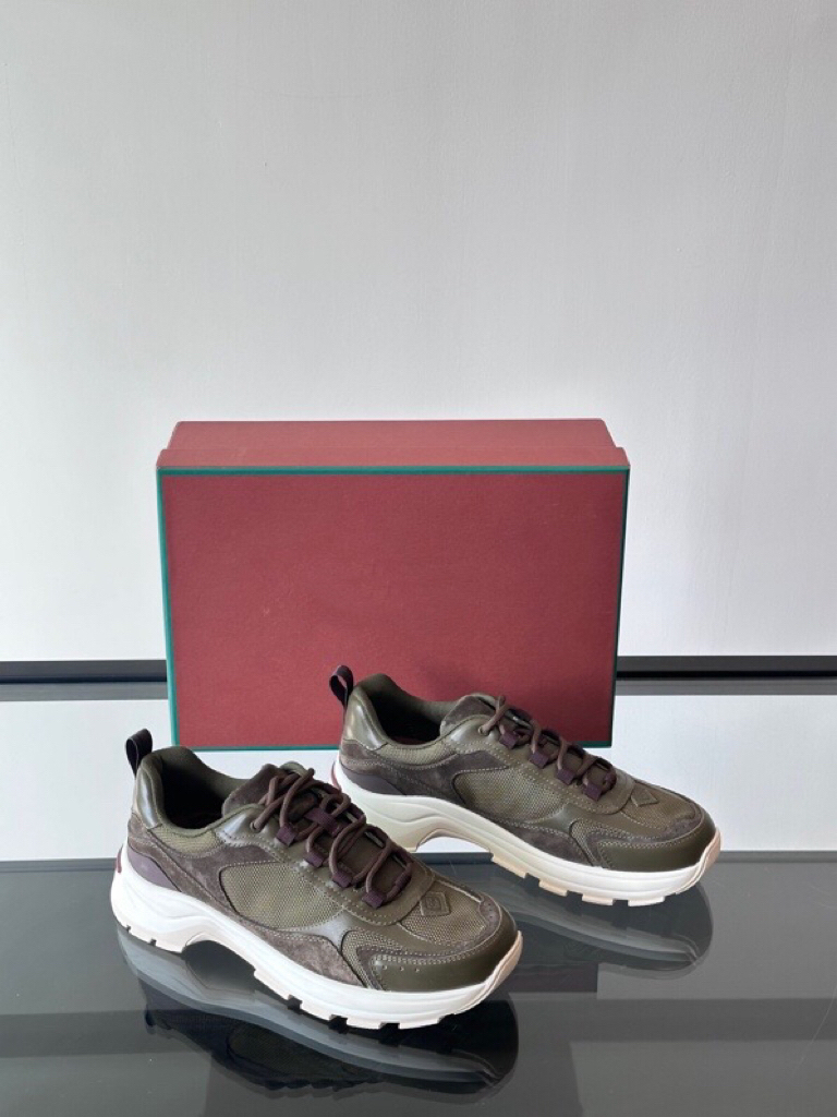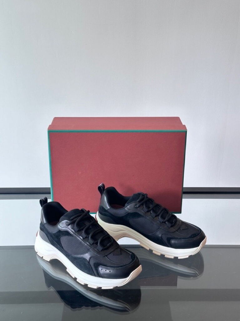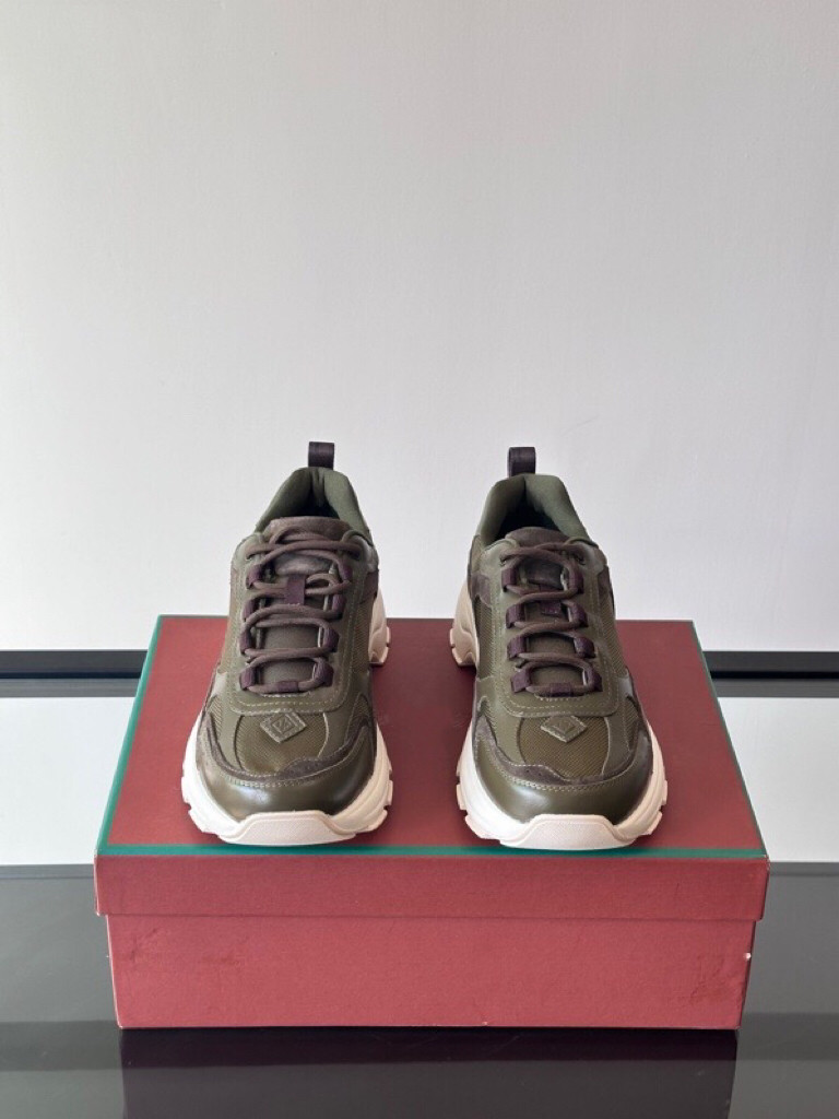 顶版欧洲站2025新款经典刺绣字母牛皮系带厚底休闲运动鞋老爹鞋男