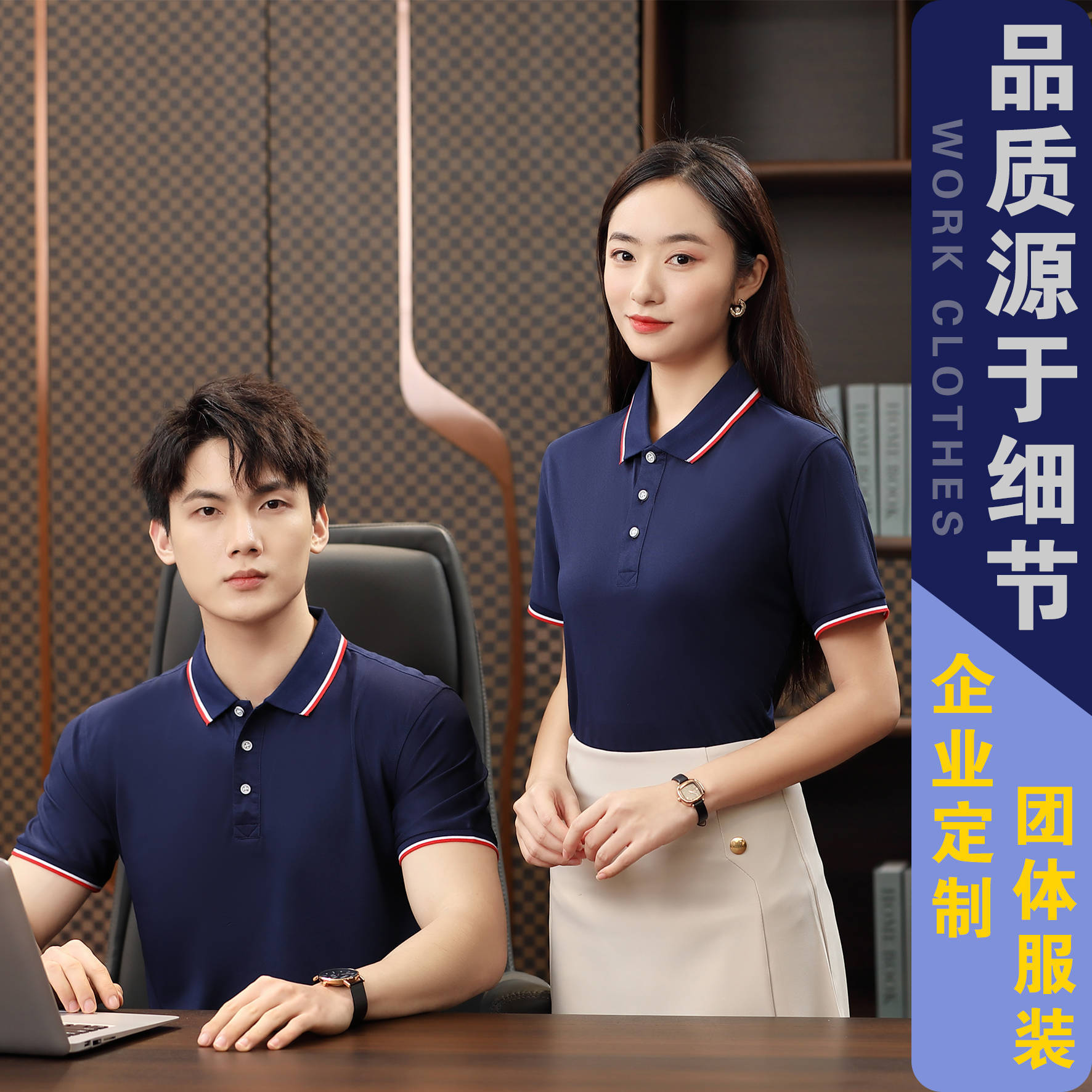 企业定制工作服印logo短袖t恤翻领冰离子纯棉文化衫刺绣Polo衫