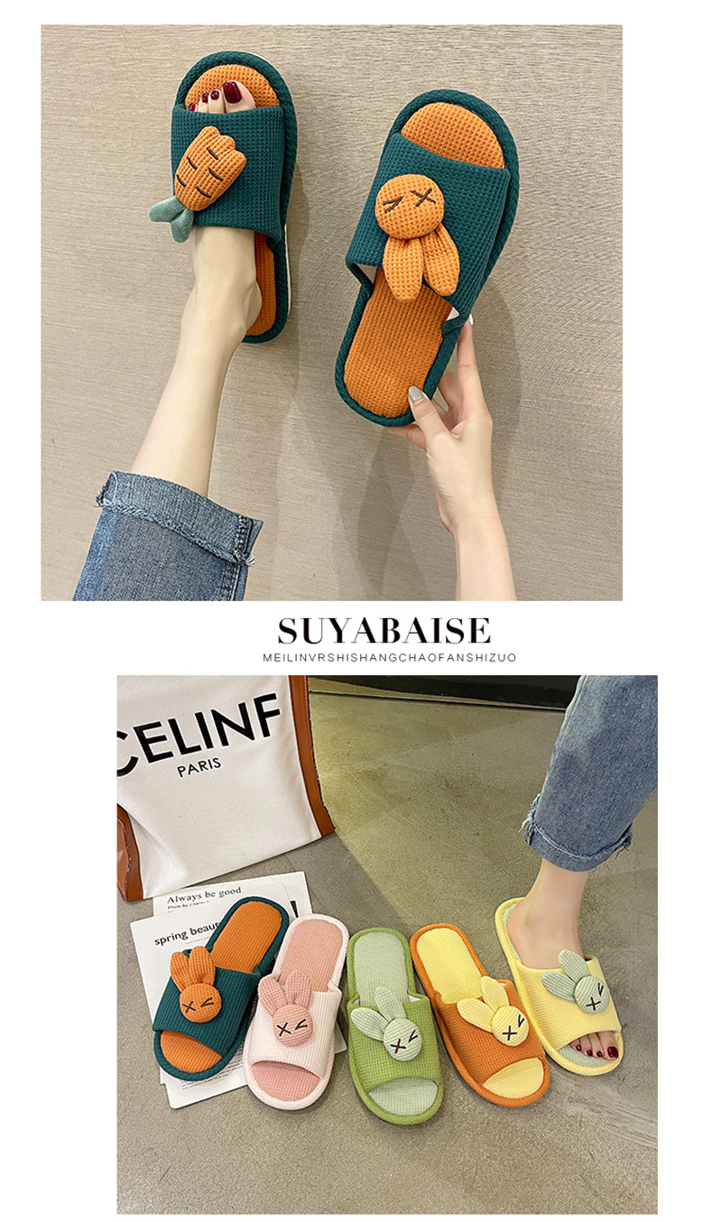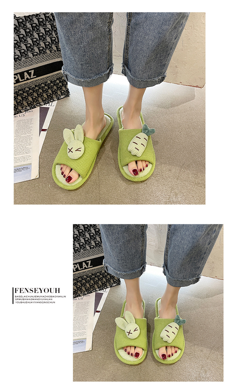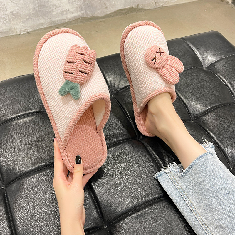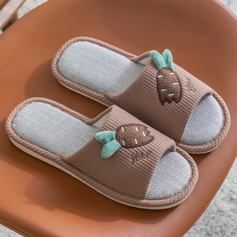 亚麻拖鞋女春秋家用室内秋季家居可爱棉麻静音棉麻居家布拖鞋情侣