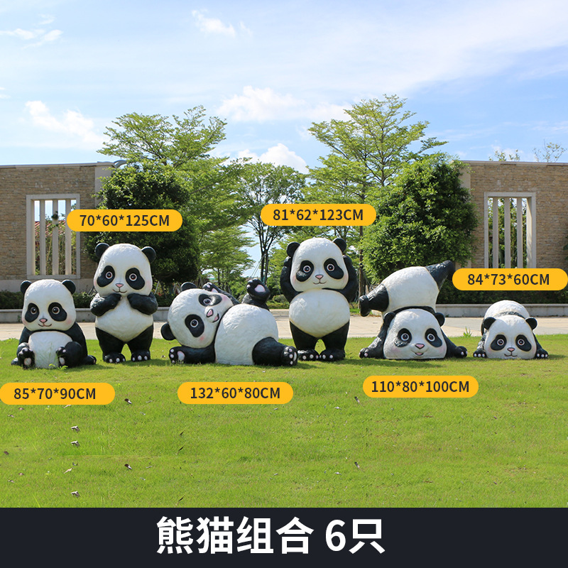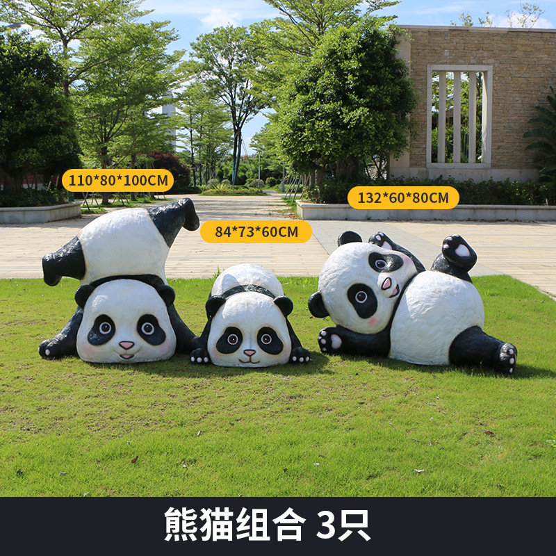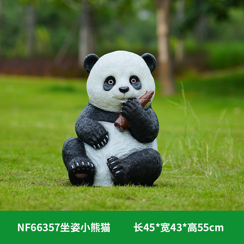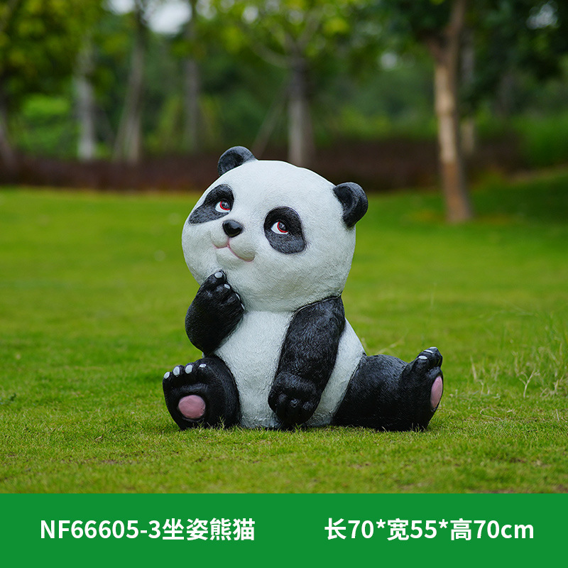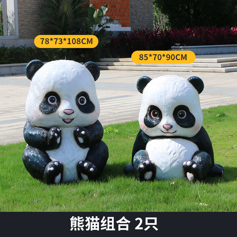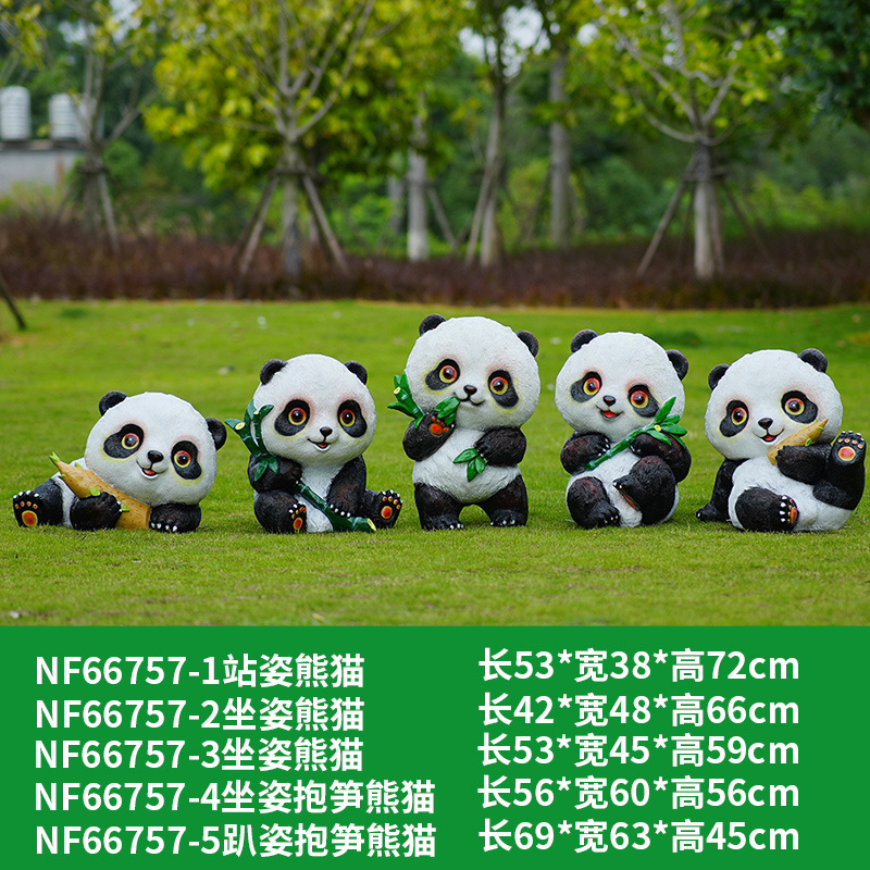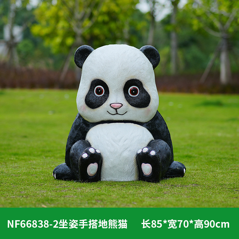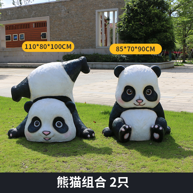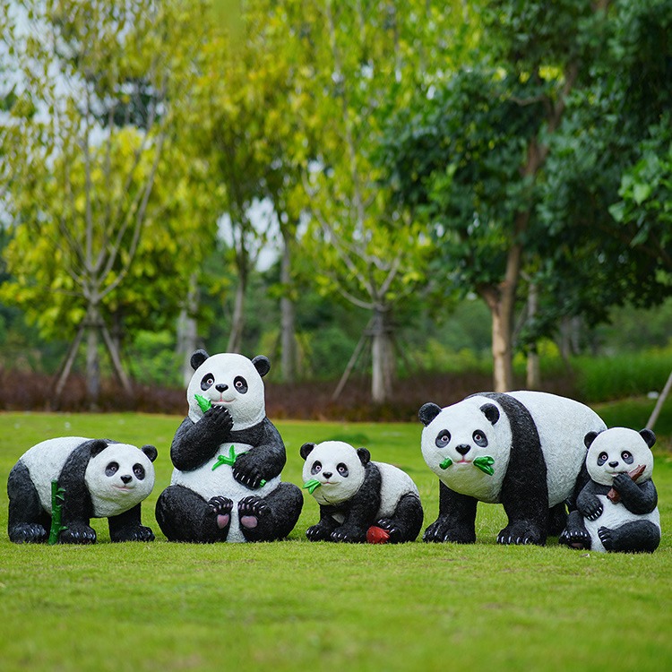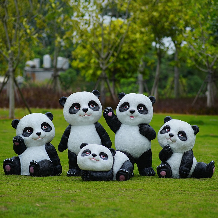 户外卡通熊猫雕塑玻璃钢动物摆件幼儿园售楼处小区园林草坪装饰品
