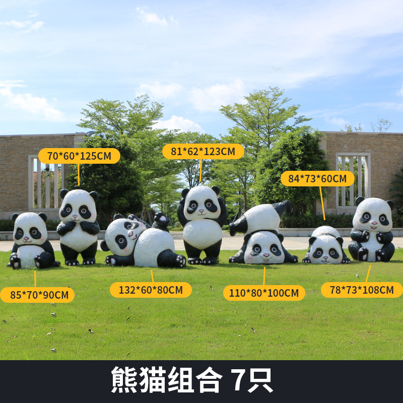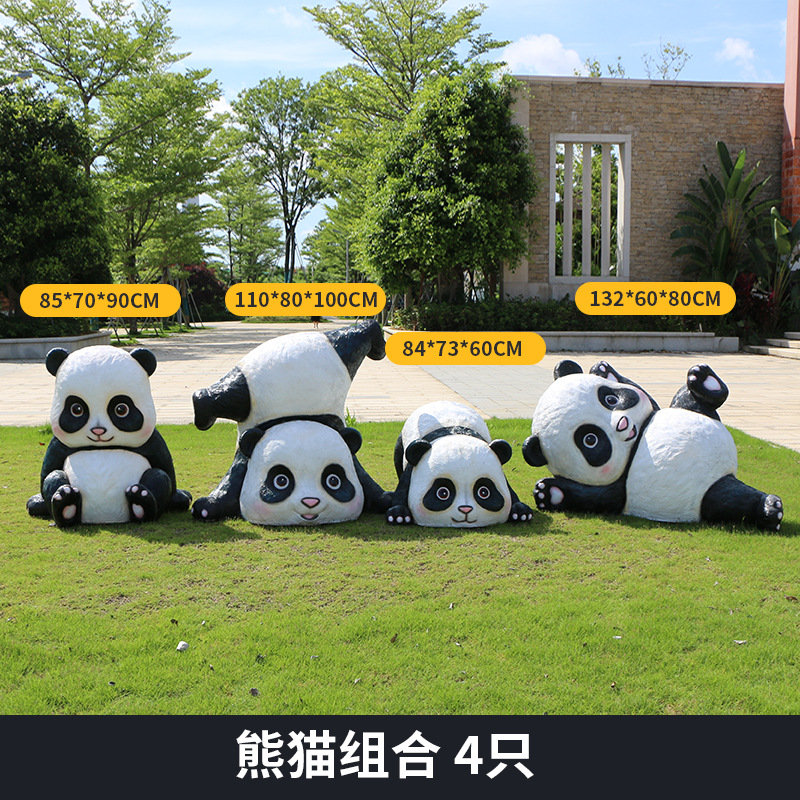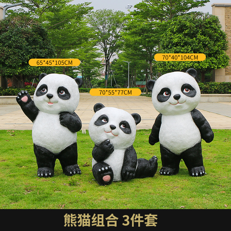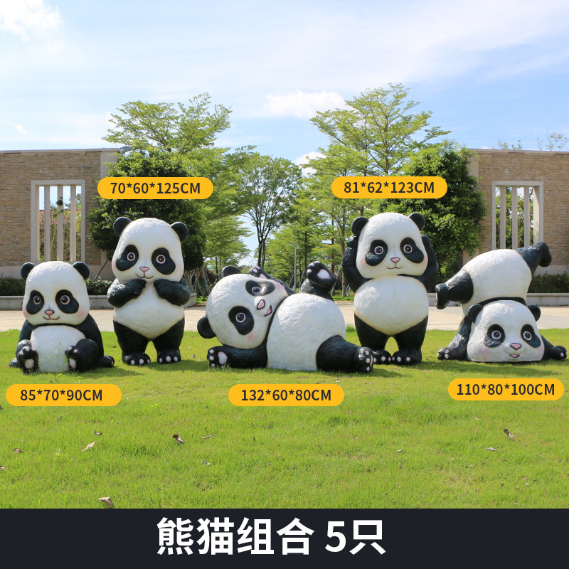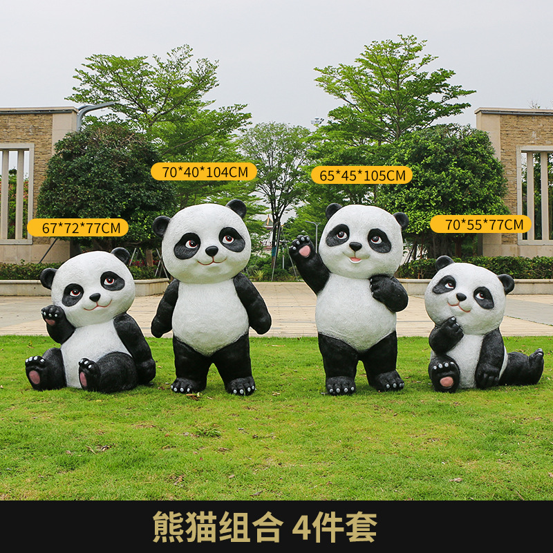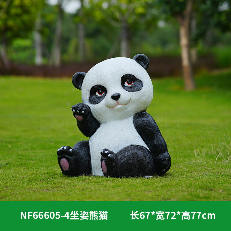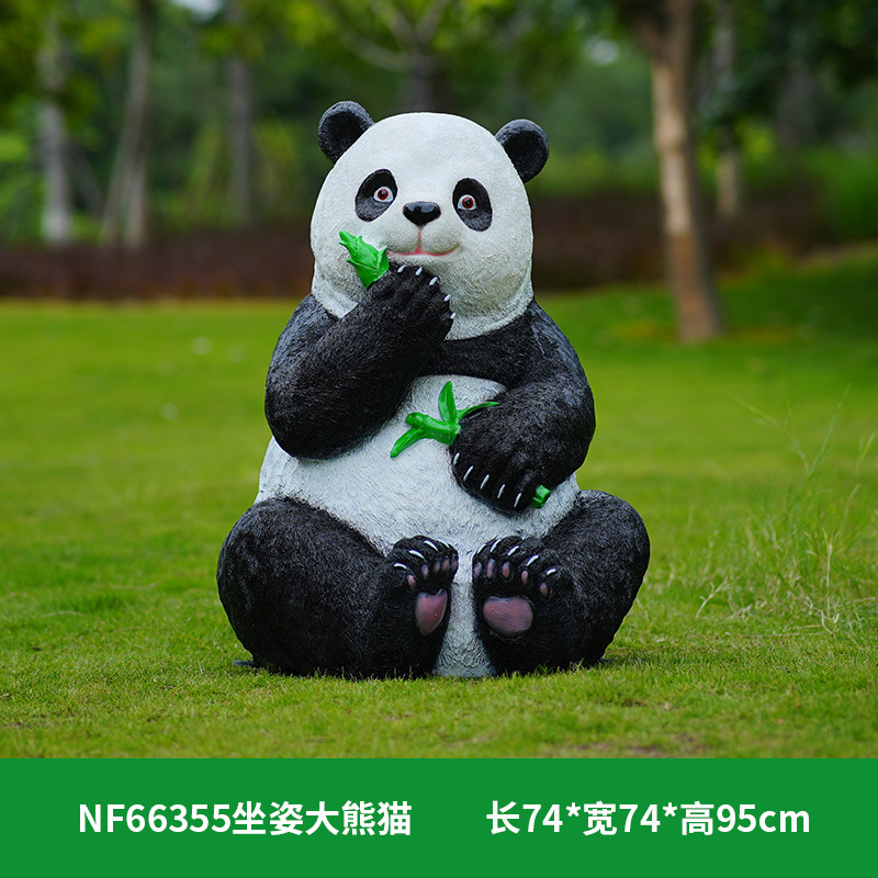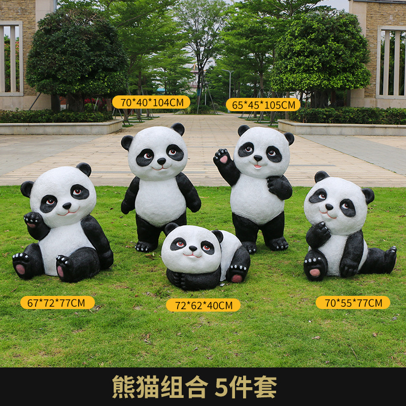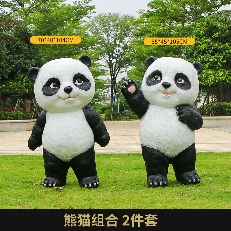 户外卡通熊猫雕塑玻璃钢动物摆件幼儿园售楼处小区园林草坪装饰品