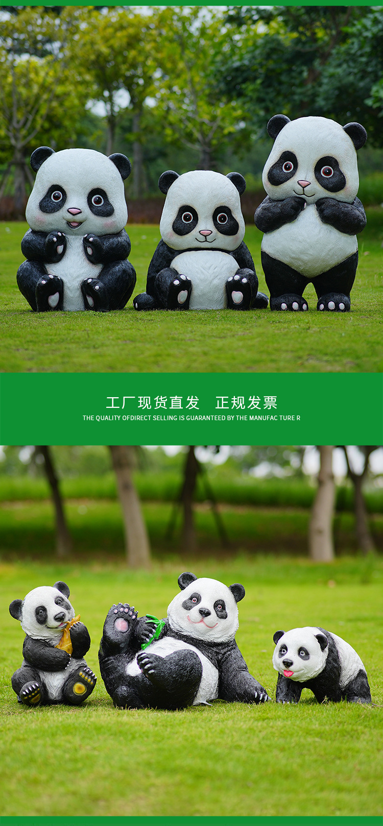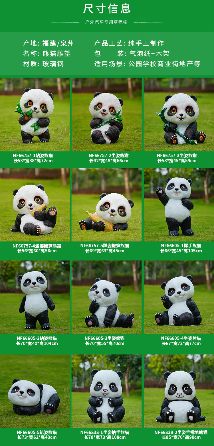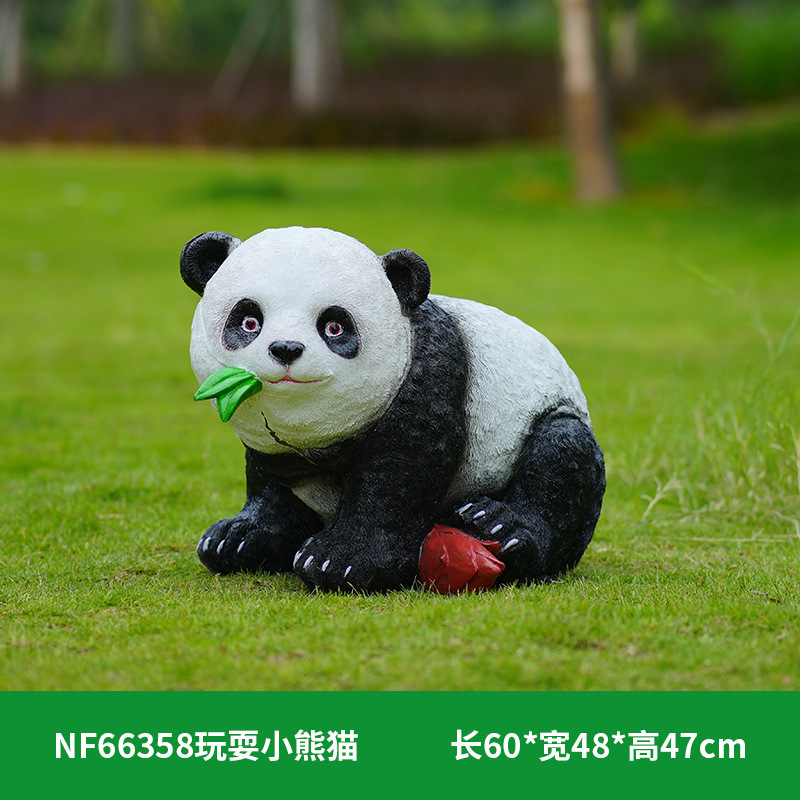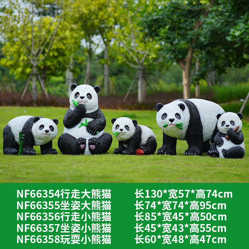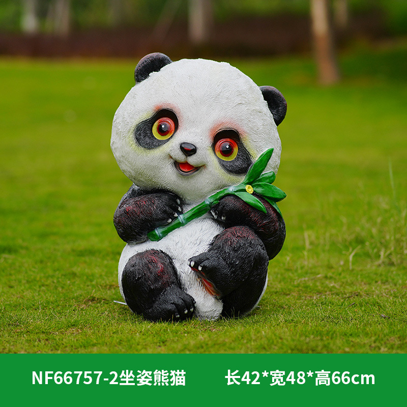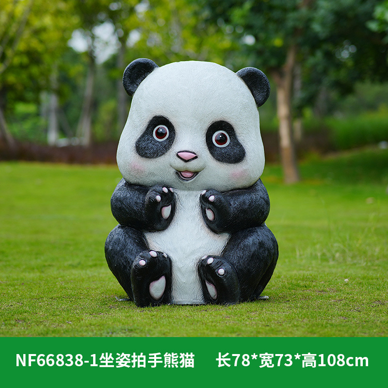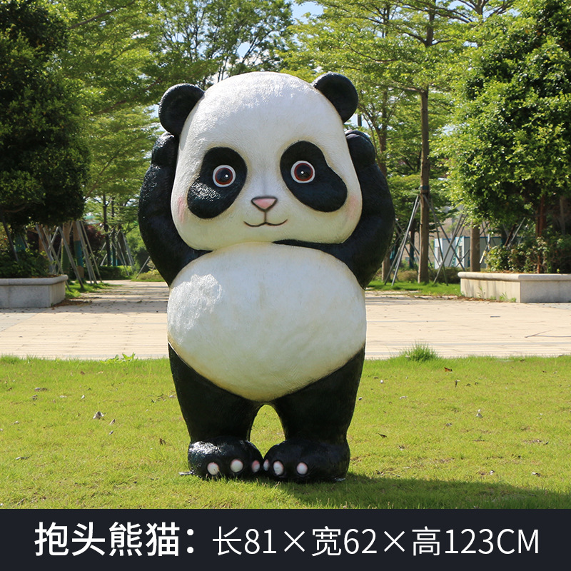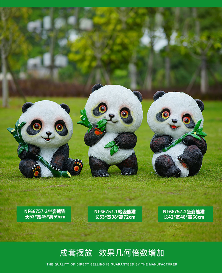 户外卡通熊猫雕塑玻璃钢动物摆件幼儿园售楼处小区园林草坪装饰品