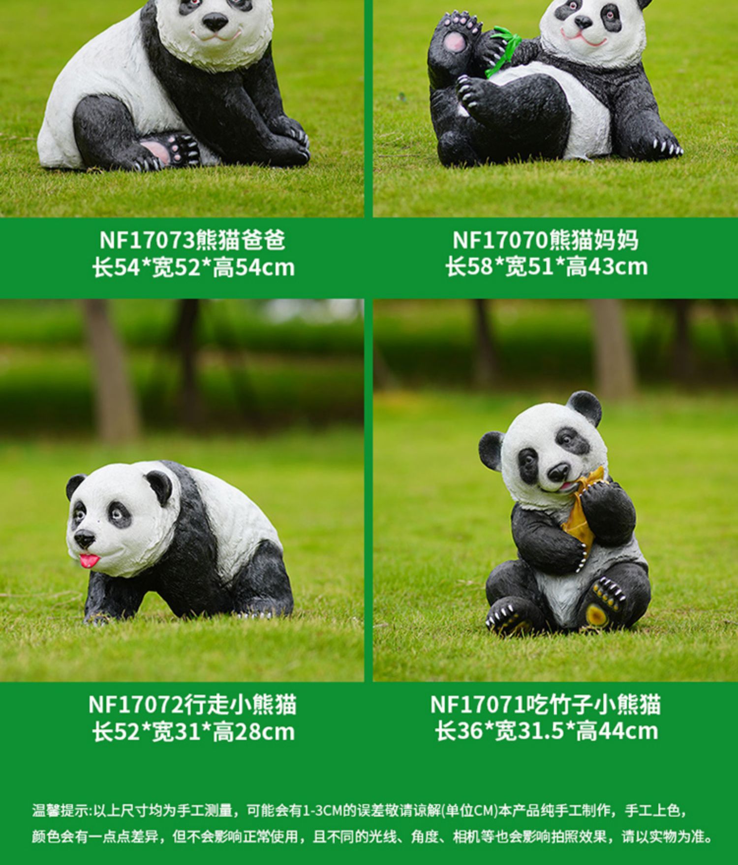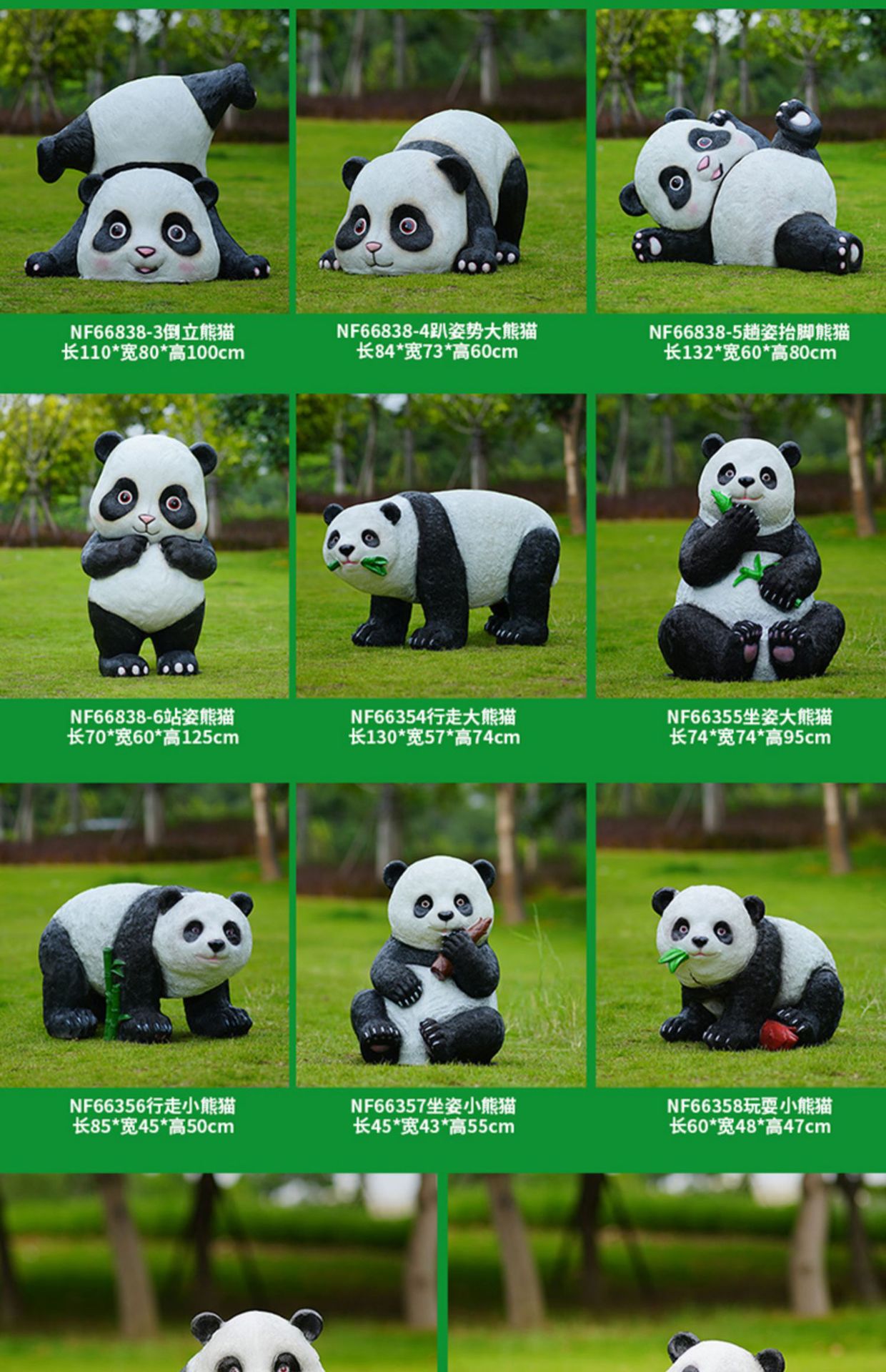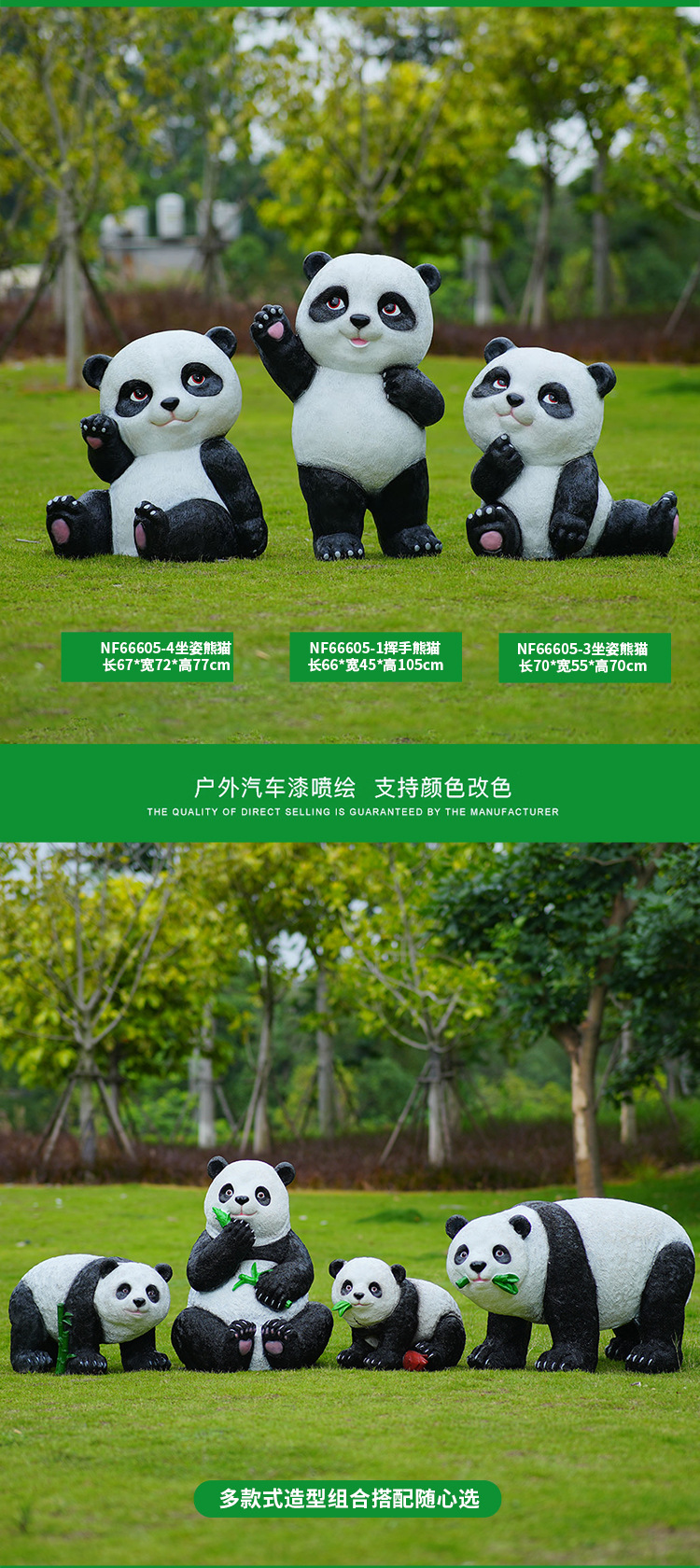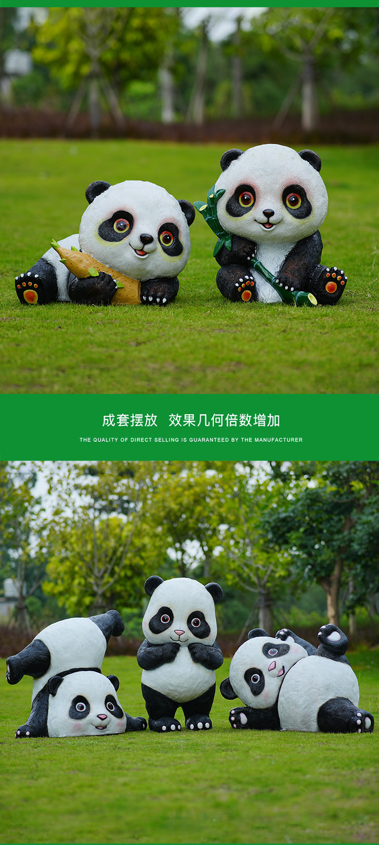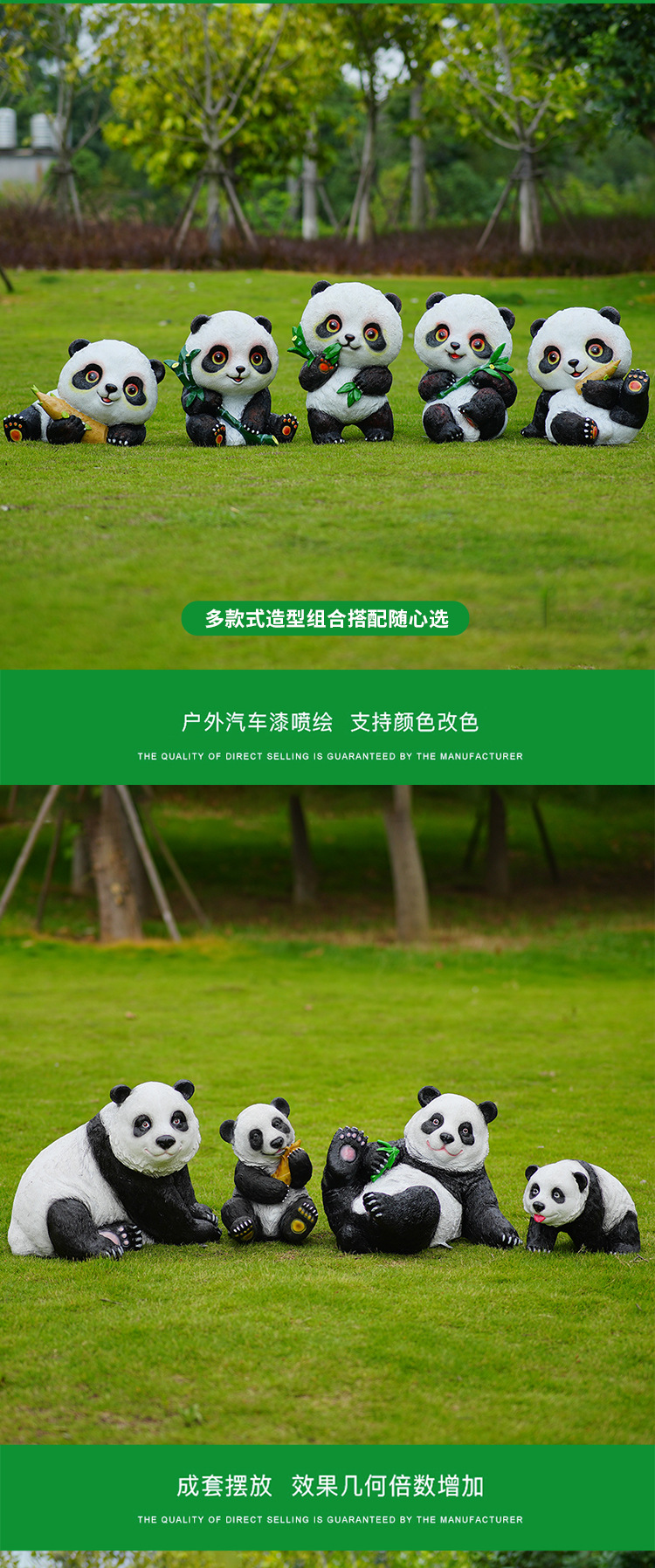 户外卡通熊猫雕塑玻璃钢动物摆件幼儿园售楼处小区园林草坪装饰品