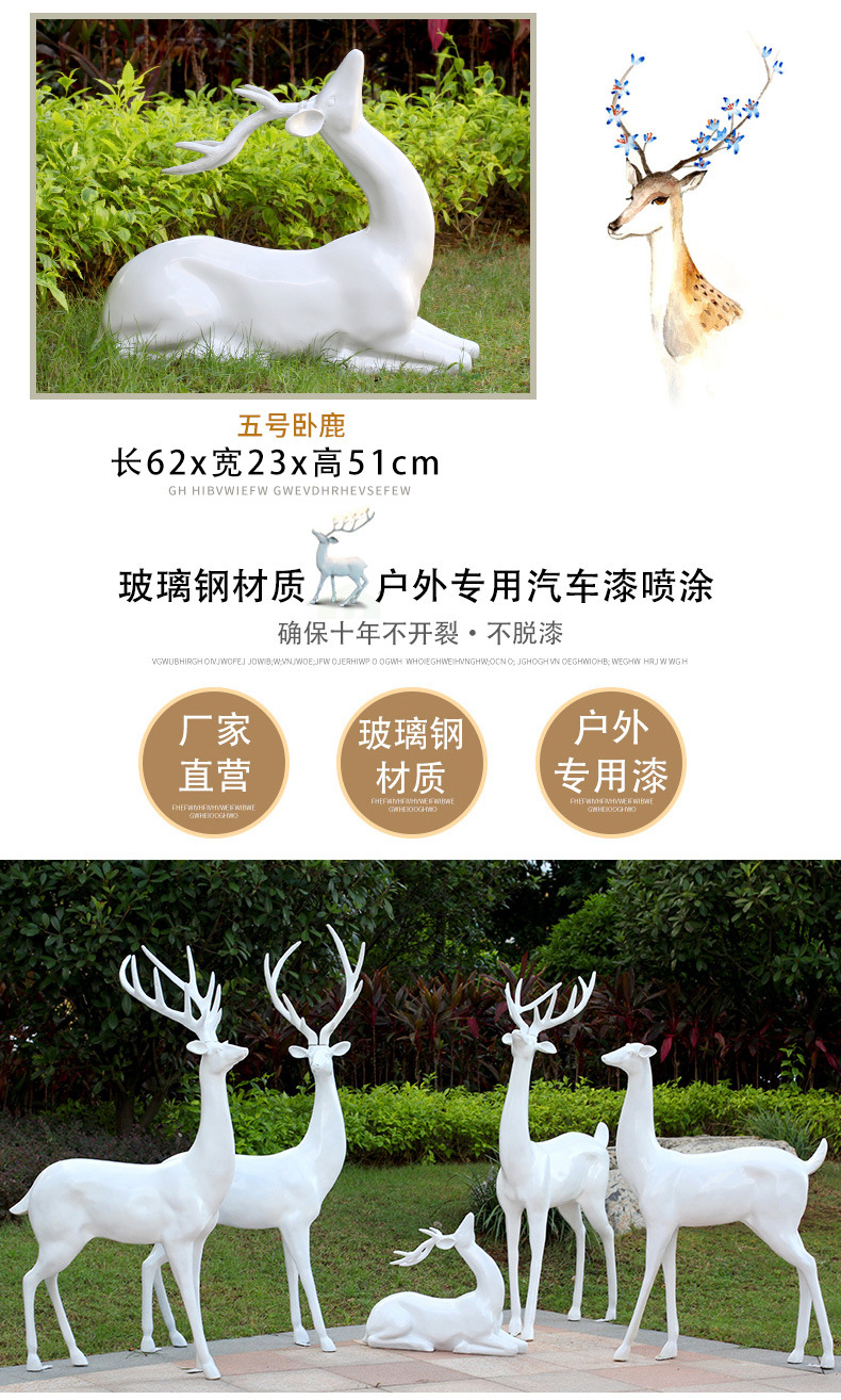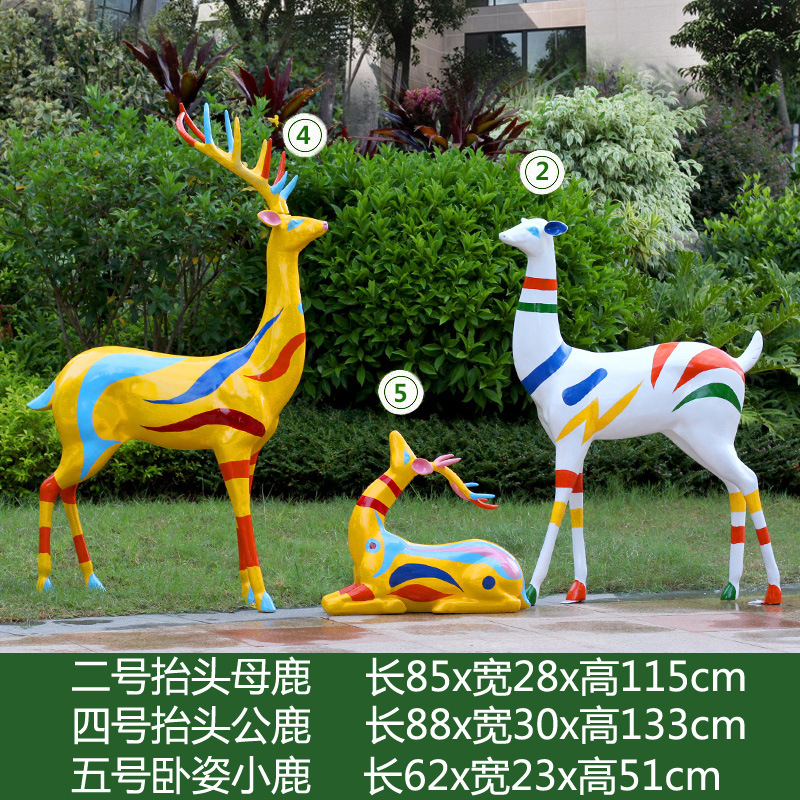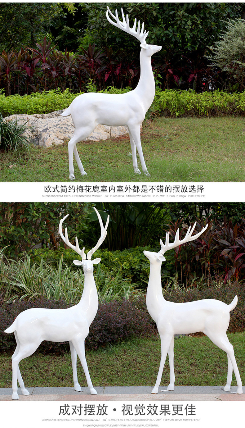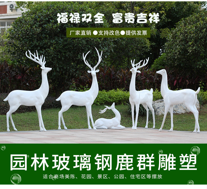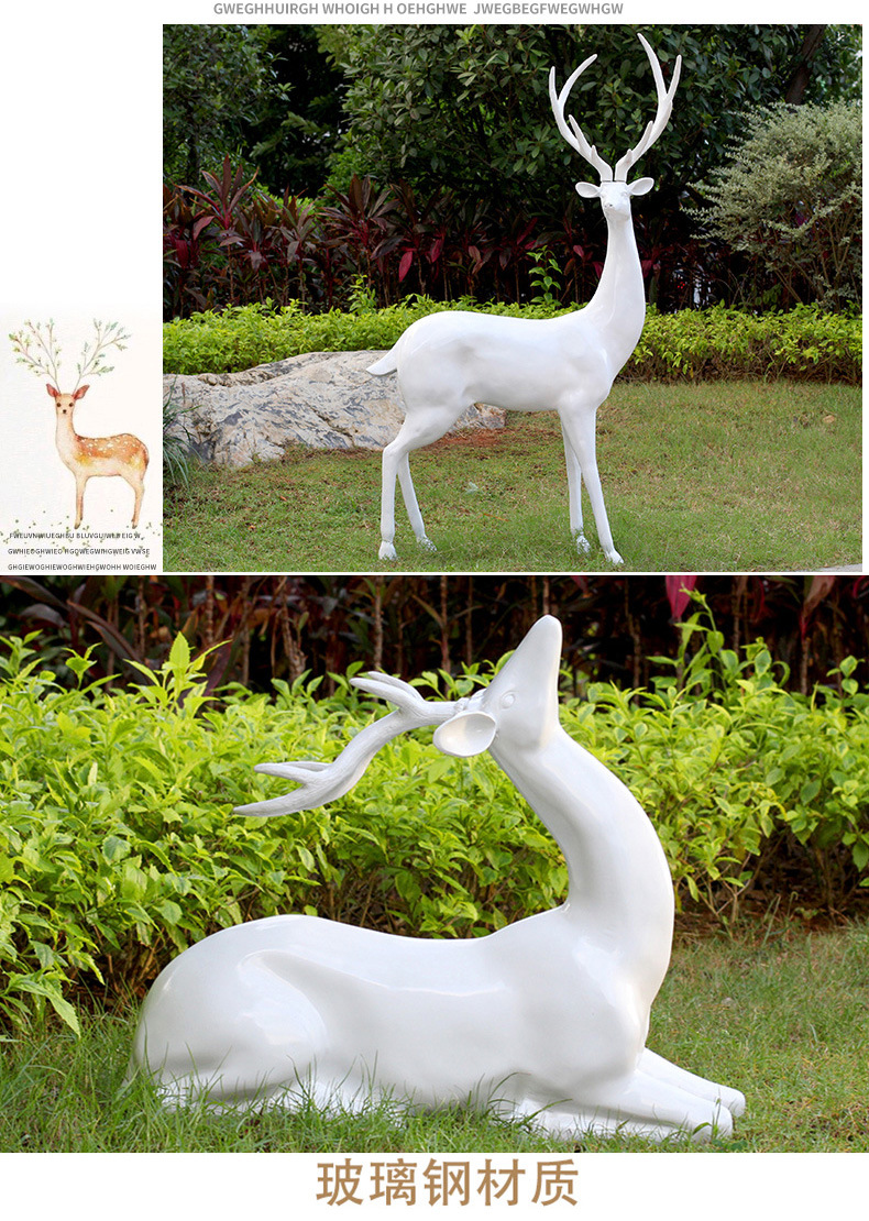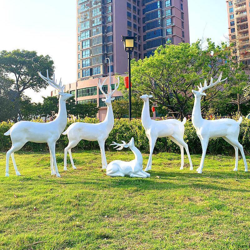 户外抽象梅花鹿雕塑售楼部花园林景观草坪玻璃钢动物装饰麋鹿摆件