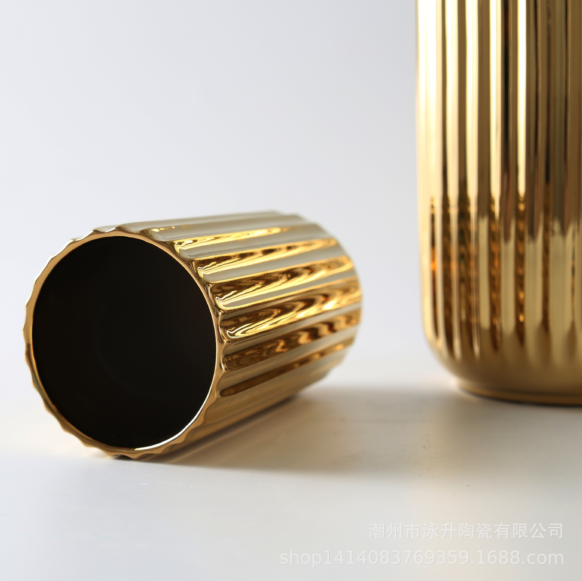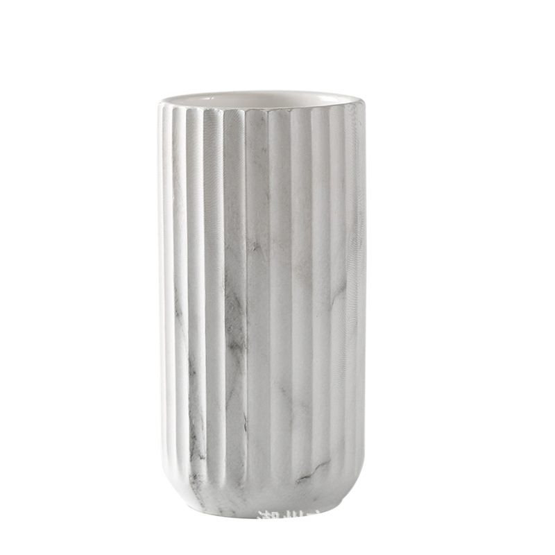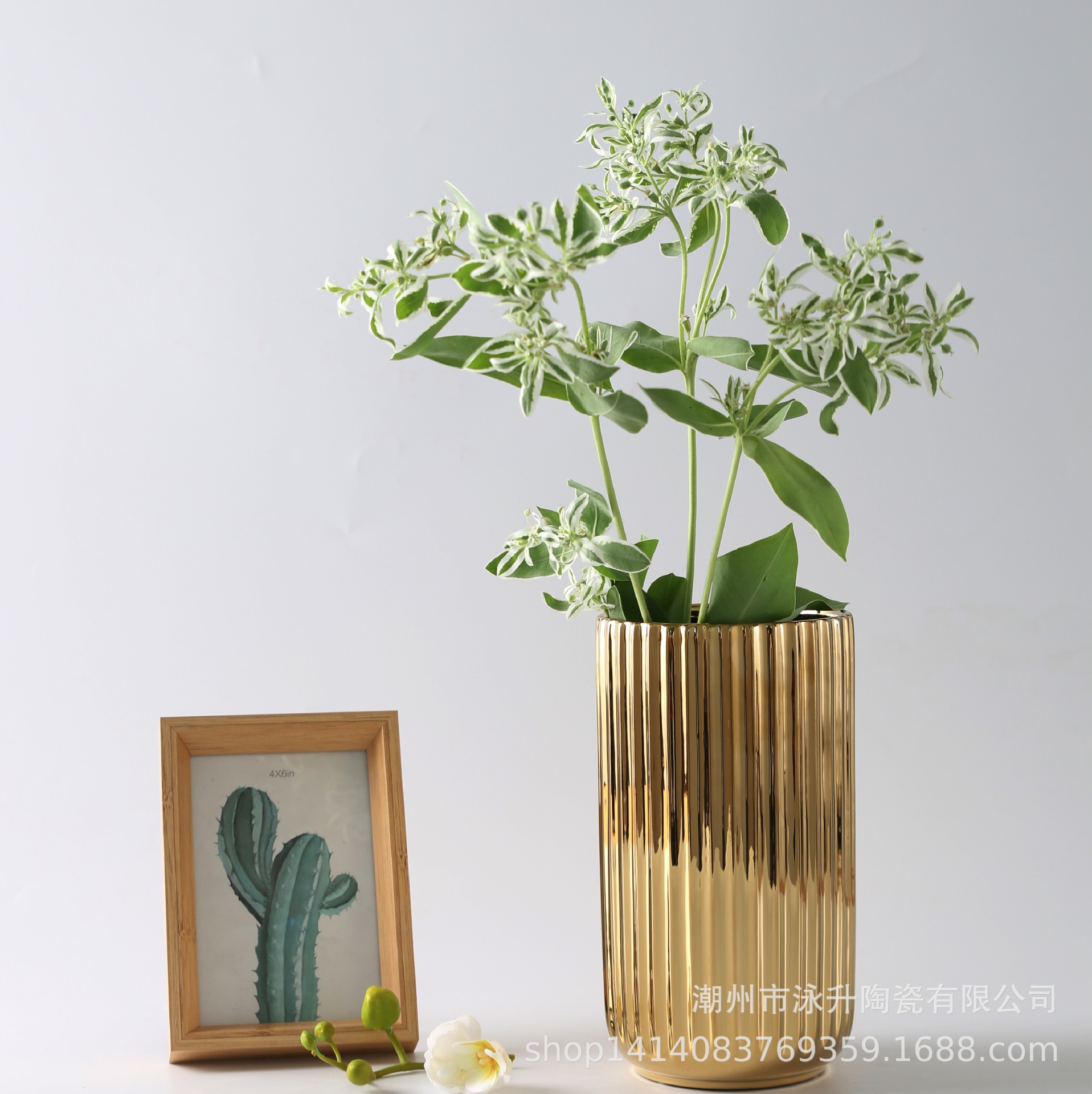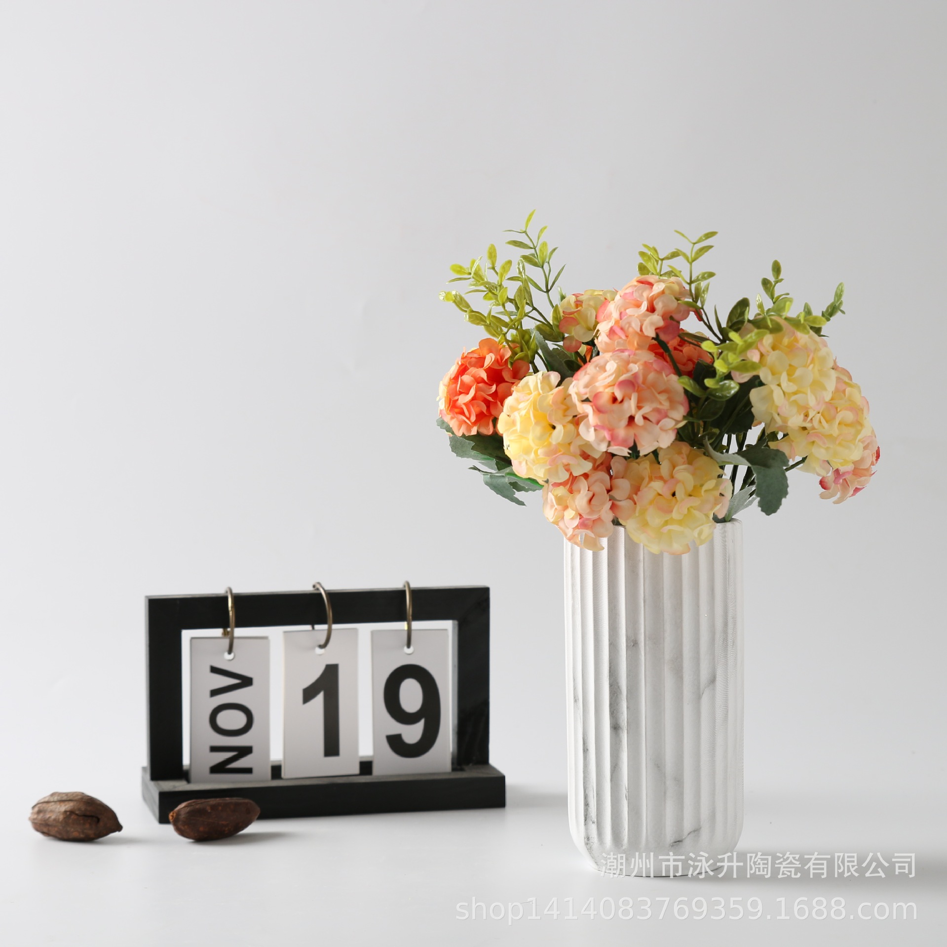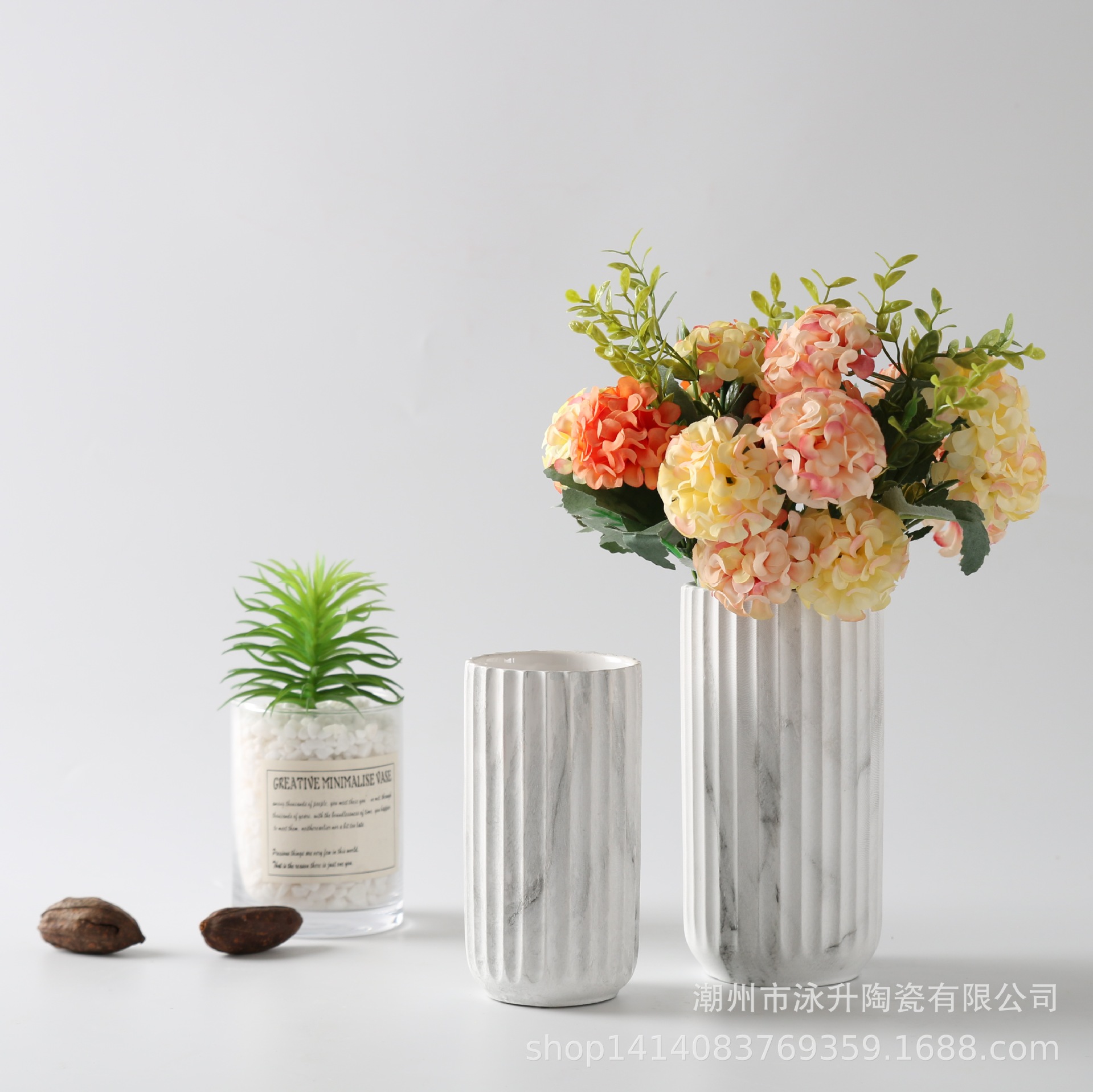 北欧简约大理石纹陶瓷花瓶 创意镀金干花仿真花花器家居摆件批发