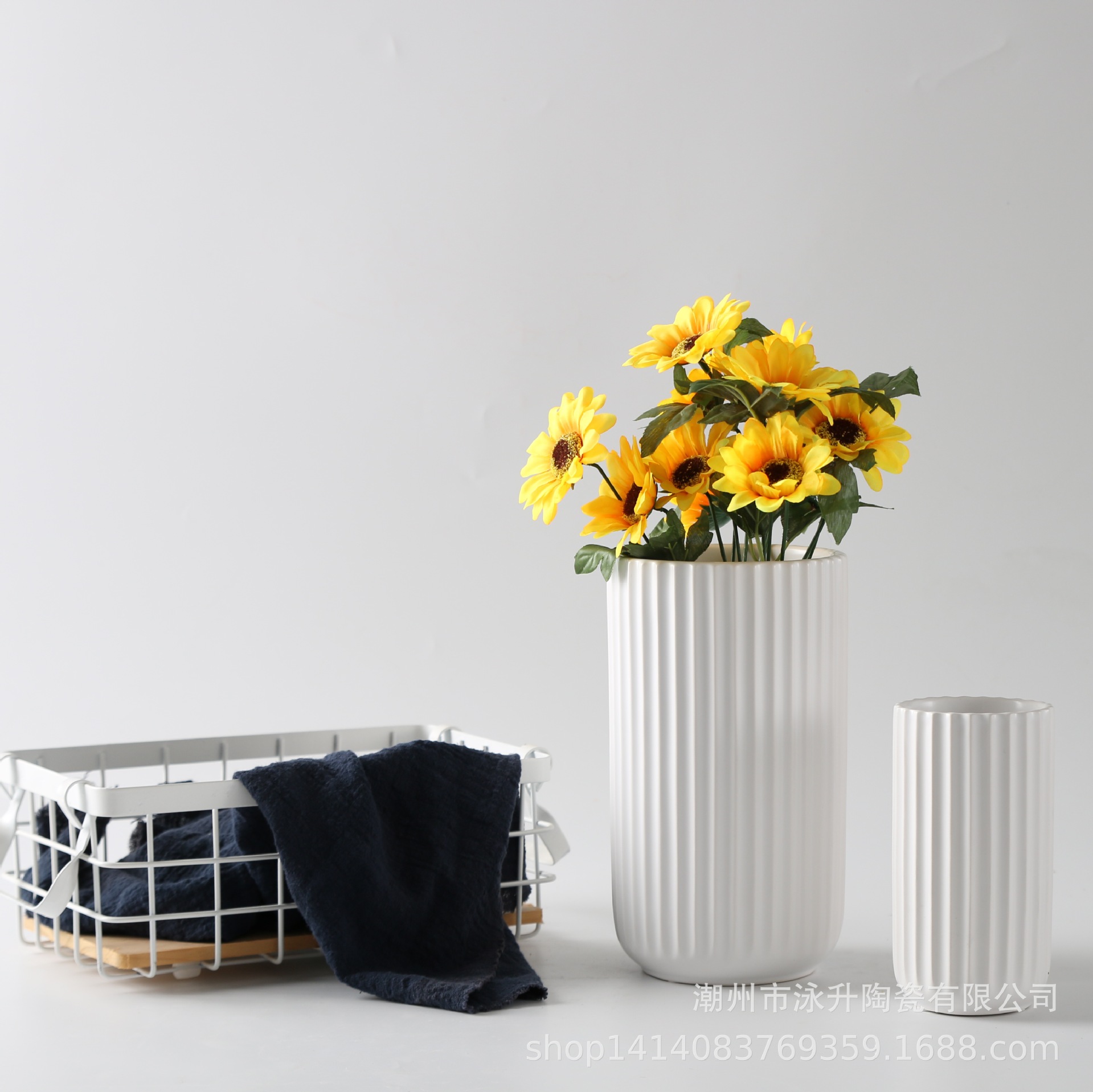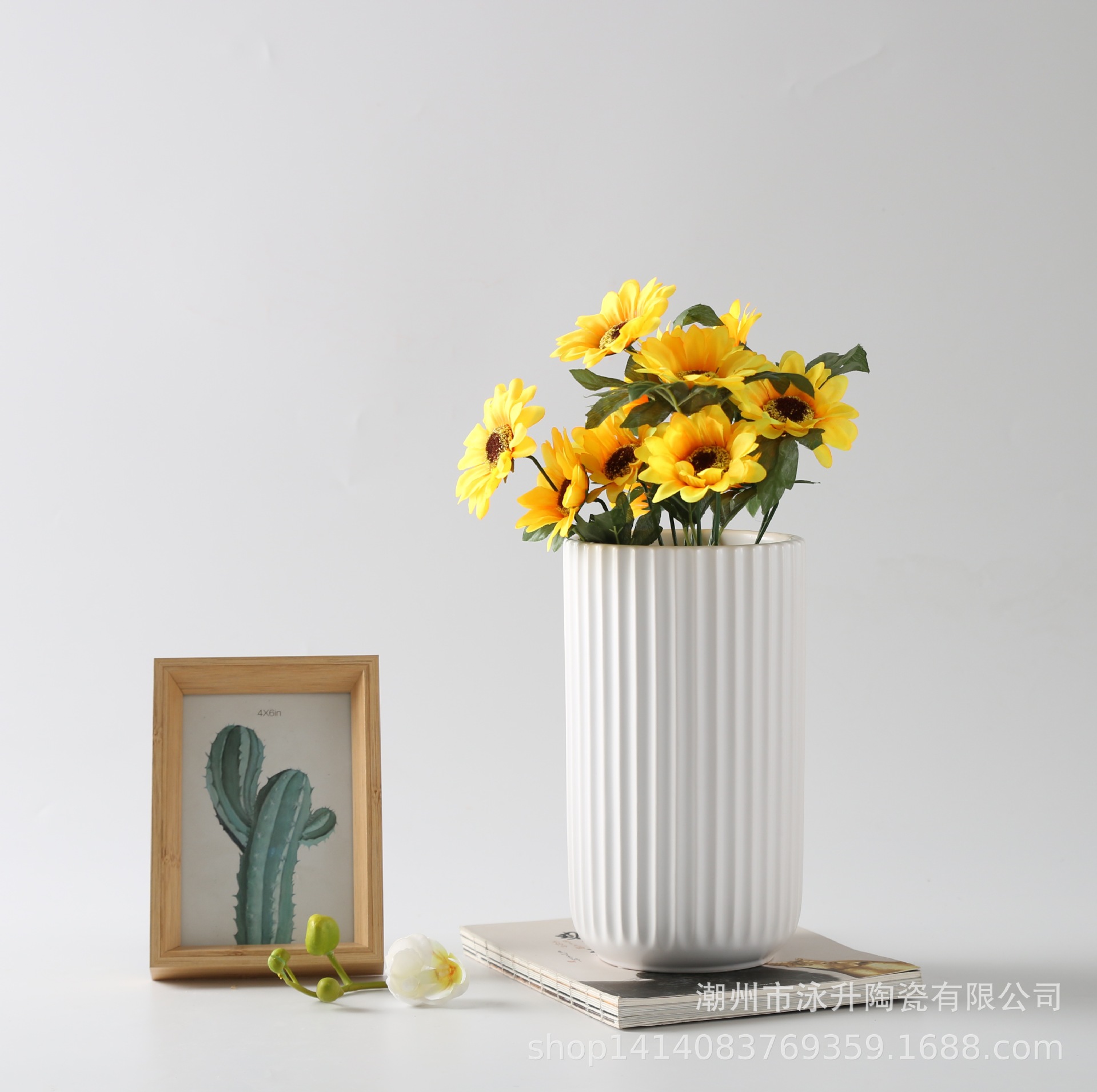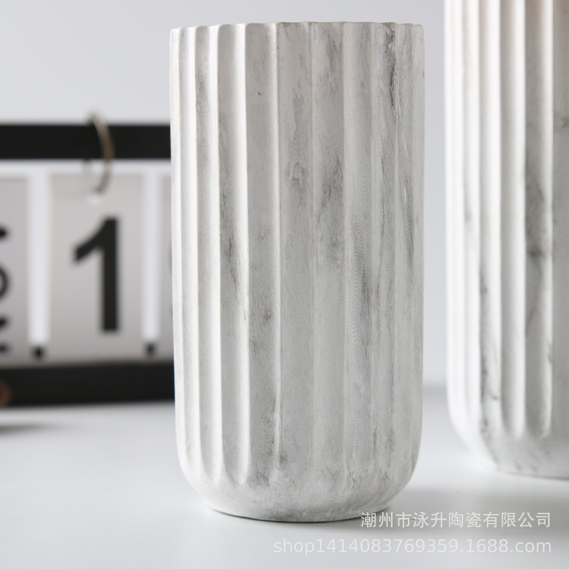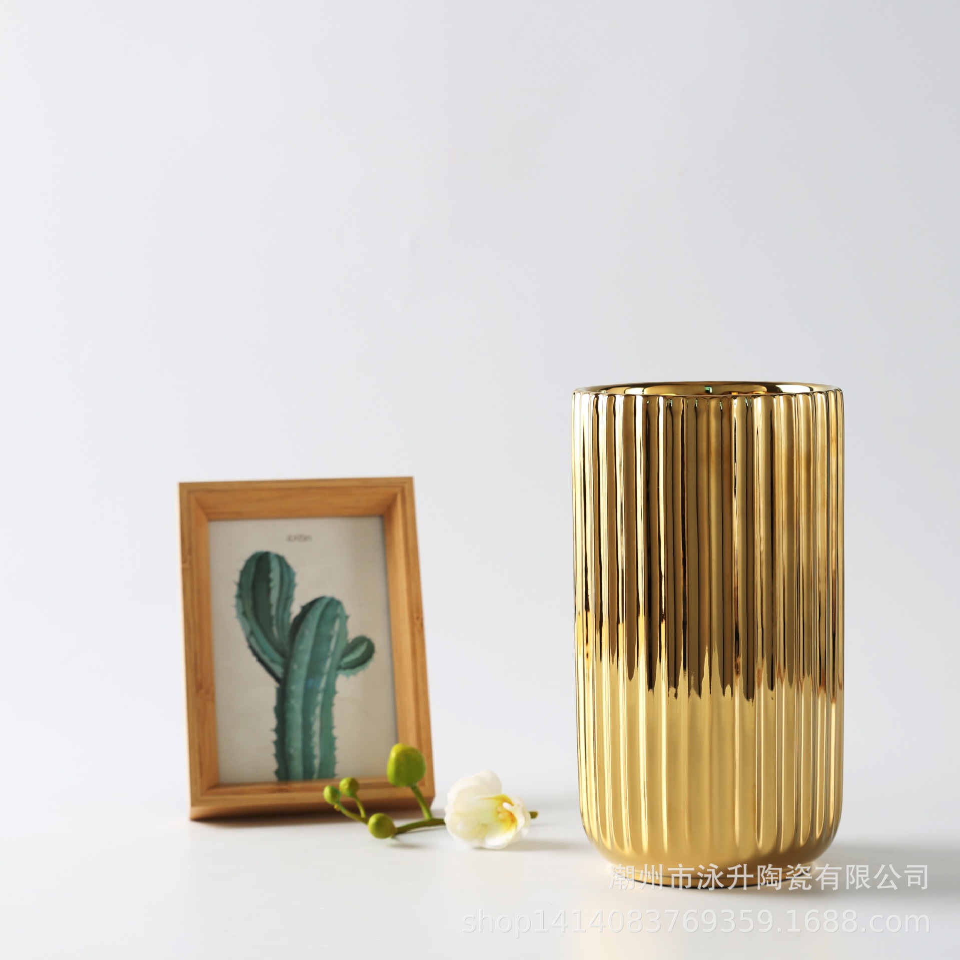 北欧简约大理石纹陶瓷花瓶 创意镀金干花仿真花花器家居摆件批发