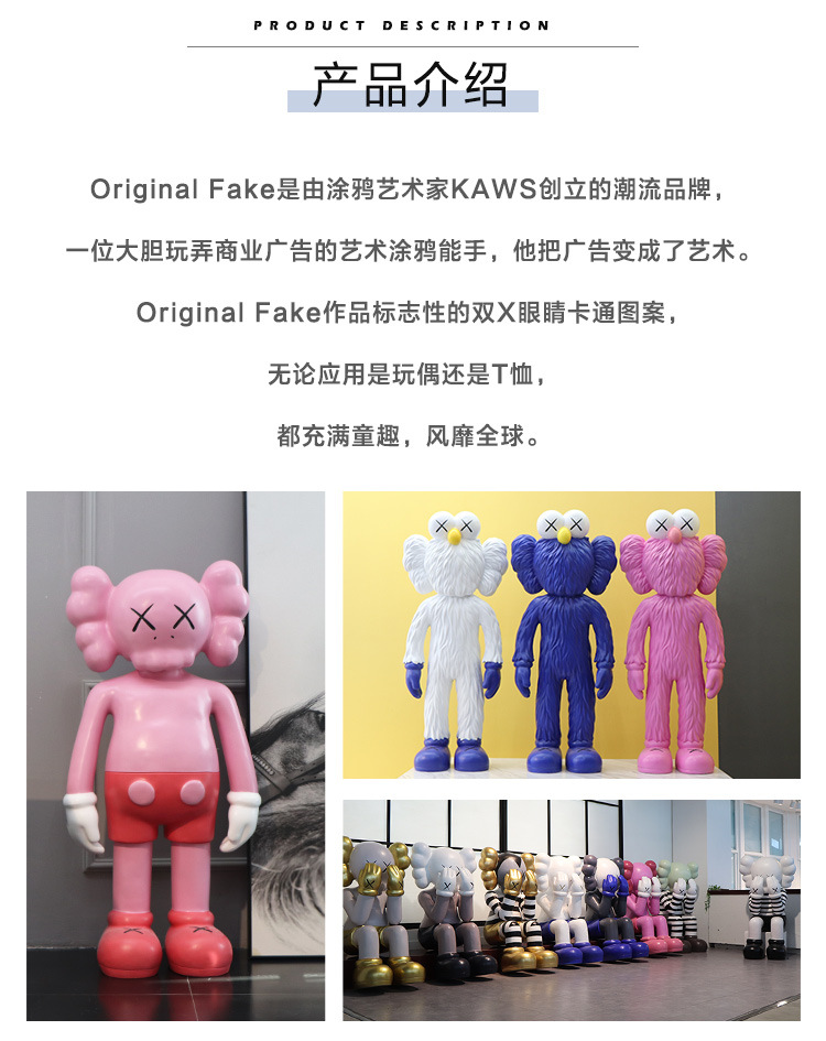 网红潮牌kaws玻璃钢雕塑客厅公仔大摆件商场奶茶门店开业落地装饰