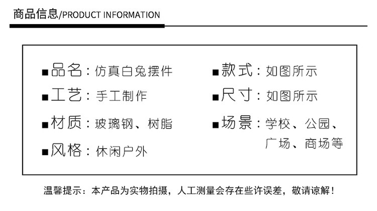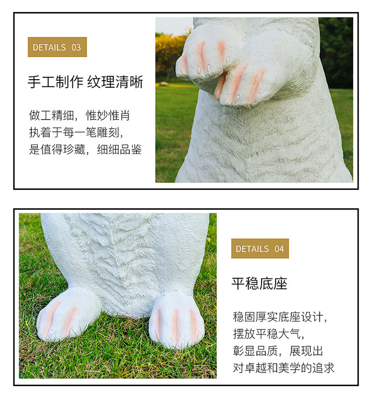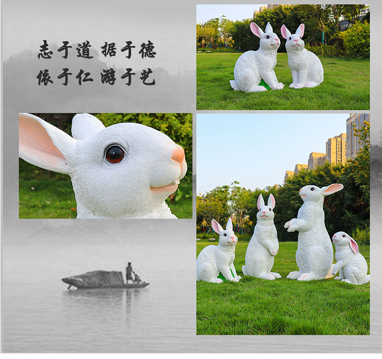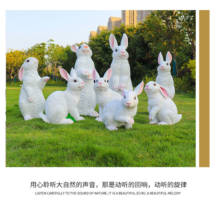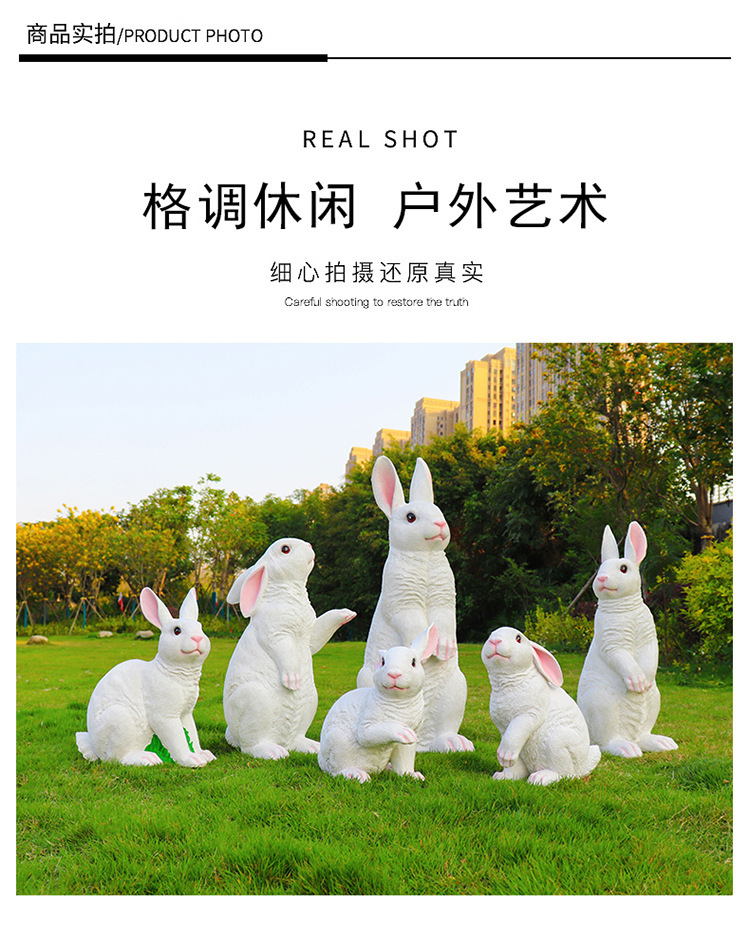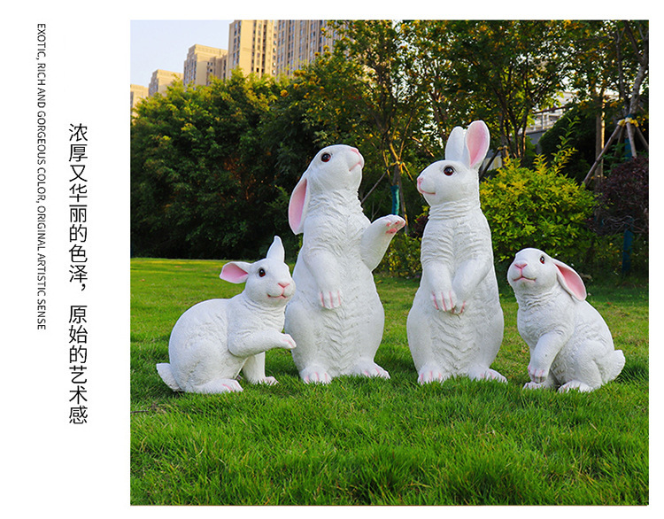 户外庭院花园景观仿真动物小白兔模型雕塑树脂兔子草坪装饰品摆件