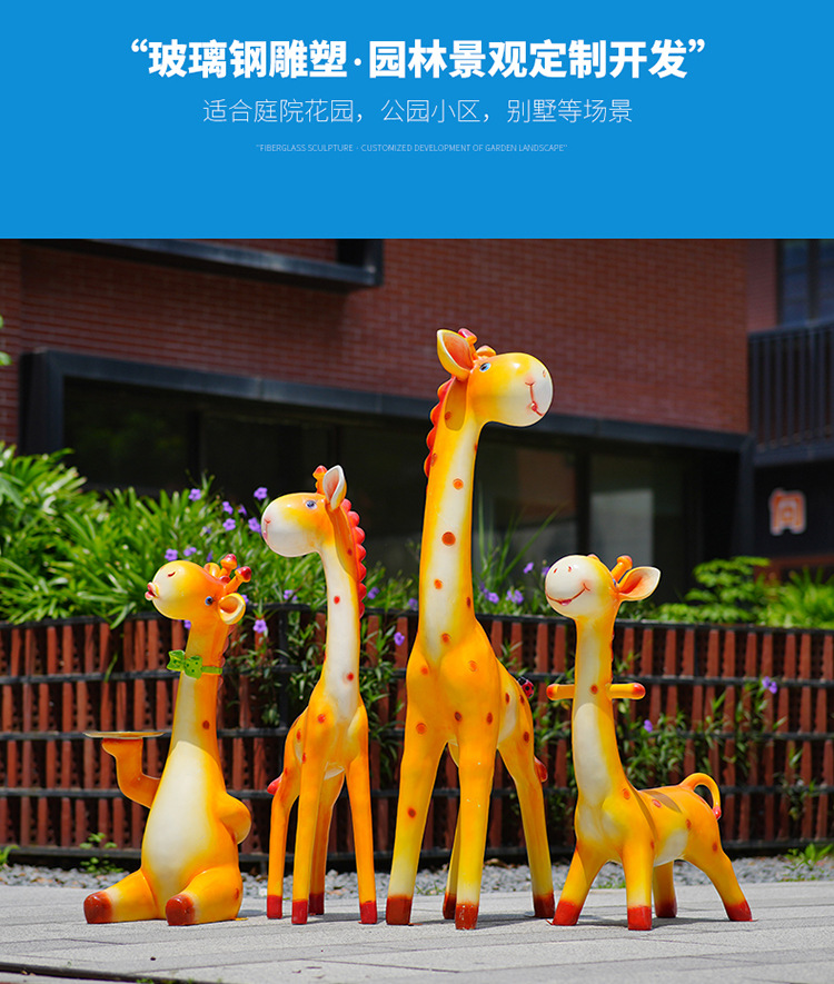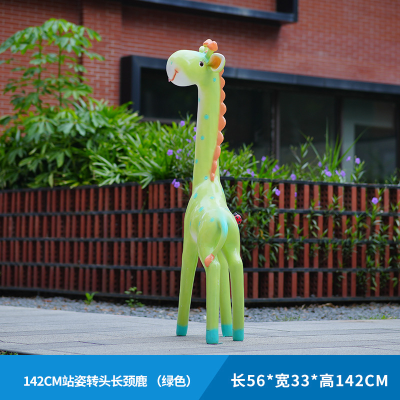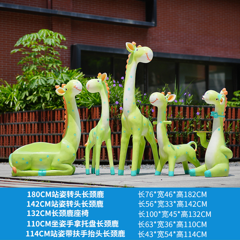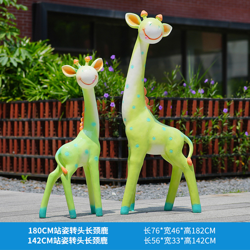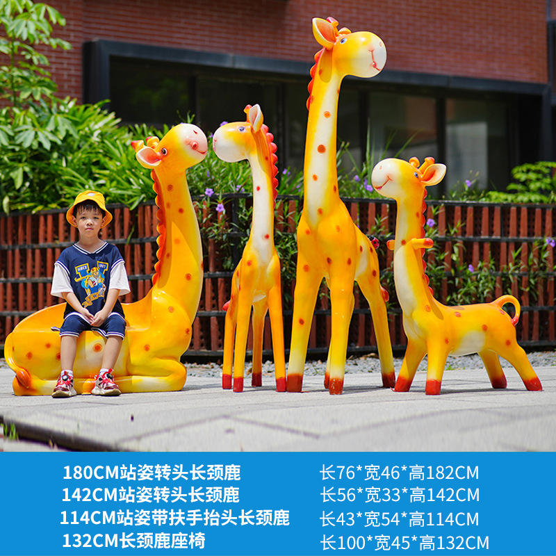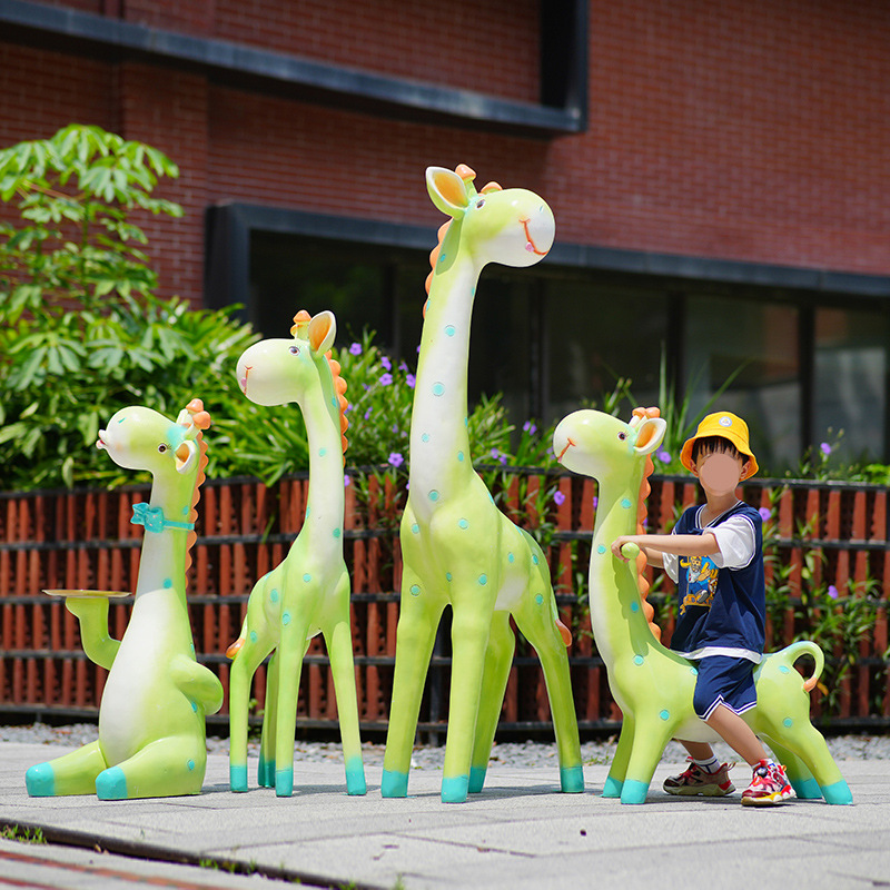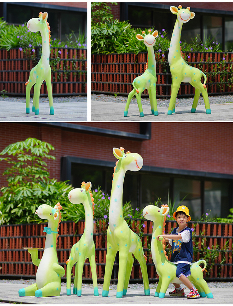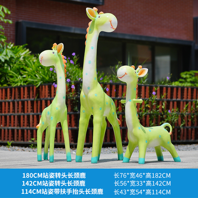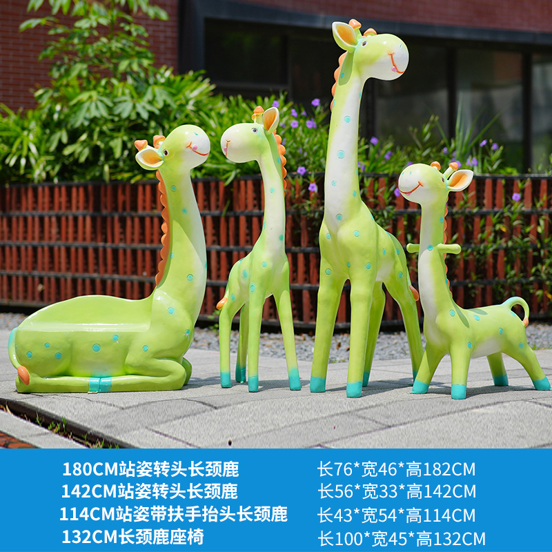 户外卡通长颈鹿雕塑摆件玻璃钢商场景区拍照草坪售楼处幼儿园装饰