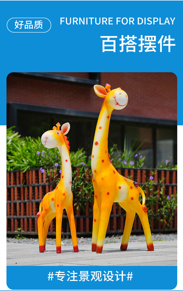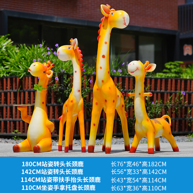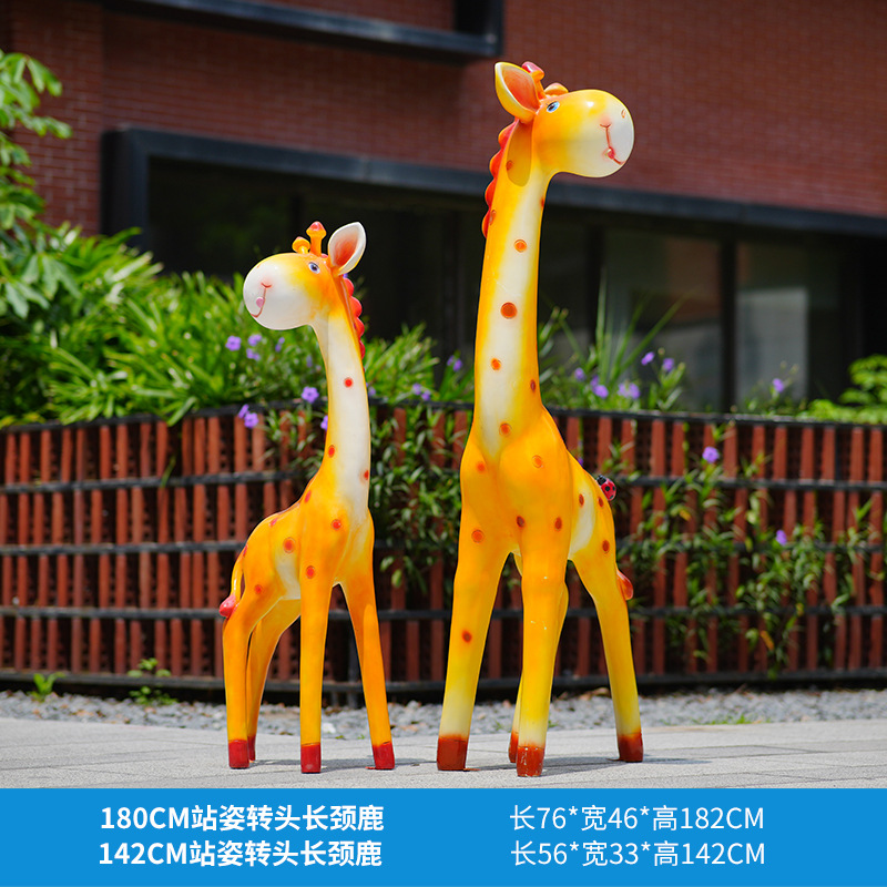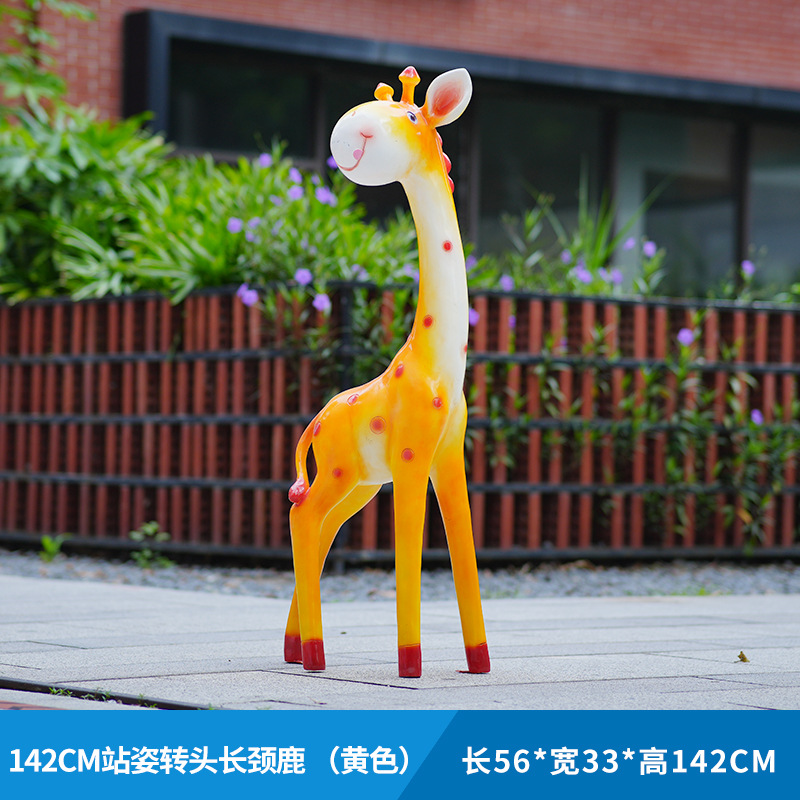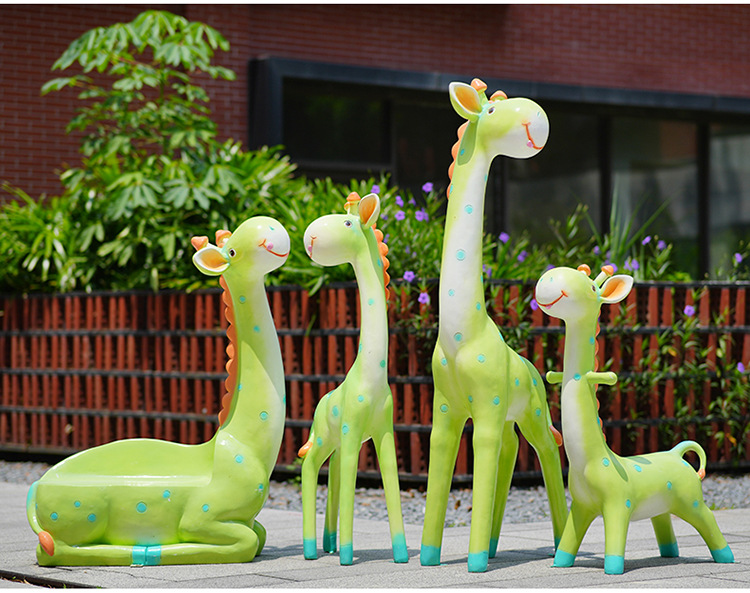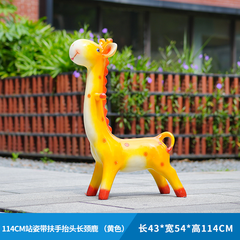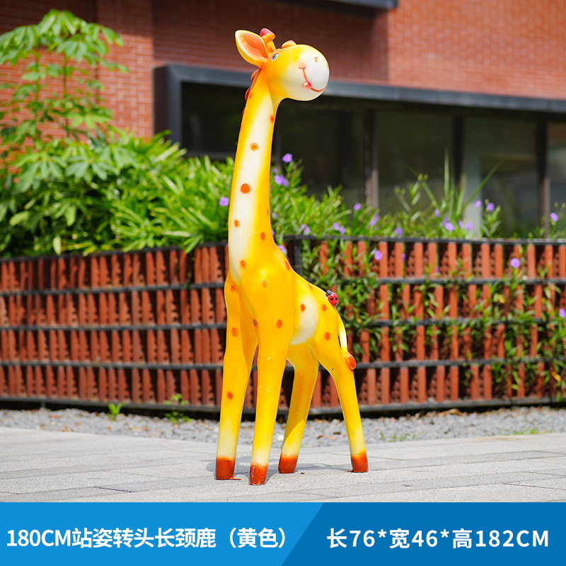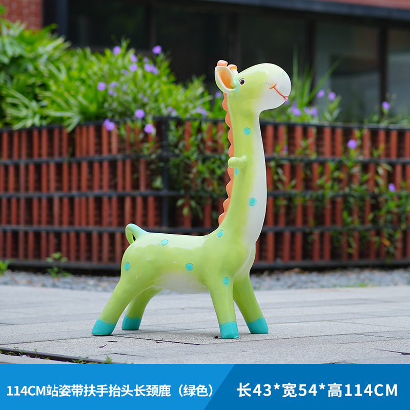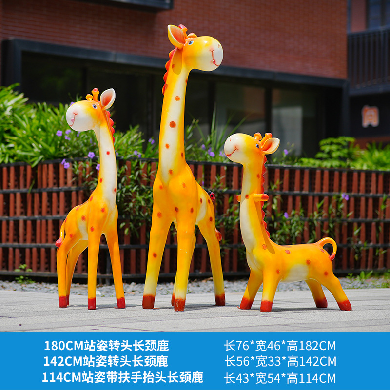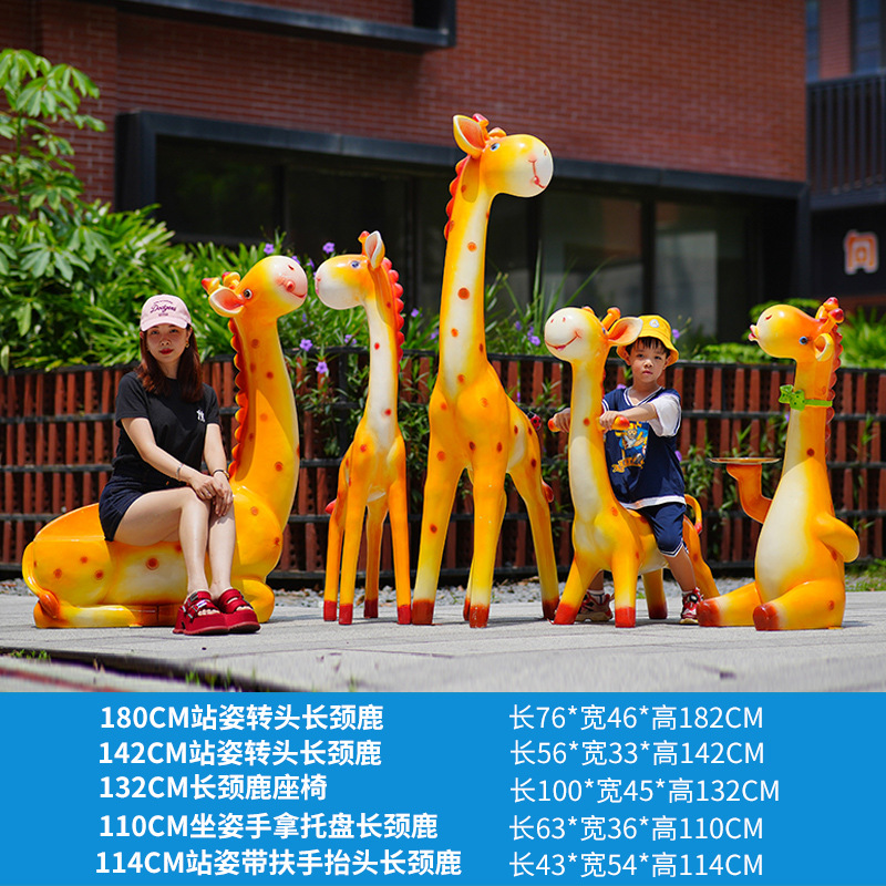 户外卡通长颈鹿雕塑摆件玻璃钢商场景区拍照草坪售楼处幼儿园装饰