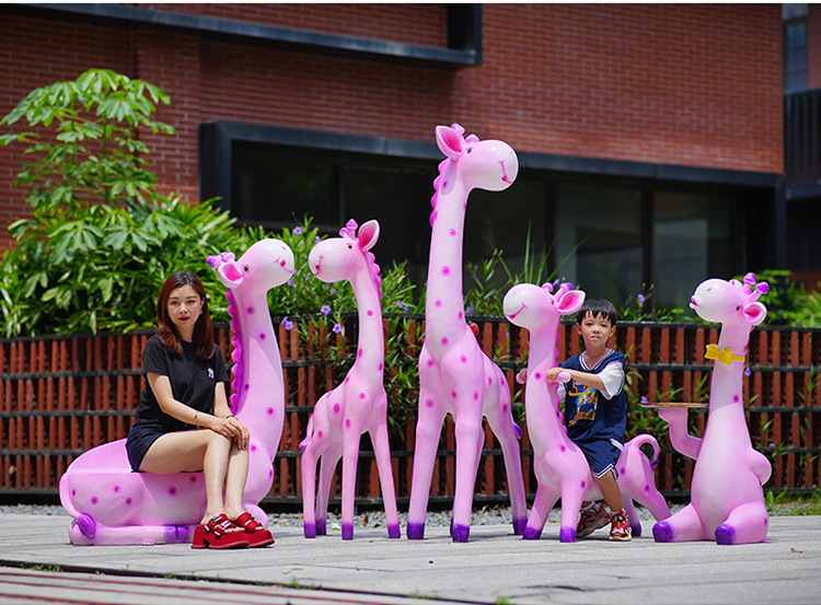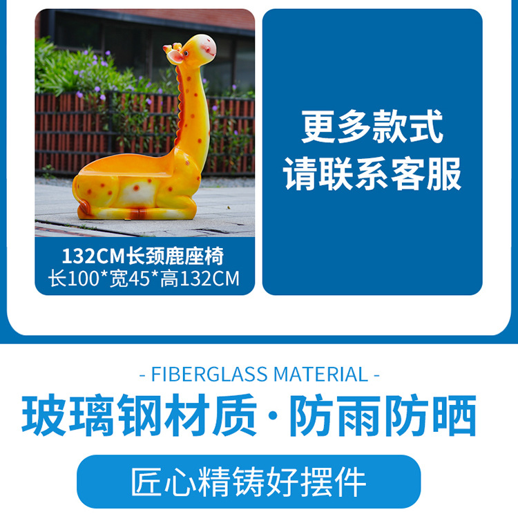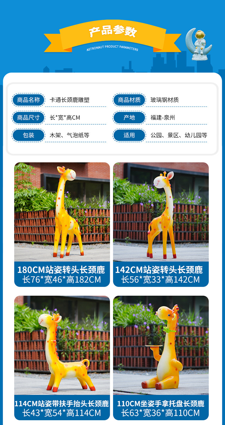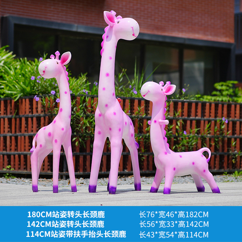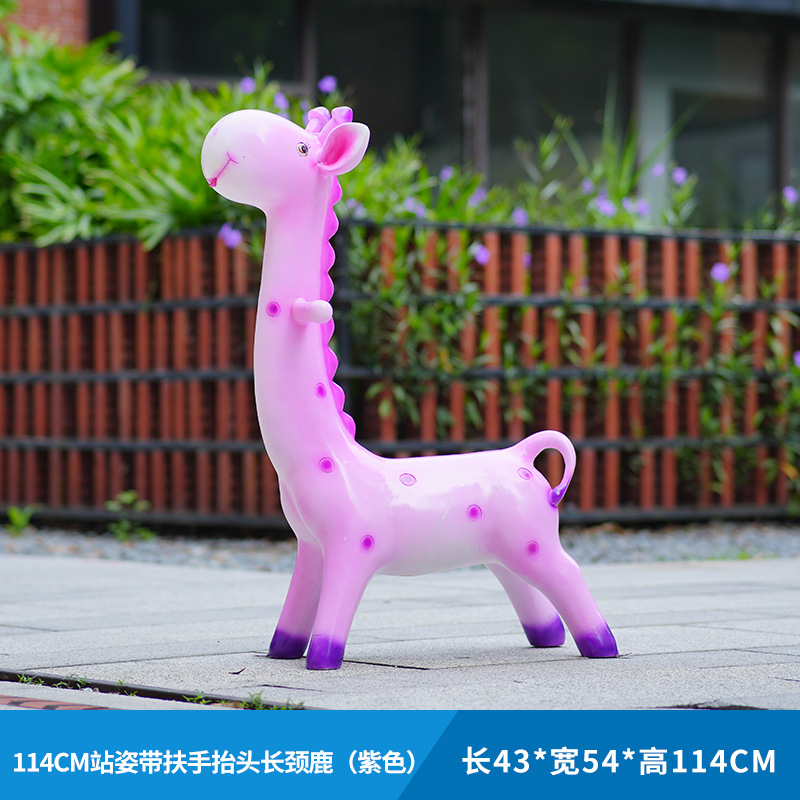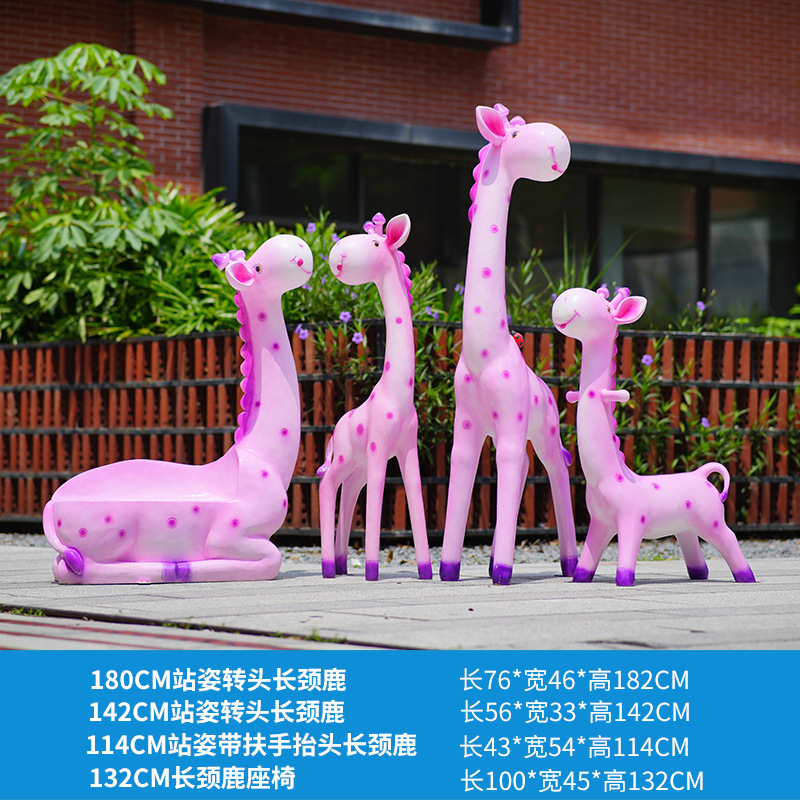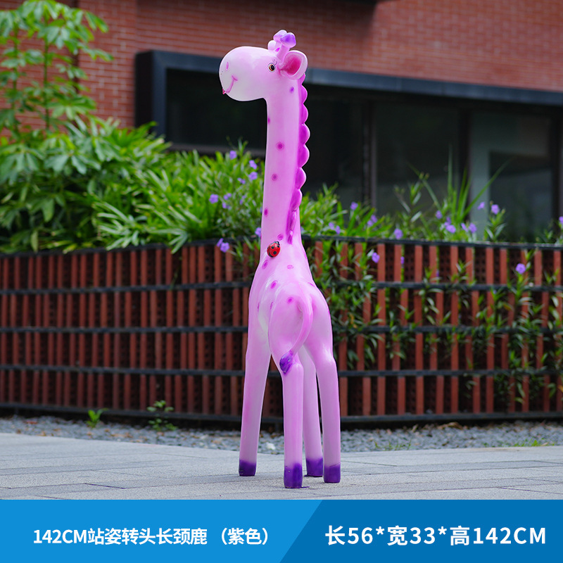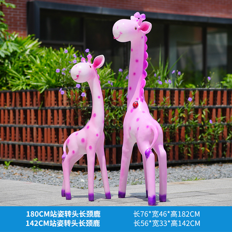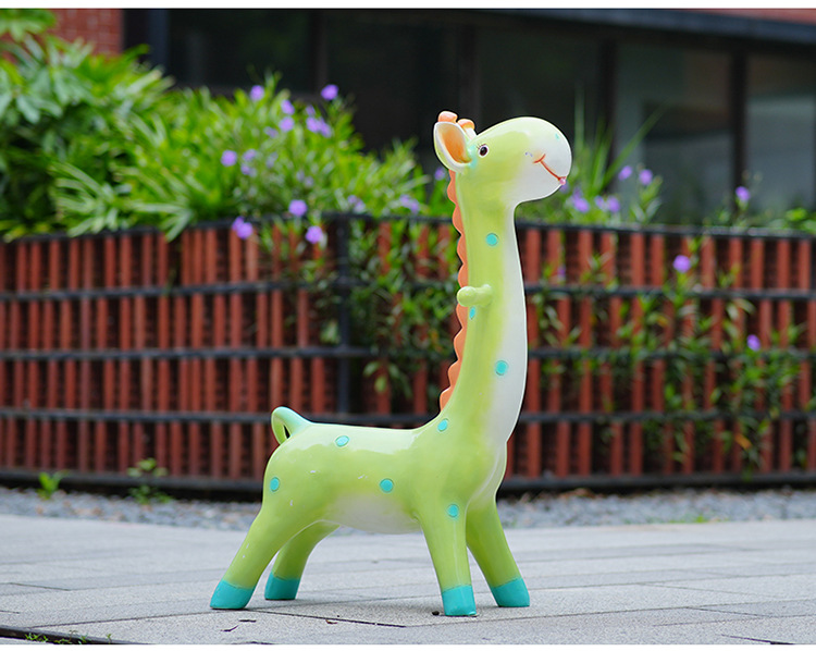 户外卡通长颈鹿雕塑摆件玻璃钢商场景区拍照草坪售楼处幼儿园装饰