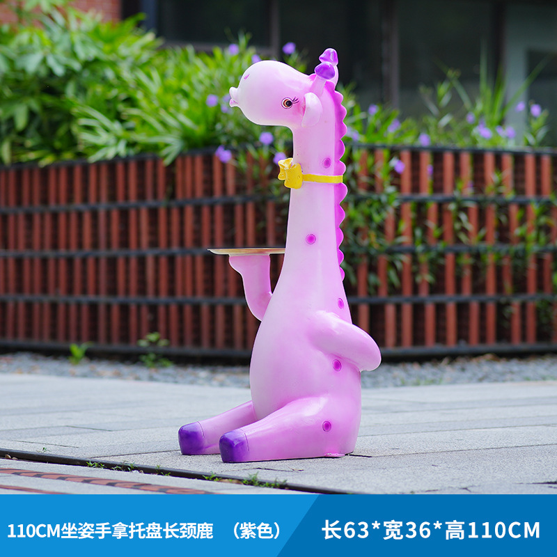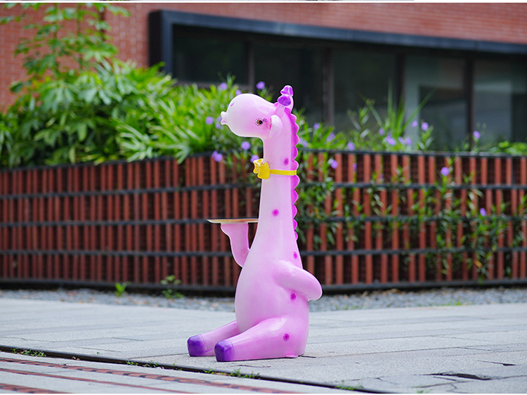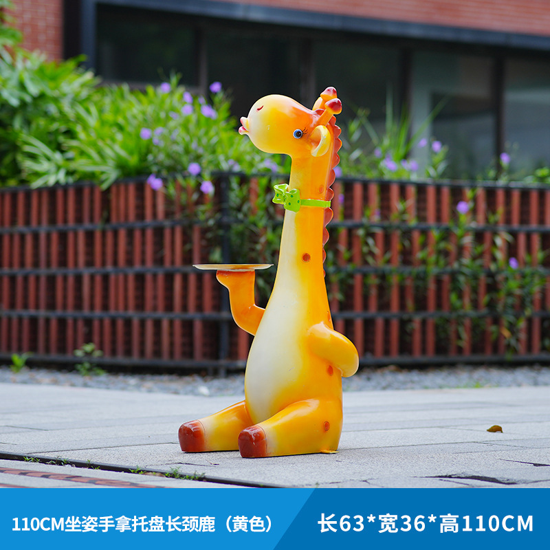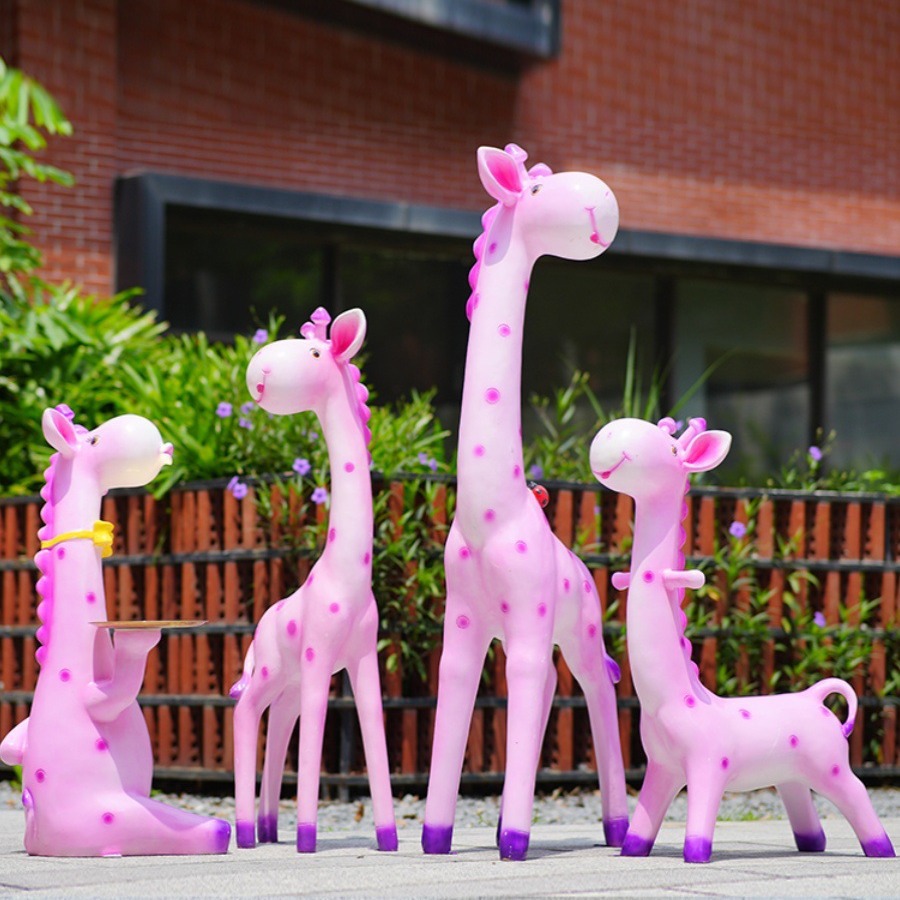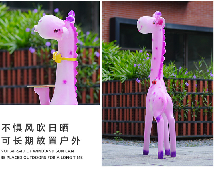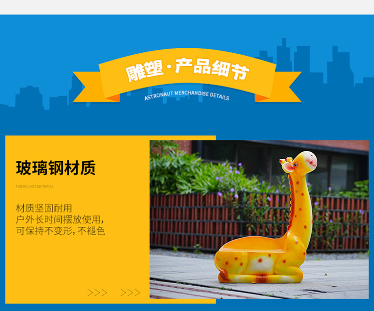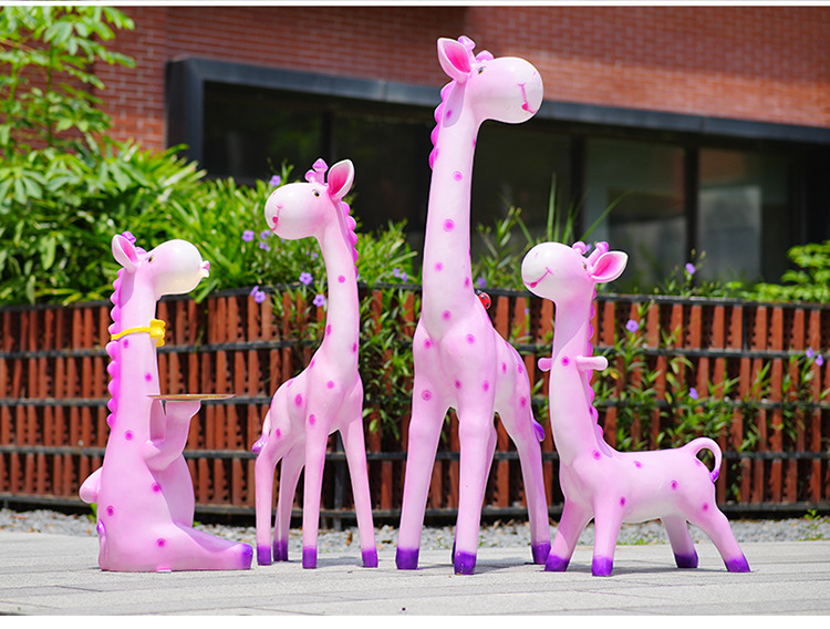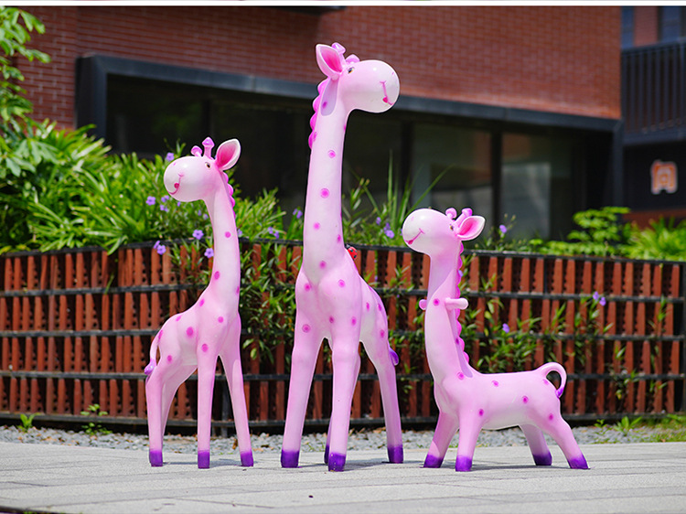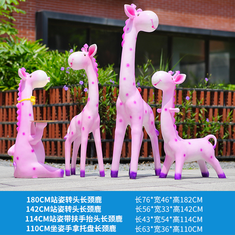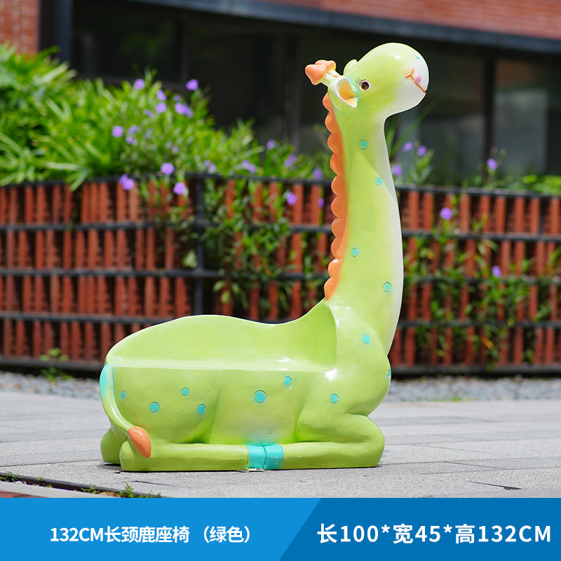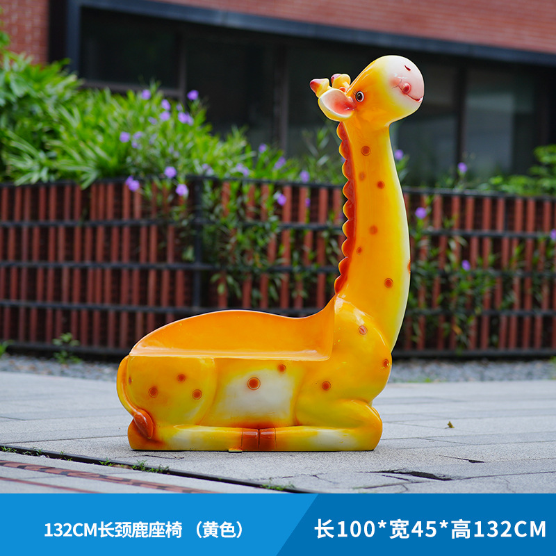 户外卡通长颈鹿雕塑摆件玻璃钢商场景区拍照草坪售楼处幼儿园装饰