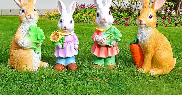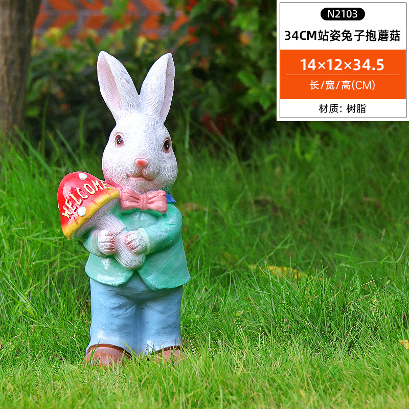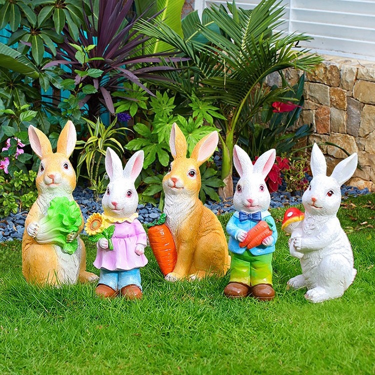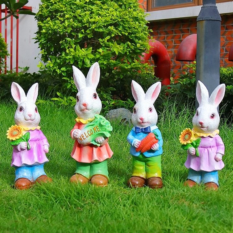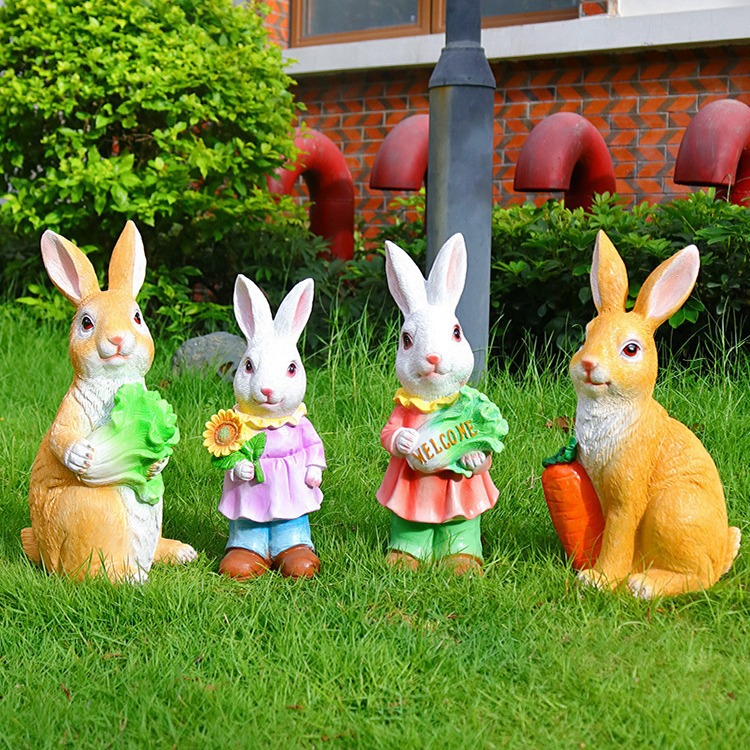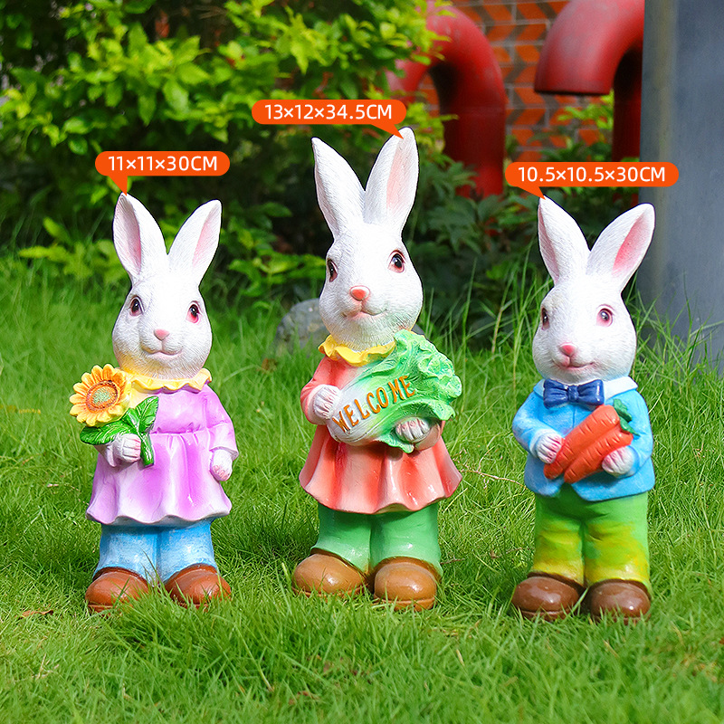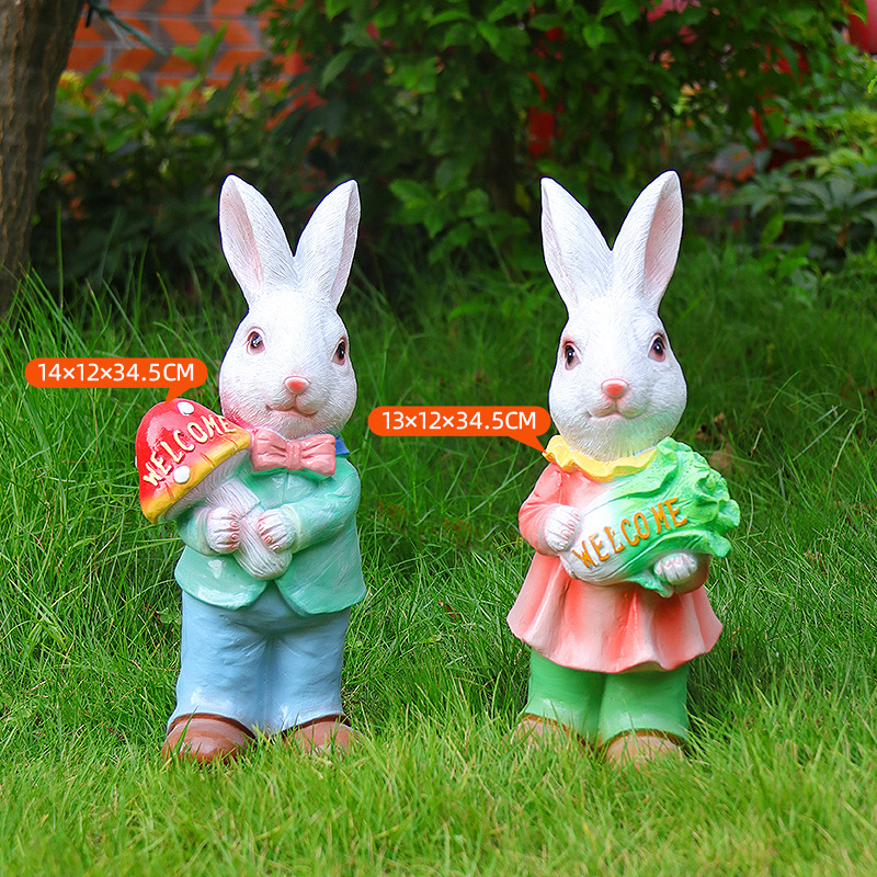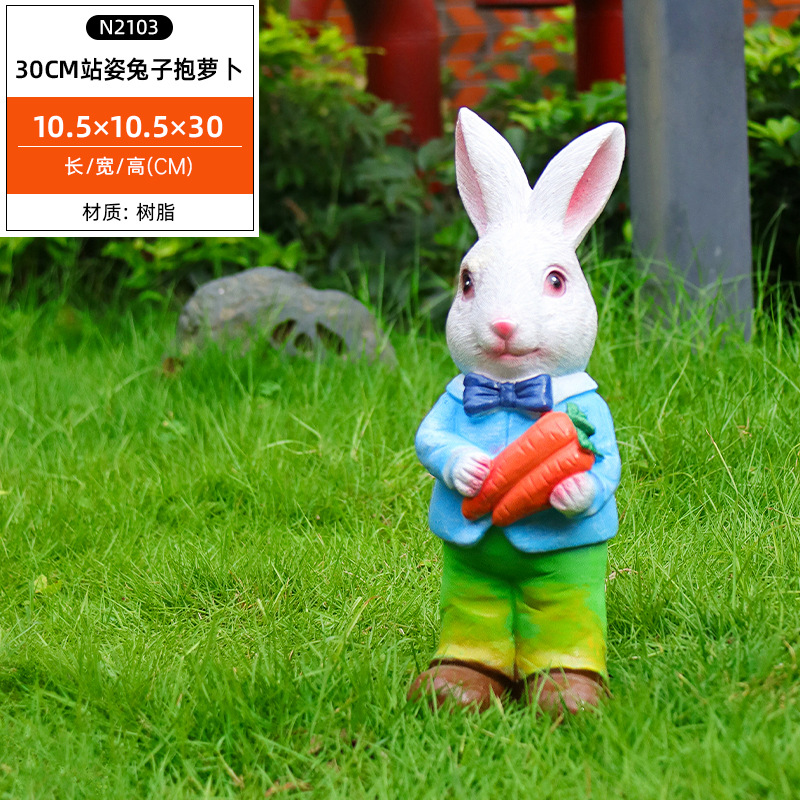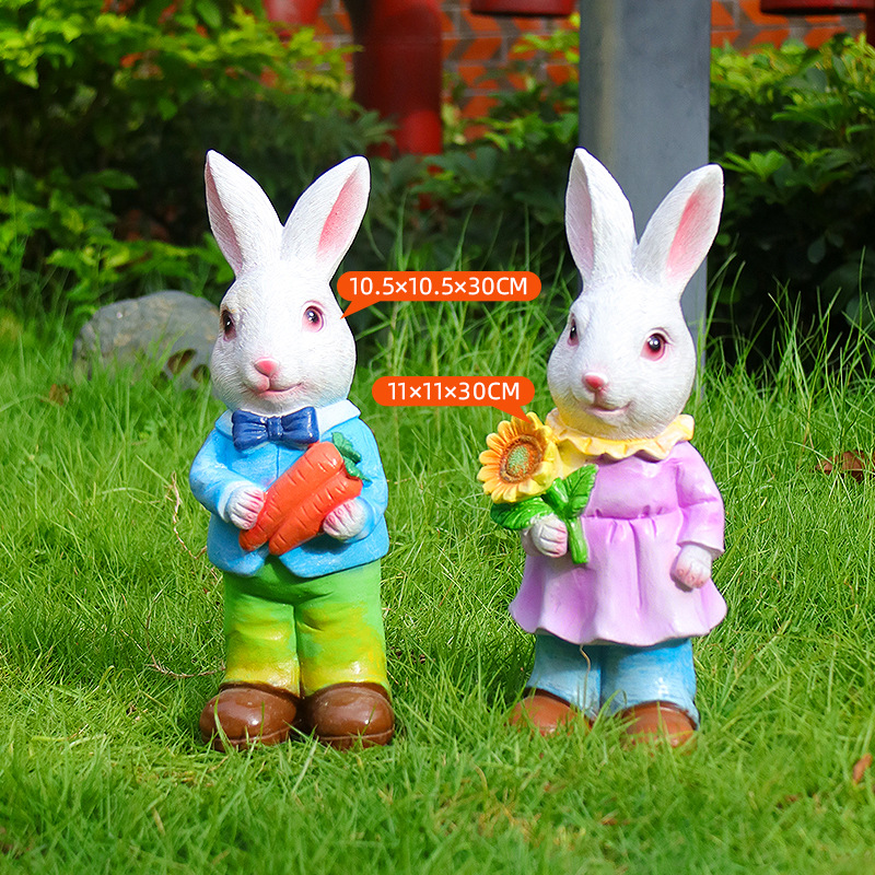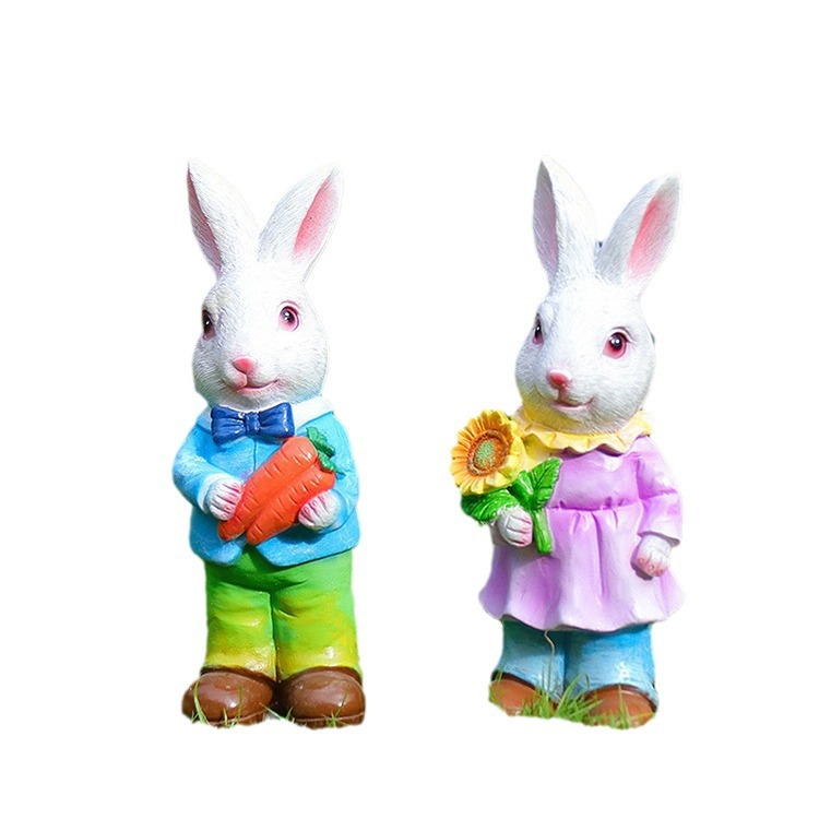 户外卡通兔彩绘树脂雕塑别墅庭院创意动物模型阳台小白兔装饰摆件