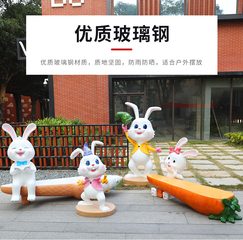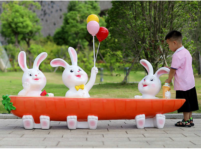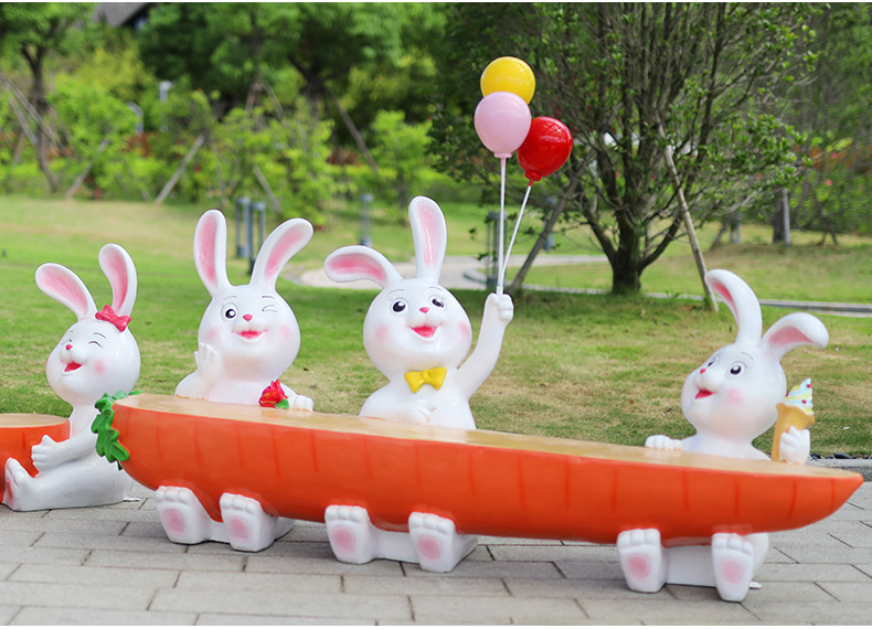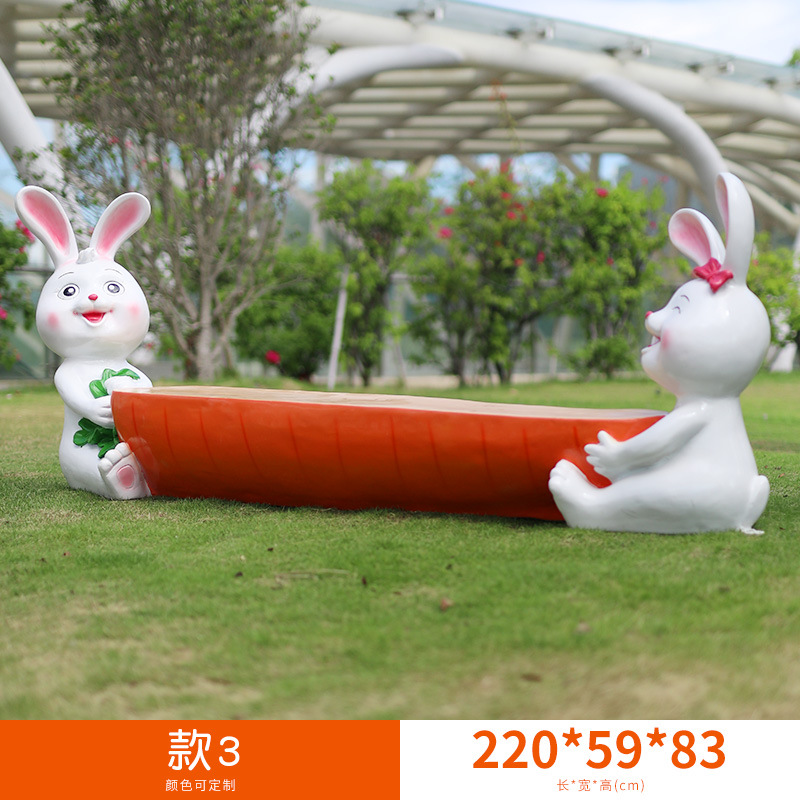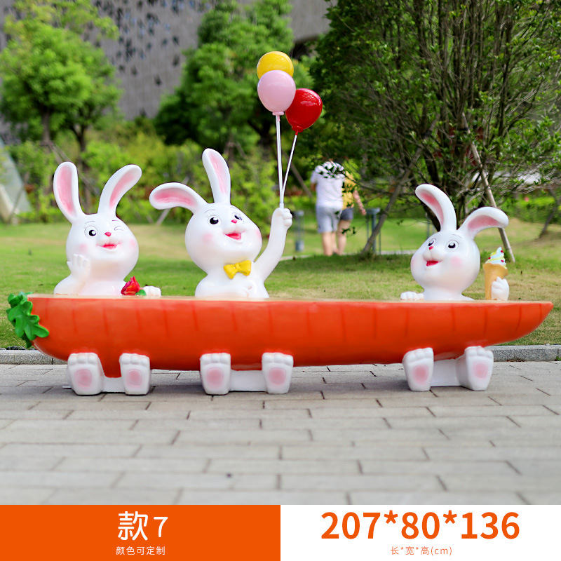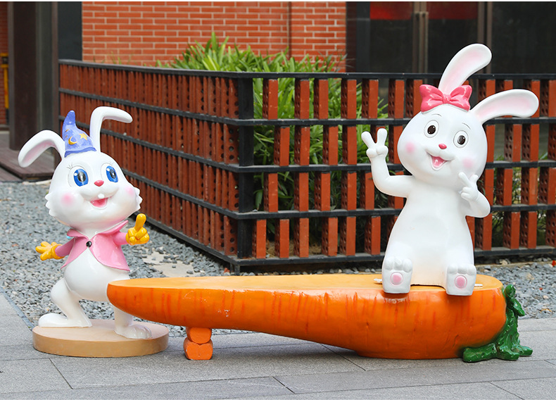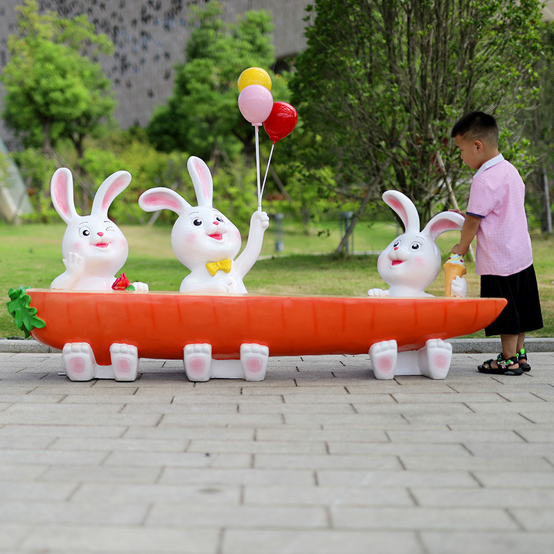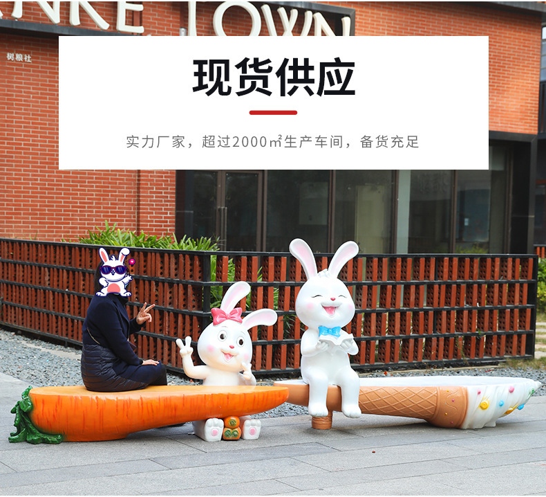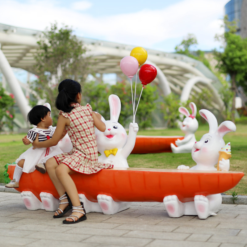 卡通兔子座椅摆件幼儿园林胡萝卜坐凳户外玻璃钢座椅雕塑商场装饰