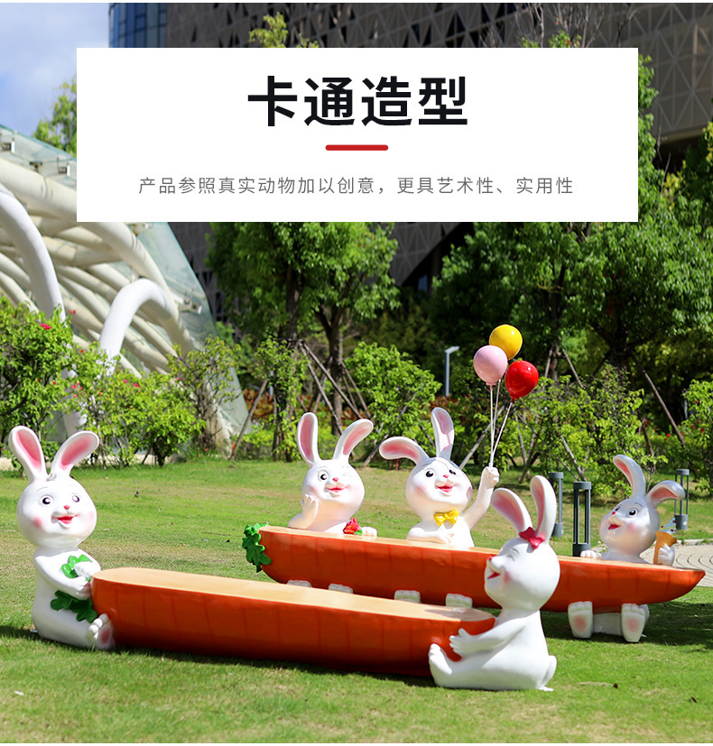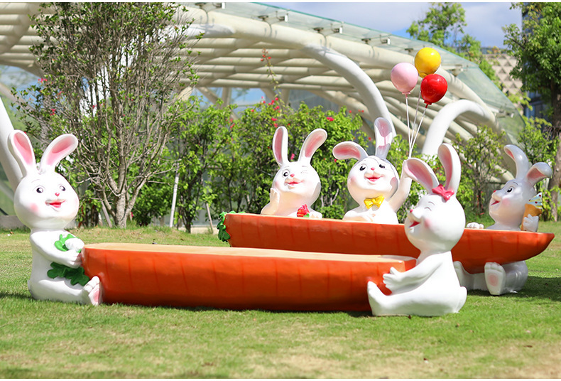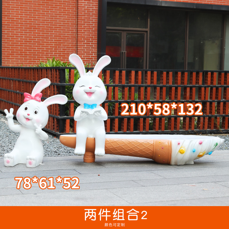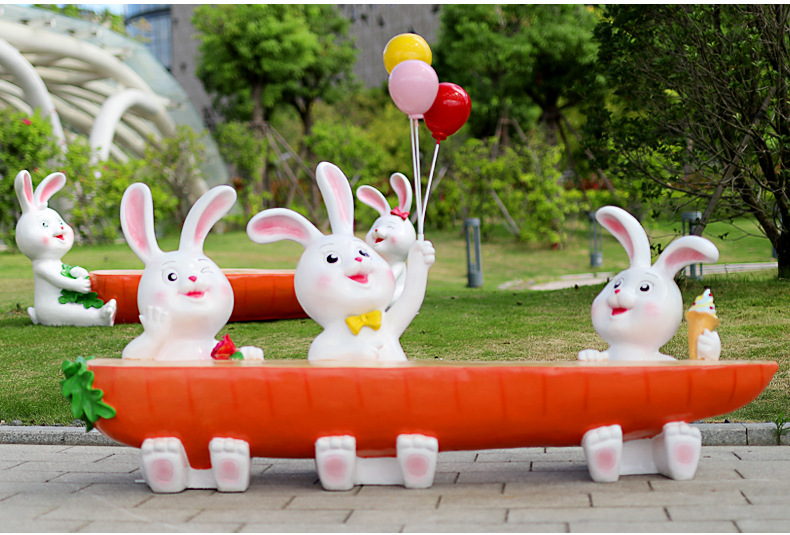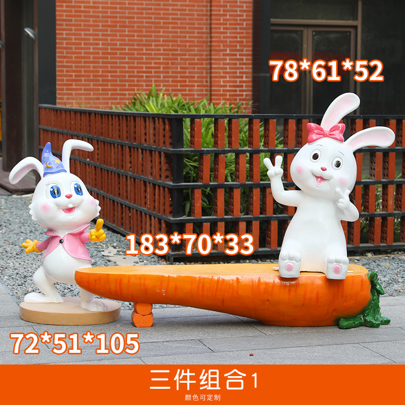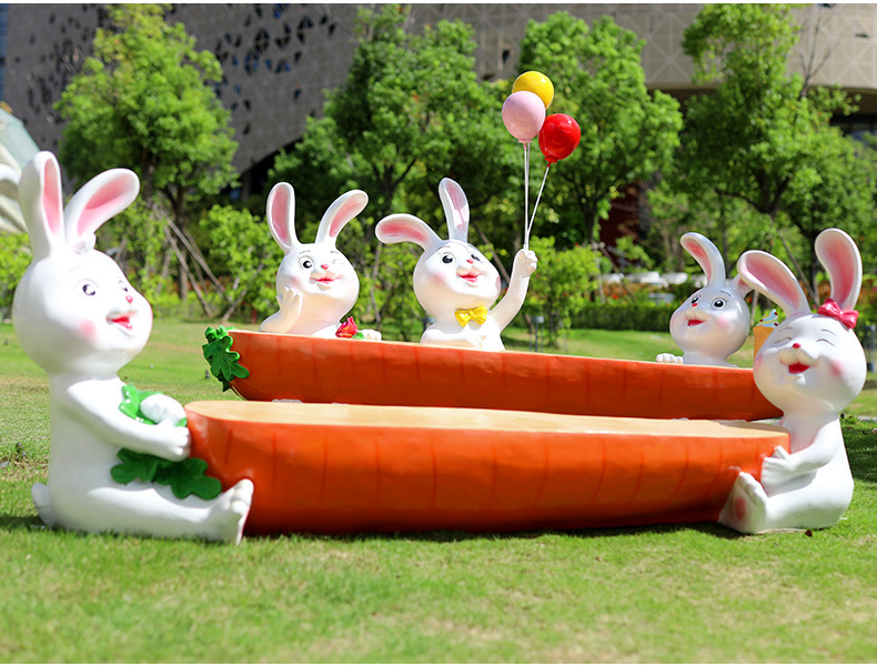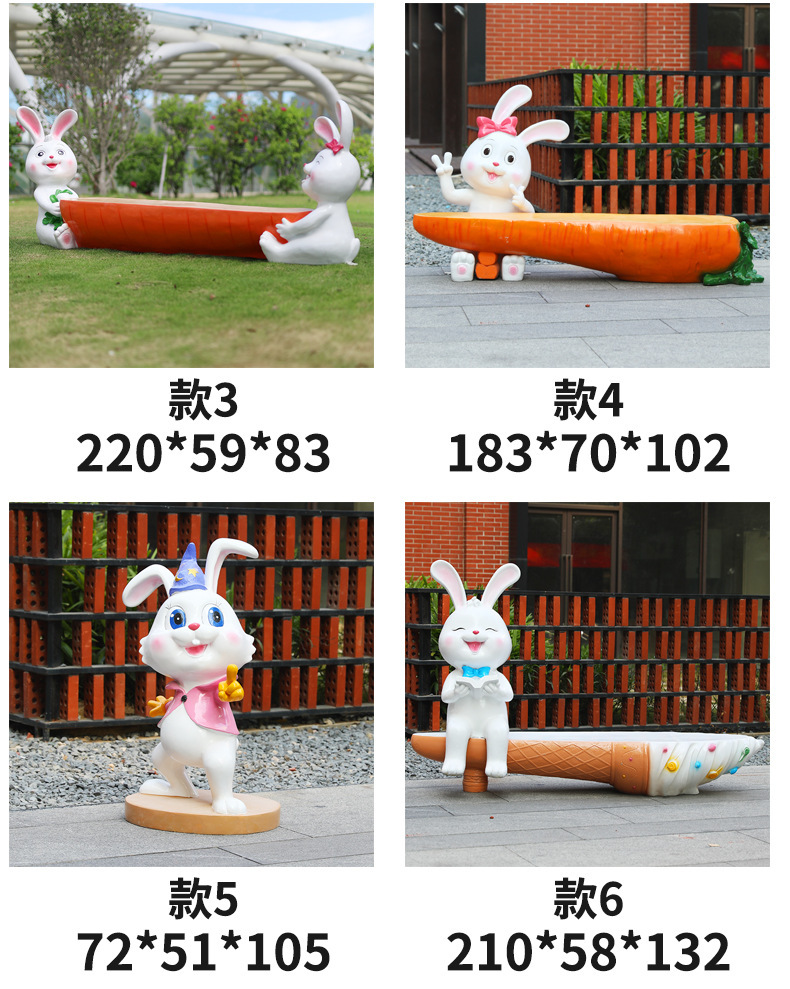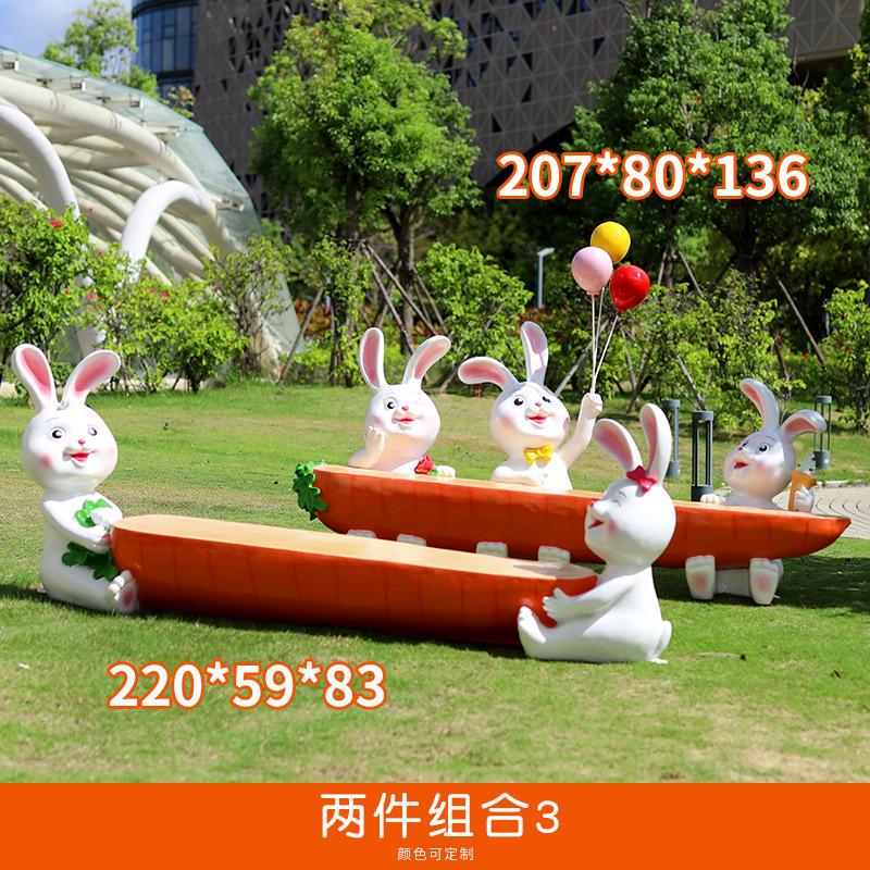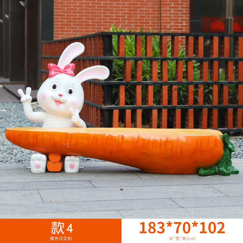 卡通兔子座椅摆件幼儿园林胡萝卜坐凳户外玻璃钢座椅雕塑商场装饰