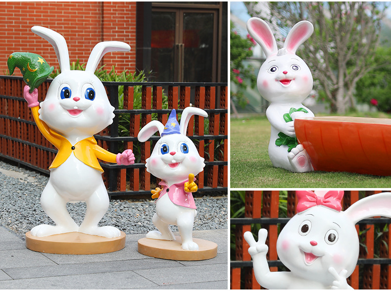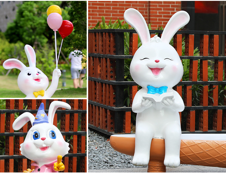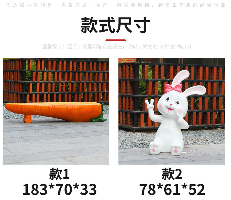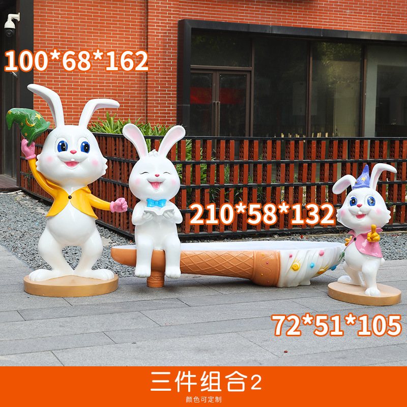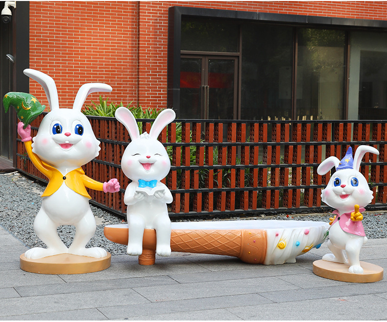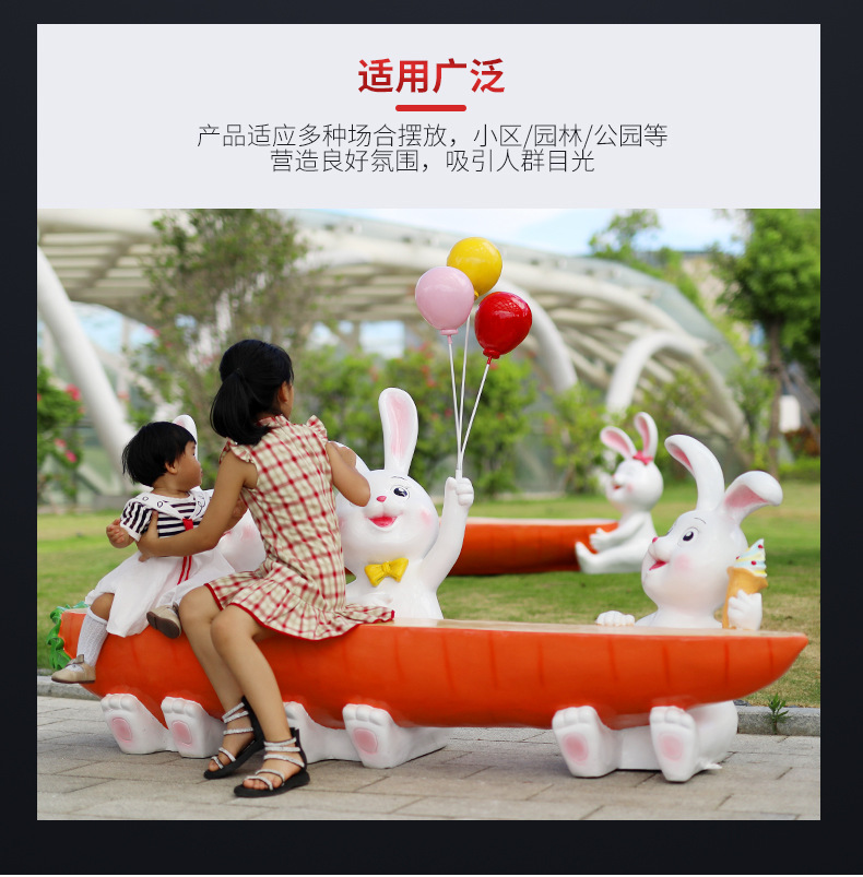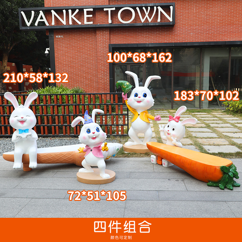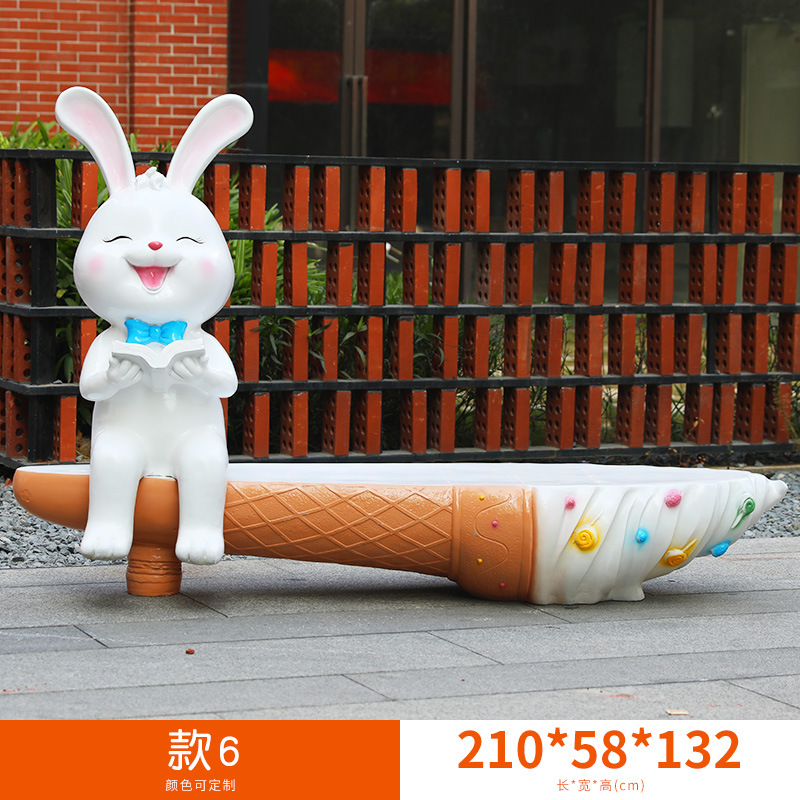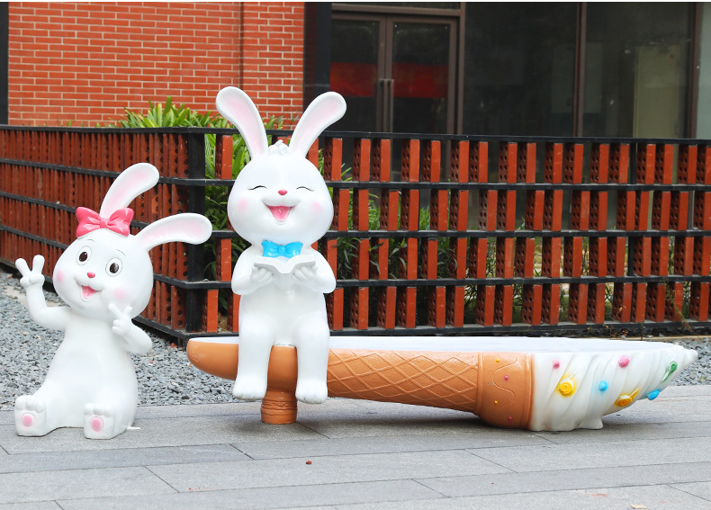 卡通兔子座椅摆件幼儿园林胡萝卜坐凳户外玻璃钢座椅雕塑商场装饰