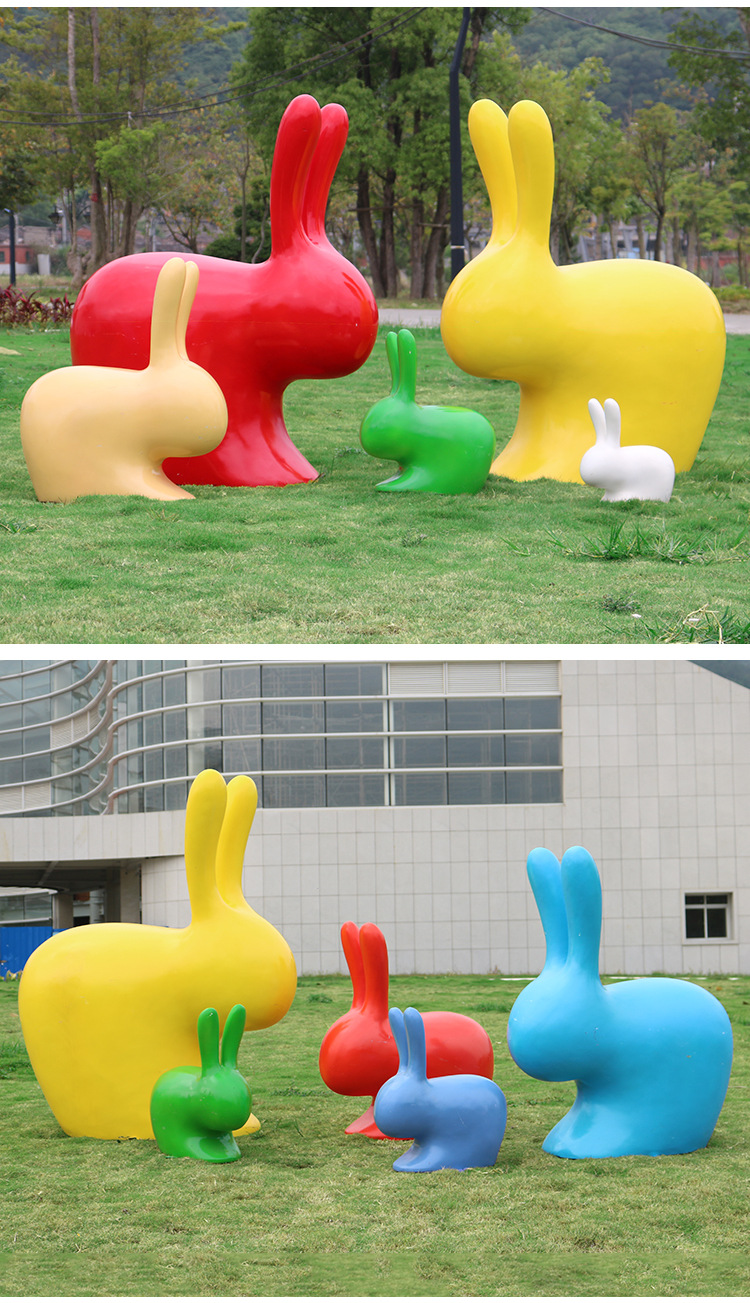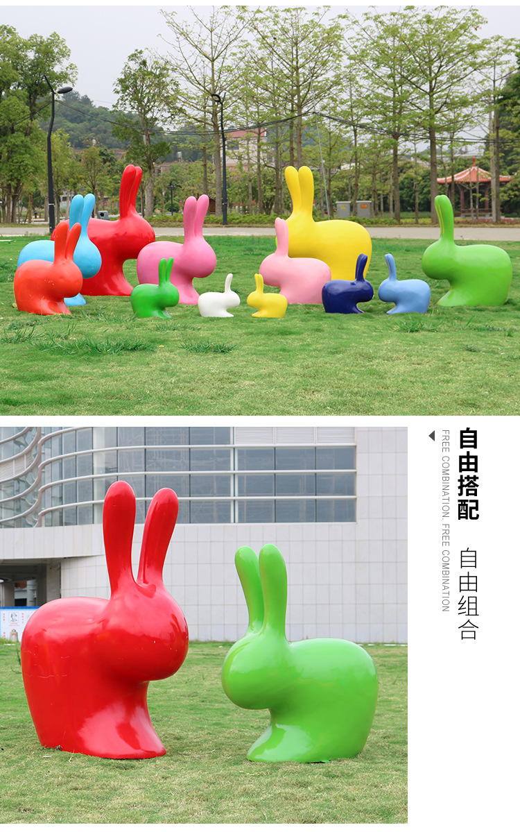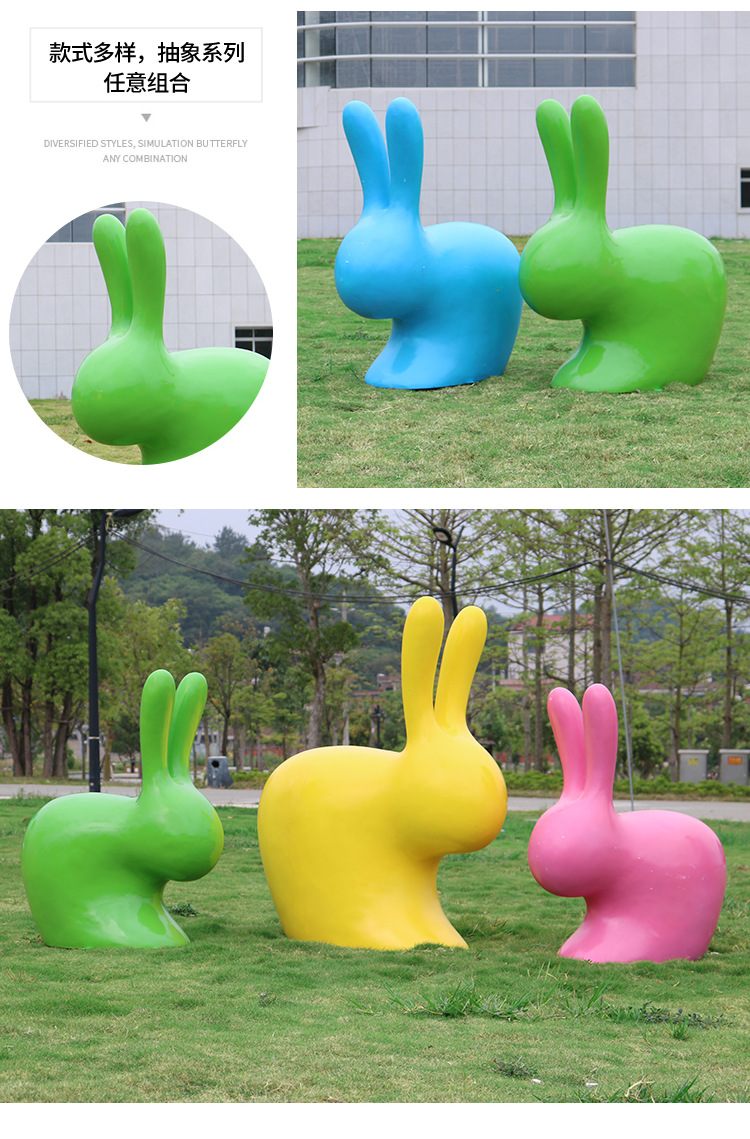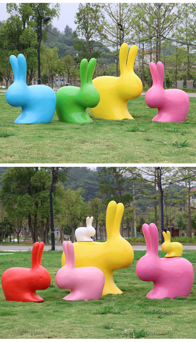 玻璃钢卡通雕塑休闲座椅儿童户外抽象兔子坐凳幼儿园美陈装饰椅子