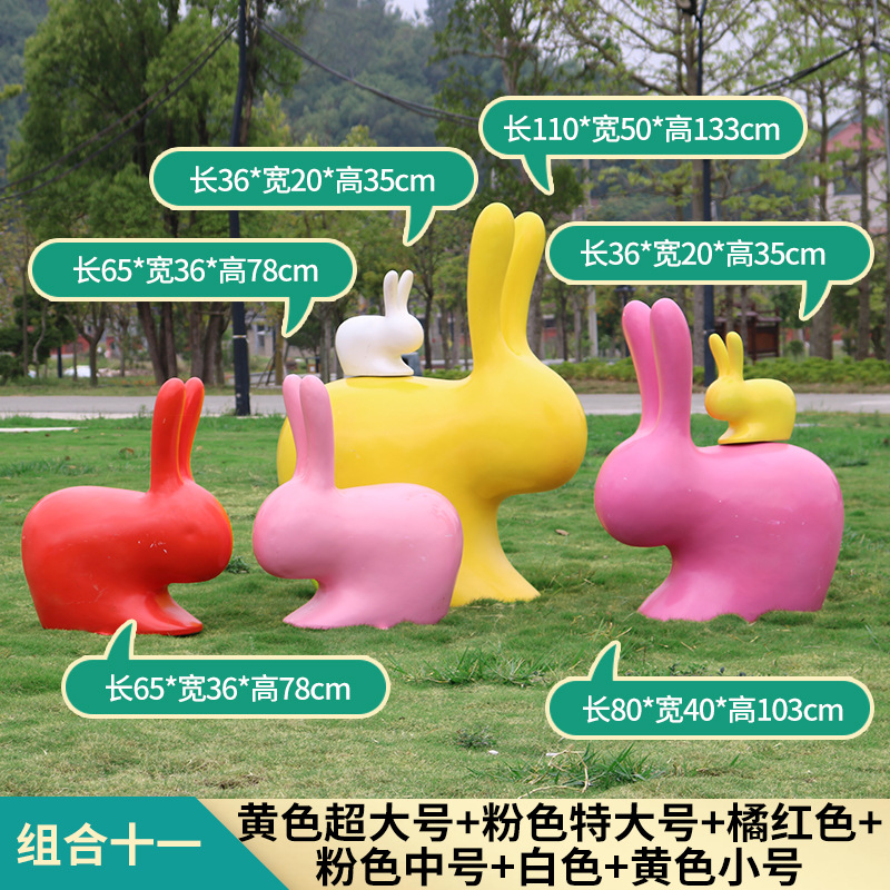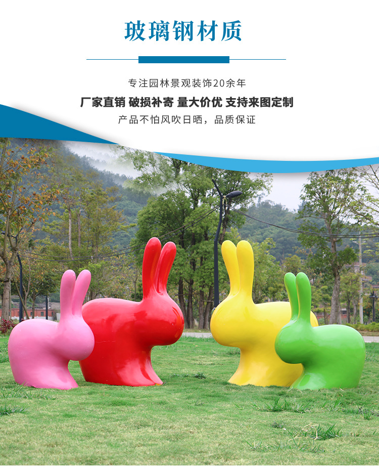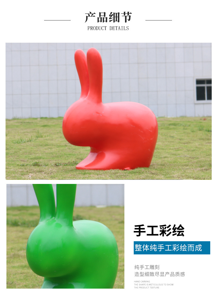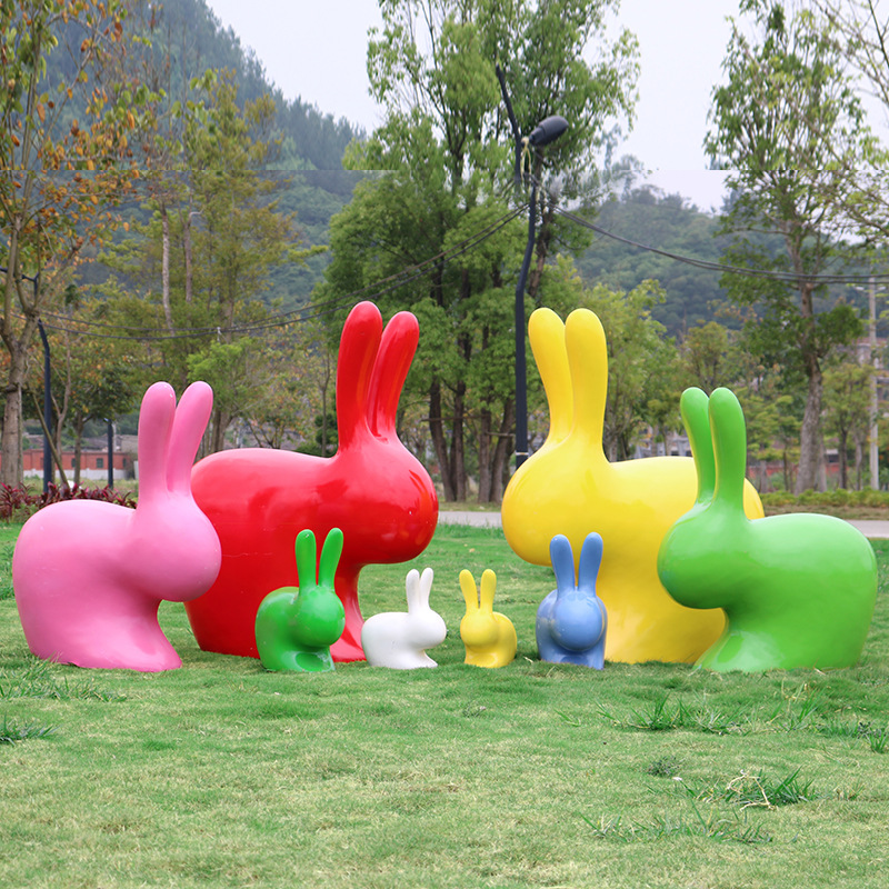 玻璃钢卡通雕塑休闲座椅儿童户外抽象兔子坐凳幼儿园美陈装饰椅子