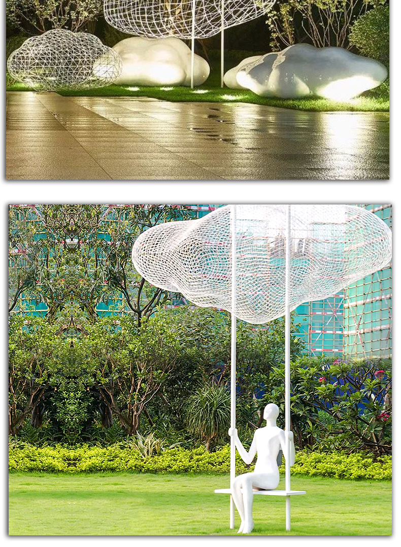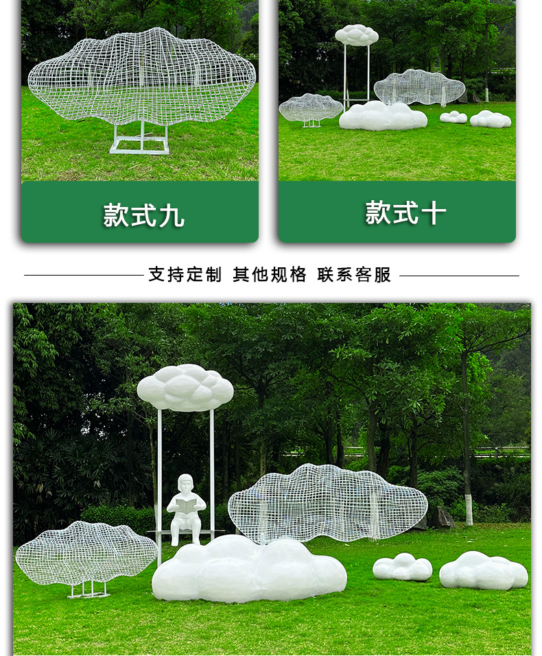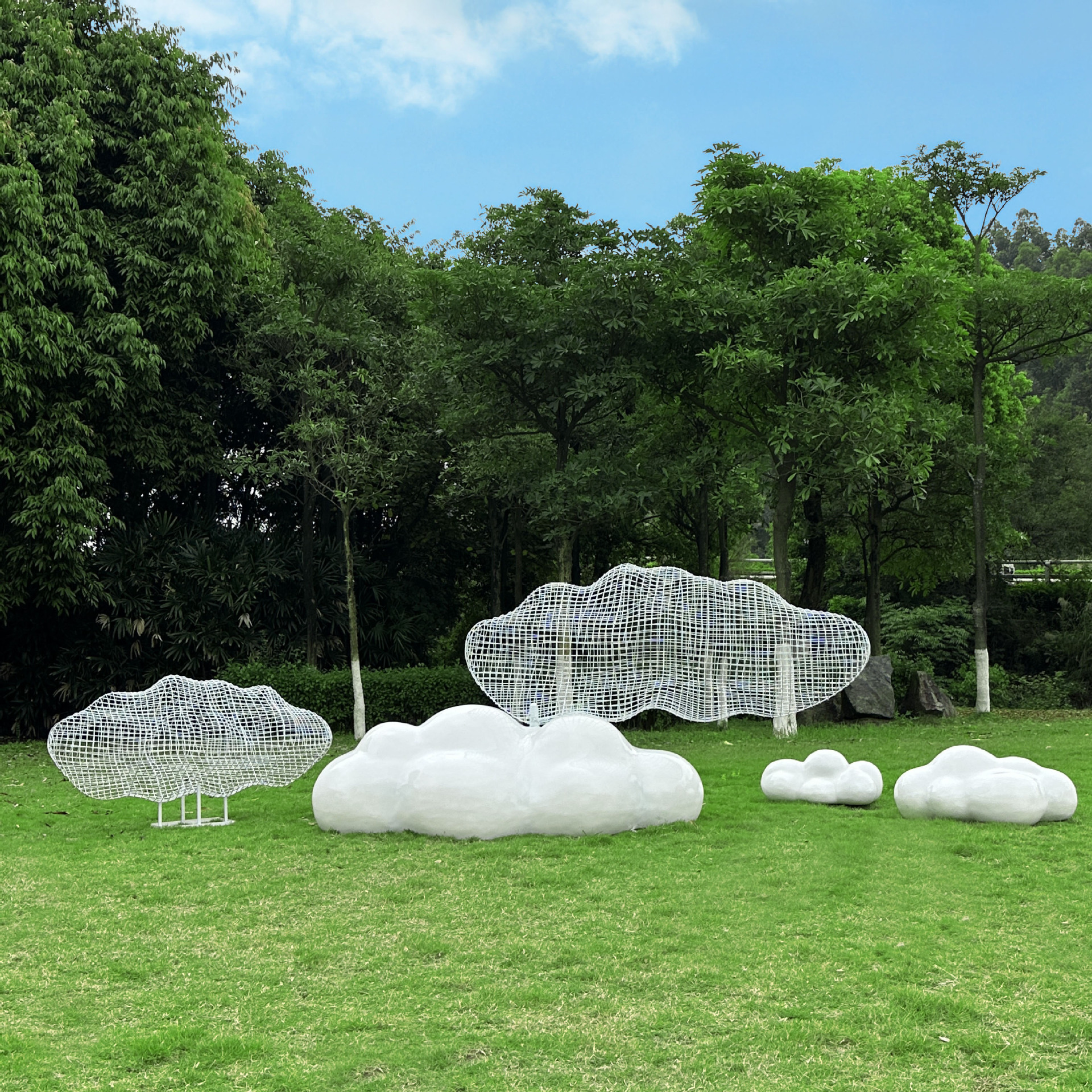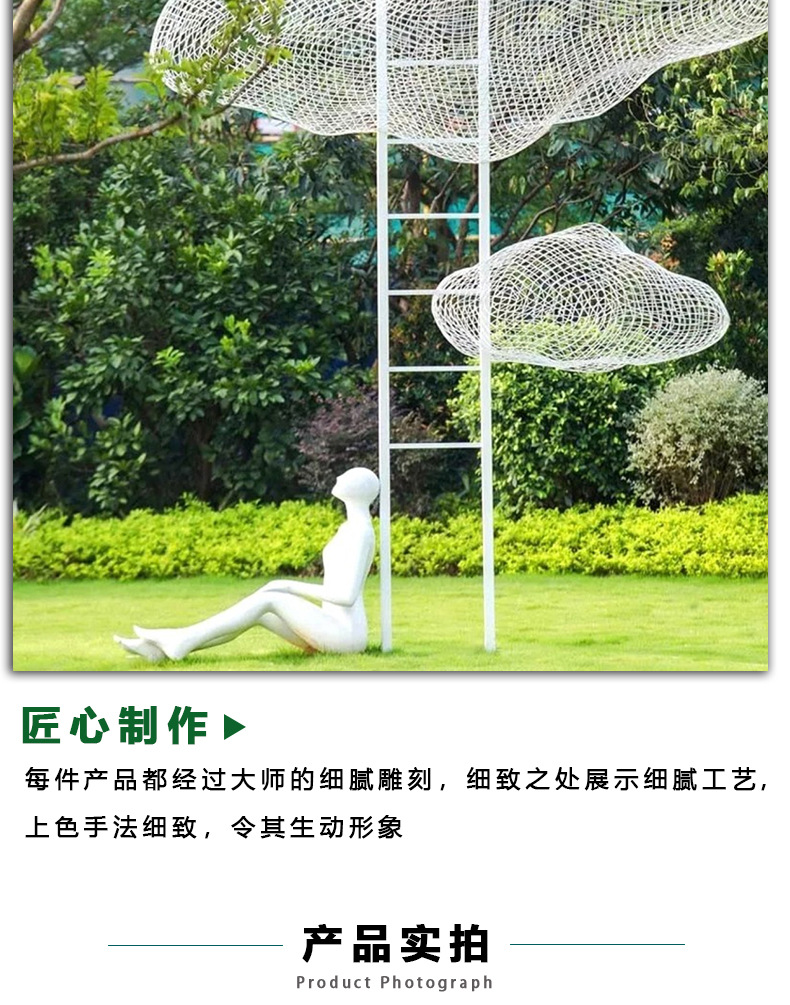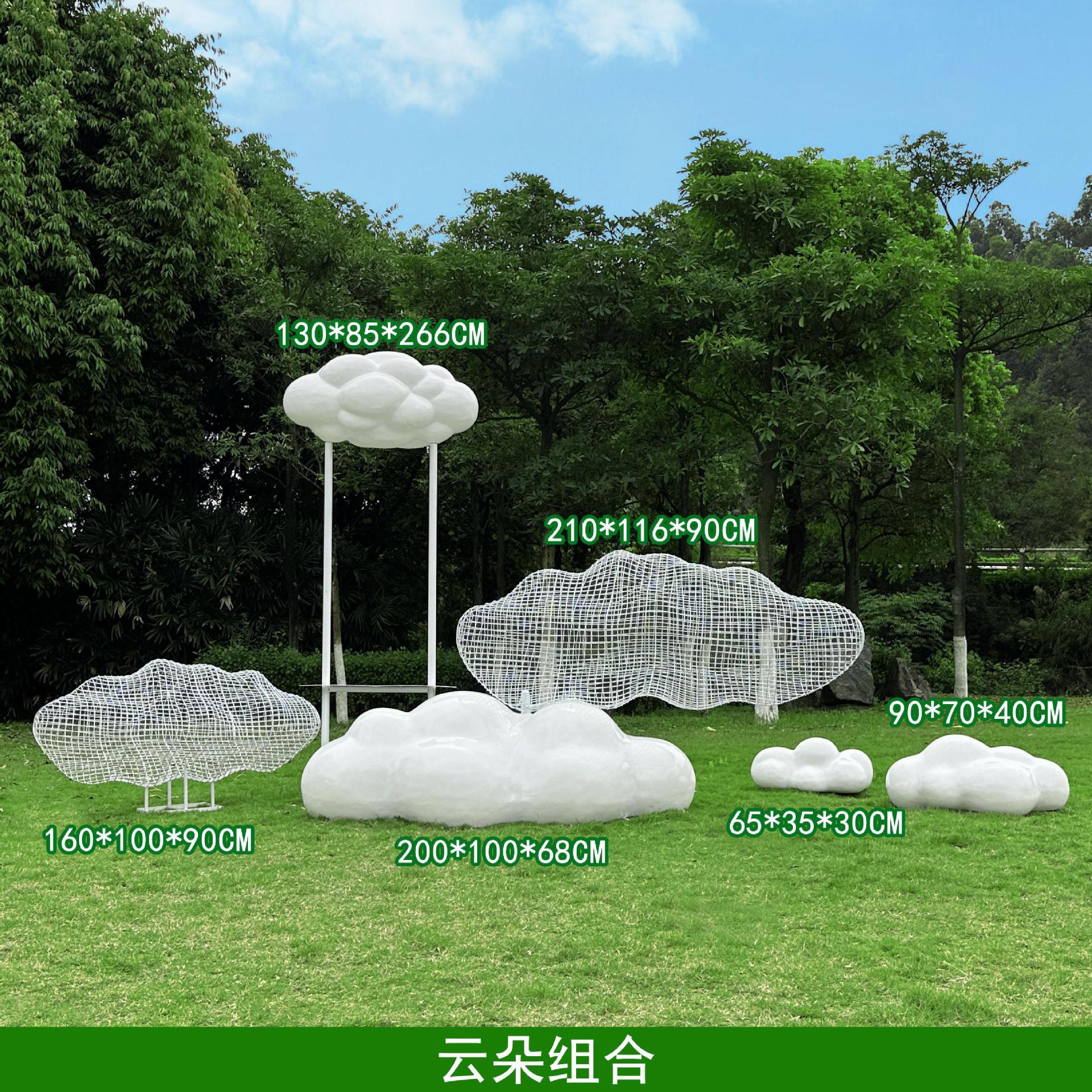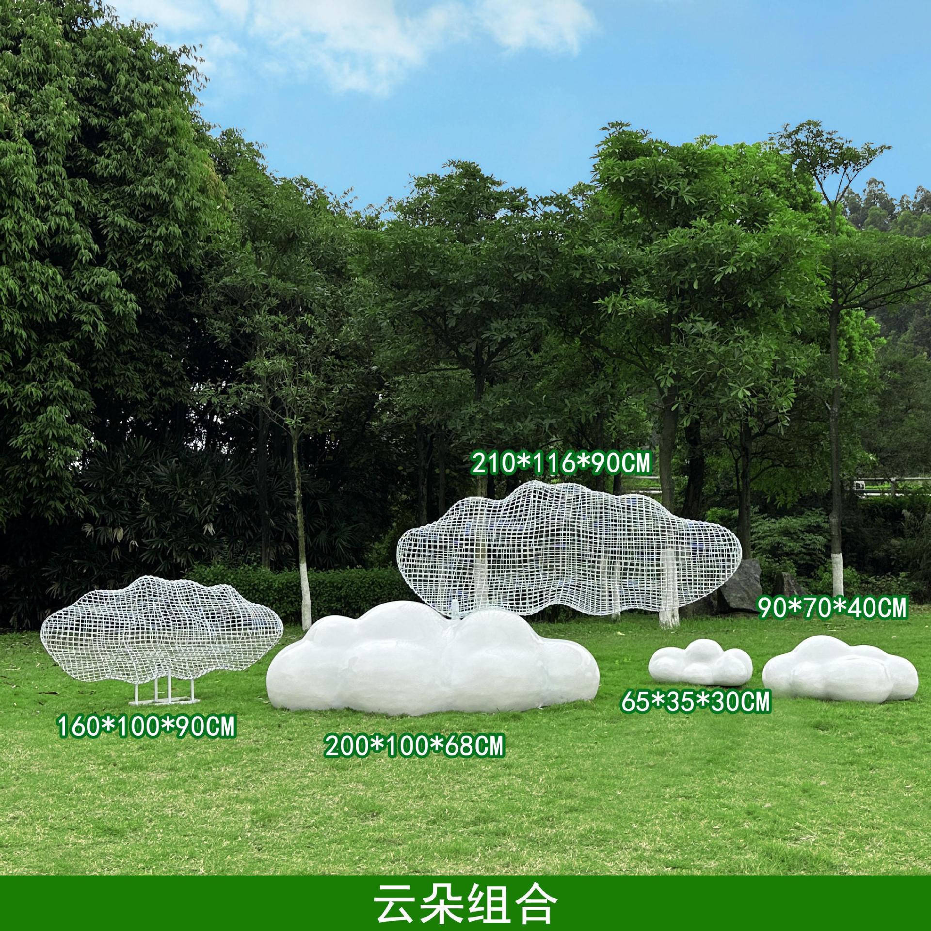 户外不锈钢镂空玻璃钢云朵雕塑园林景观地产小区草坪装饰人物摆件