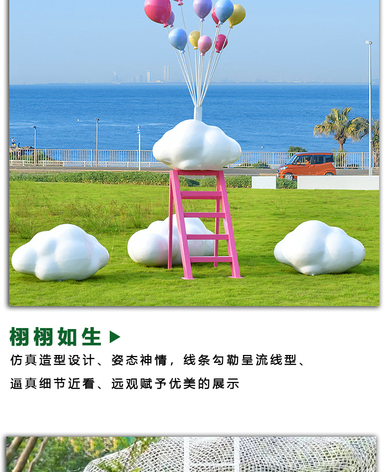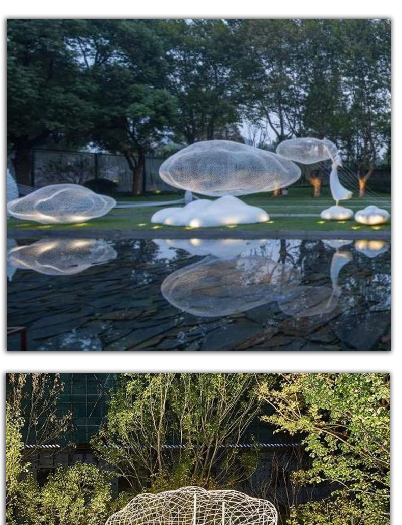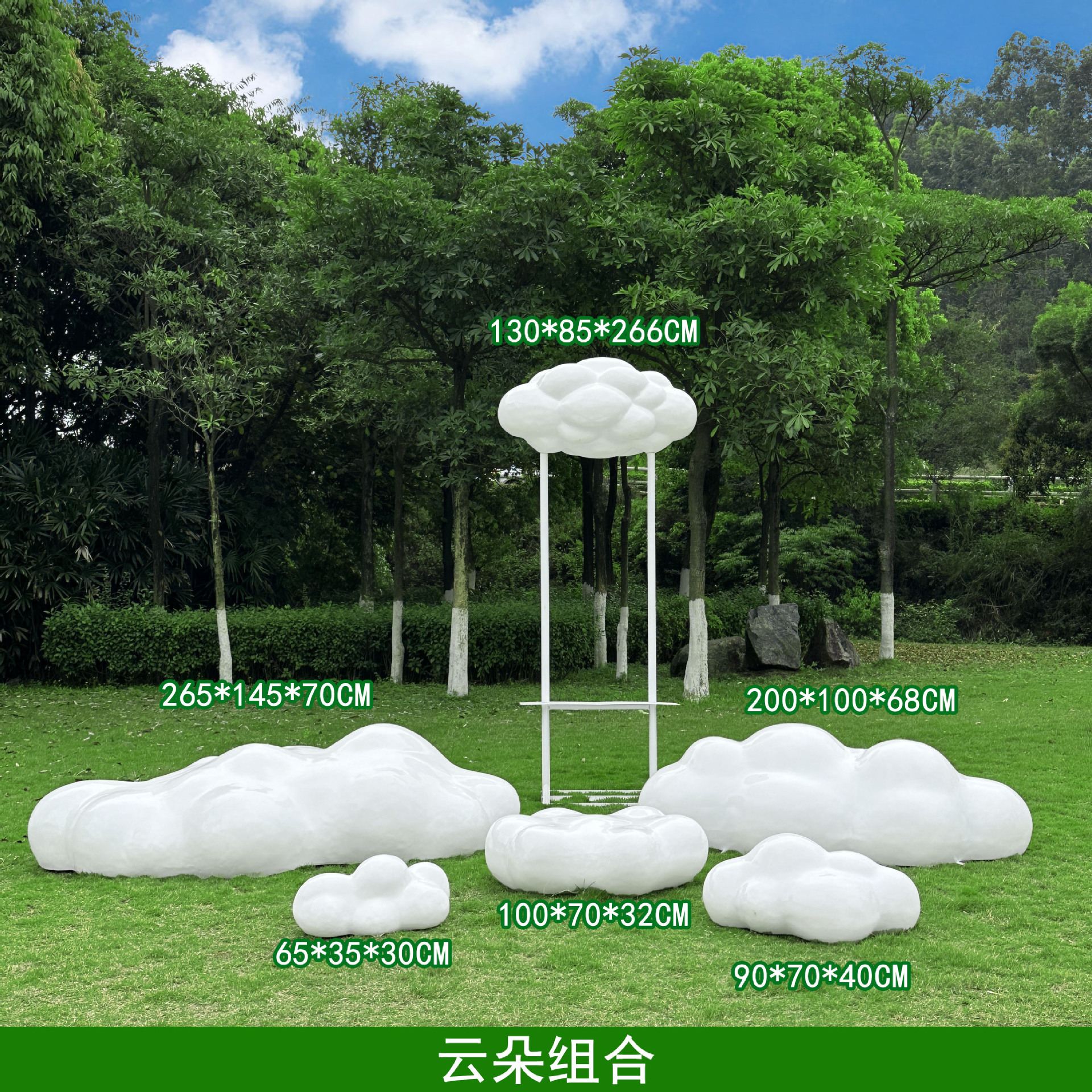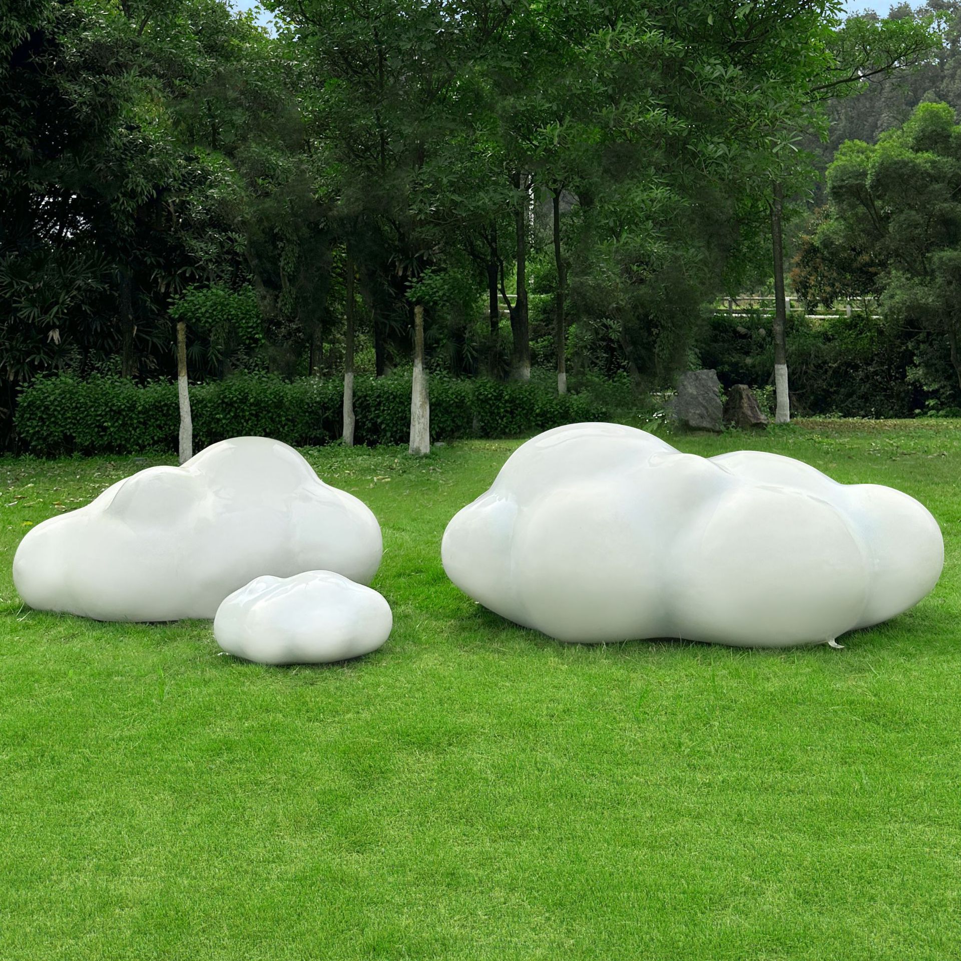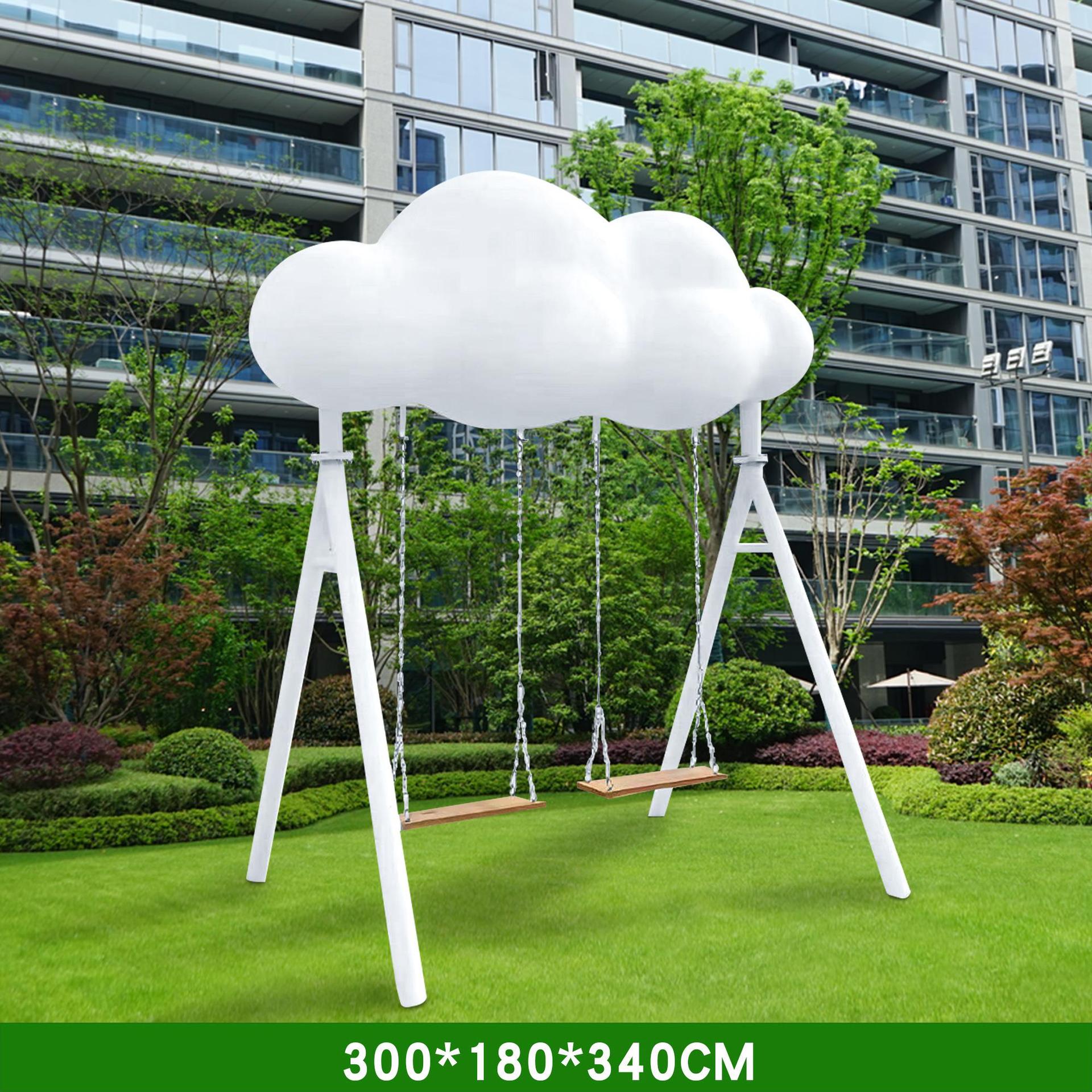 户外不锈钢镂空玻璃钢云朵雕塑园林景观地产小区草坪装饰人物摆件
