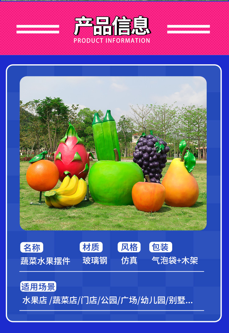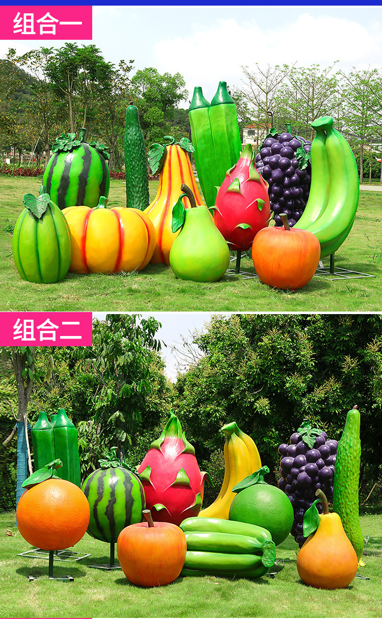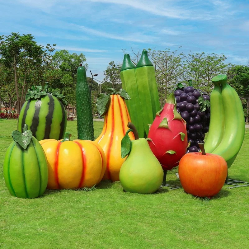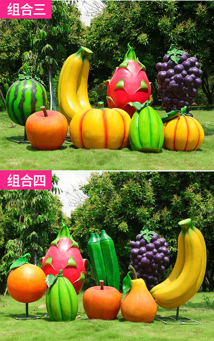 户外仿真水果蔬菜南瓜雕塑农场生态园玻璃钢香蕉火龙果装饰大摆件