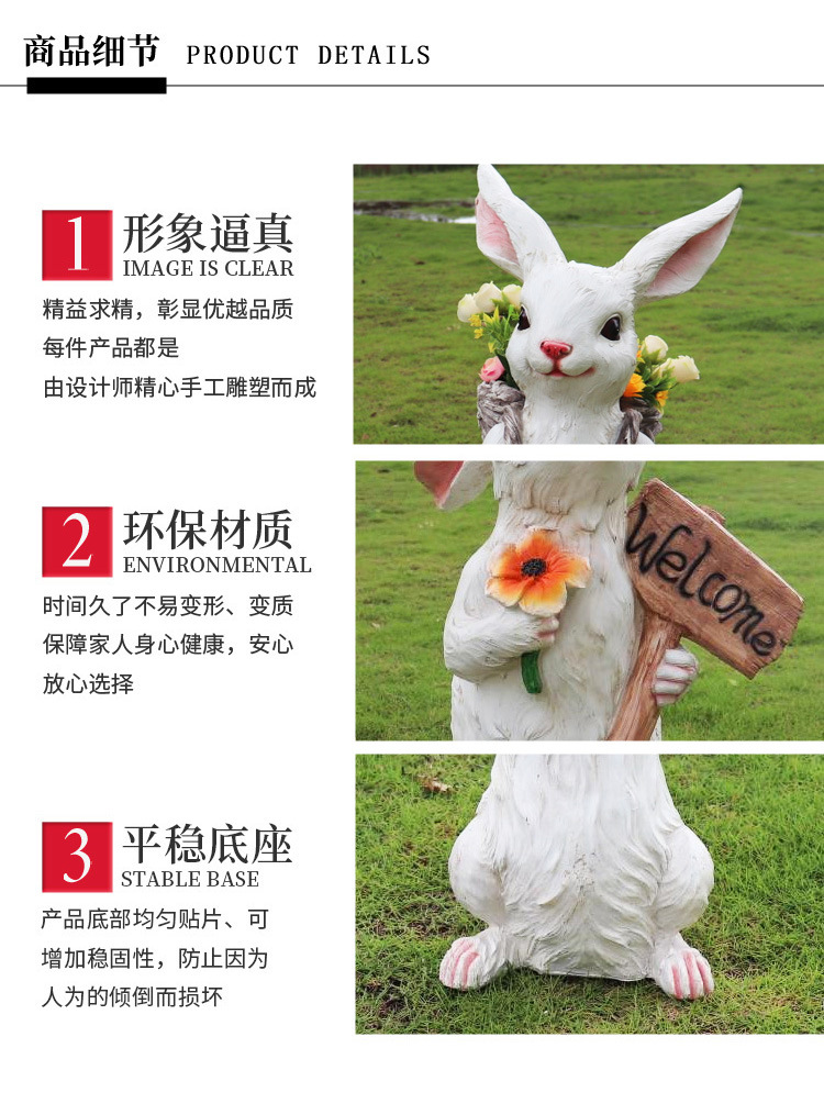 卡通兔子摆件创意室外草坪幼儿园大型园林景观雕塑摆设庭院子装饰