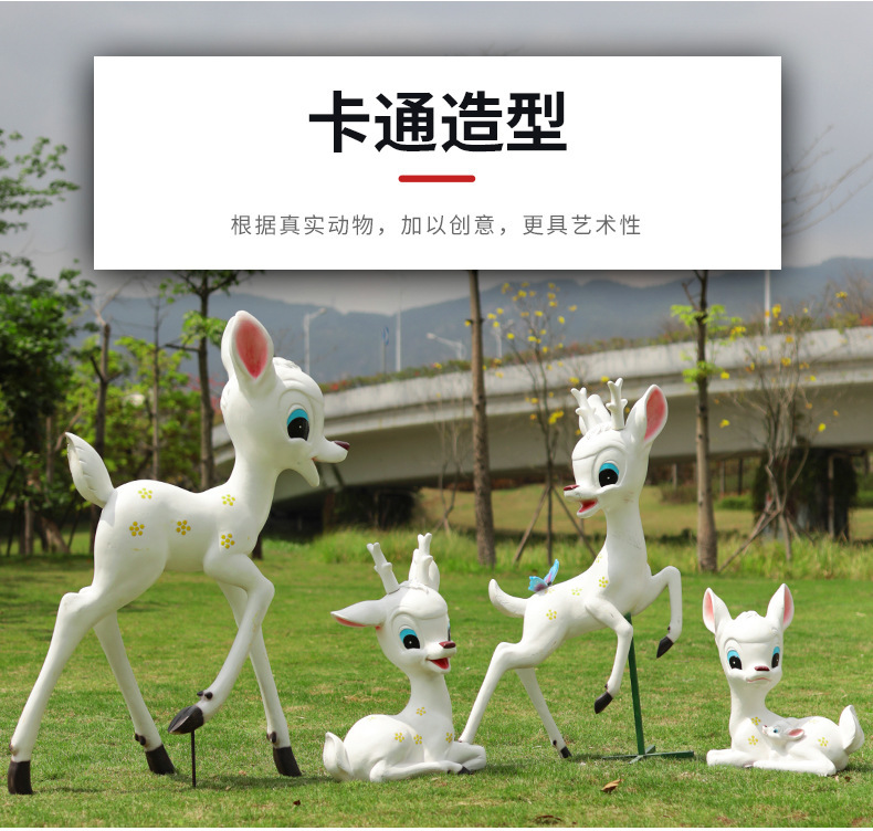 卡通梅花鹿户外玻璃钢动物雕塑摆件园林景观花园庭院小区装饰小品