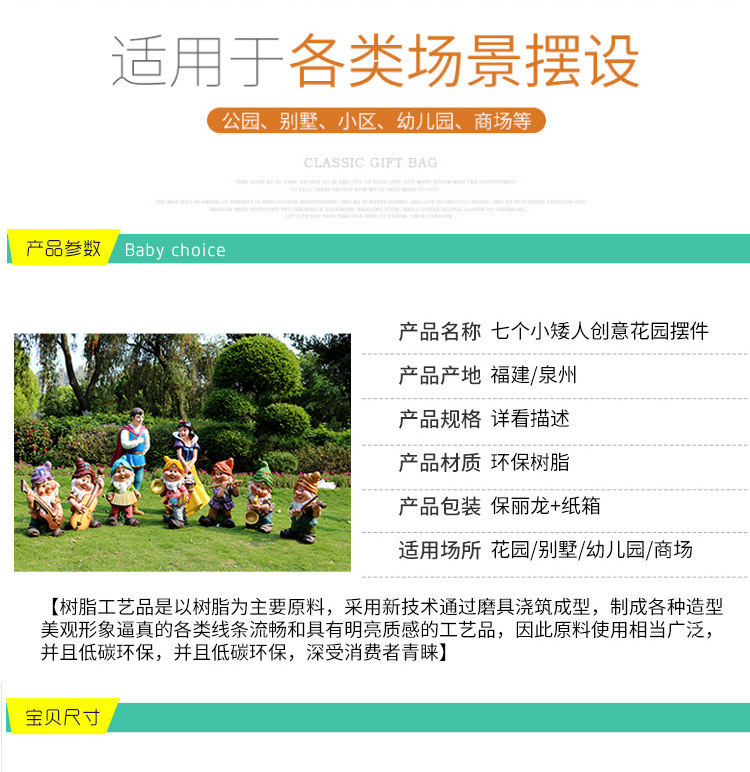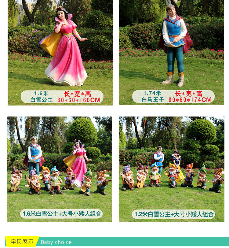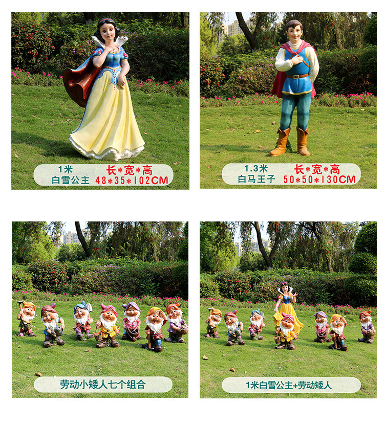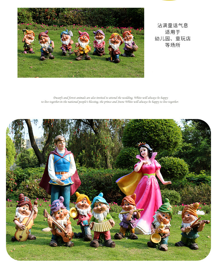 户外大型玻璃钢白雪公主七个小矮人雕塑卡通动漫园林景观装饰摆件