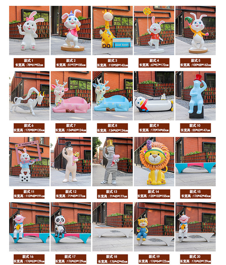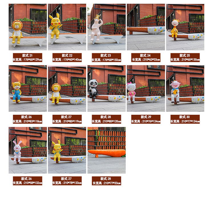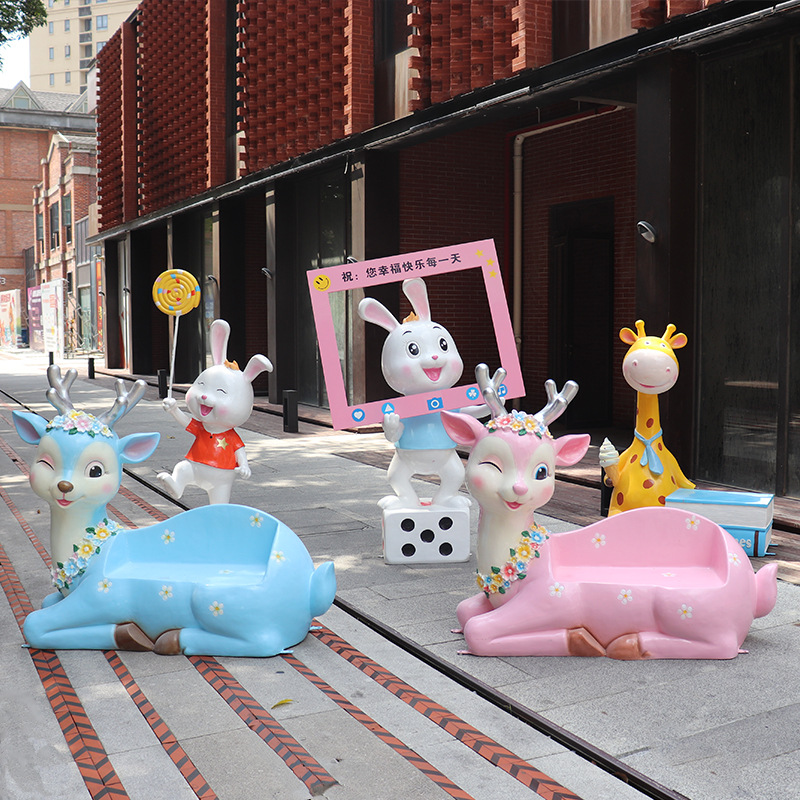 卡通动物坐凳雕塑户外公园林玻璃钢座椅摆件幼儿园草坪景观装饰品