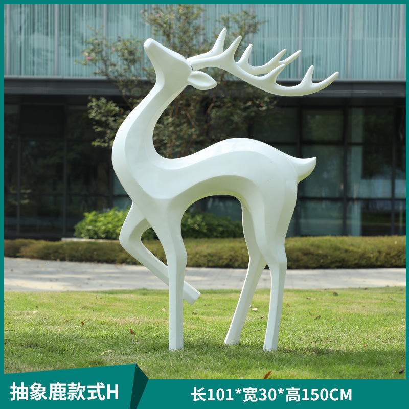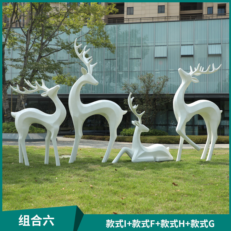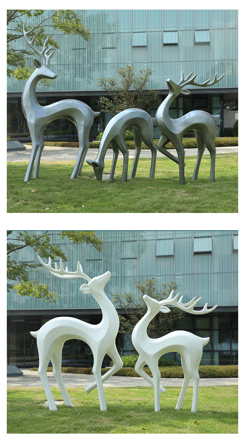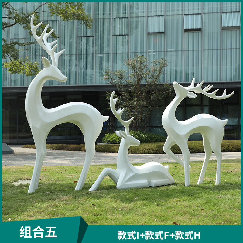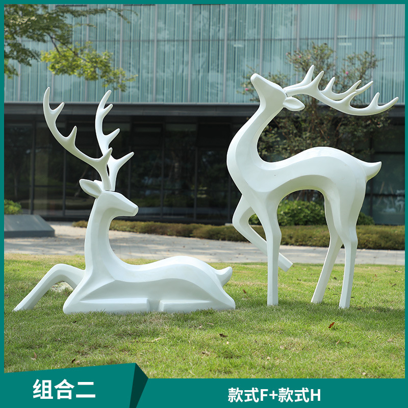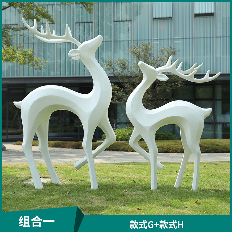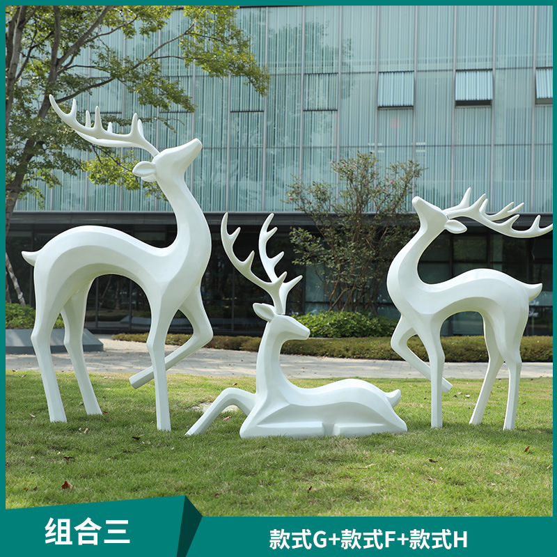 户外抽象几何梅花鹿雕塑玻璃钢园林造景售楼部草坪装饰品落地摆件