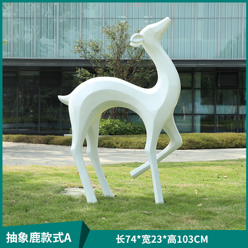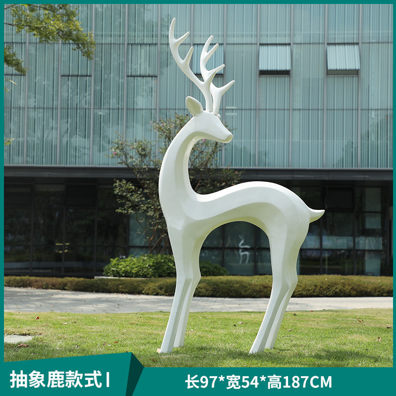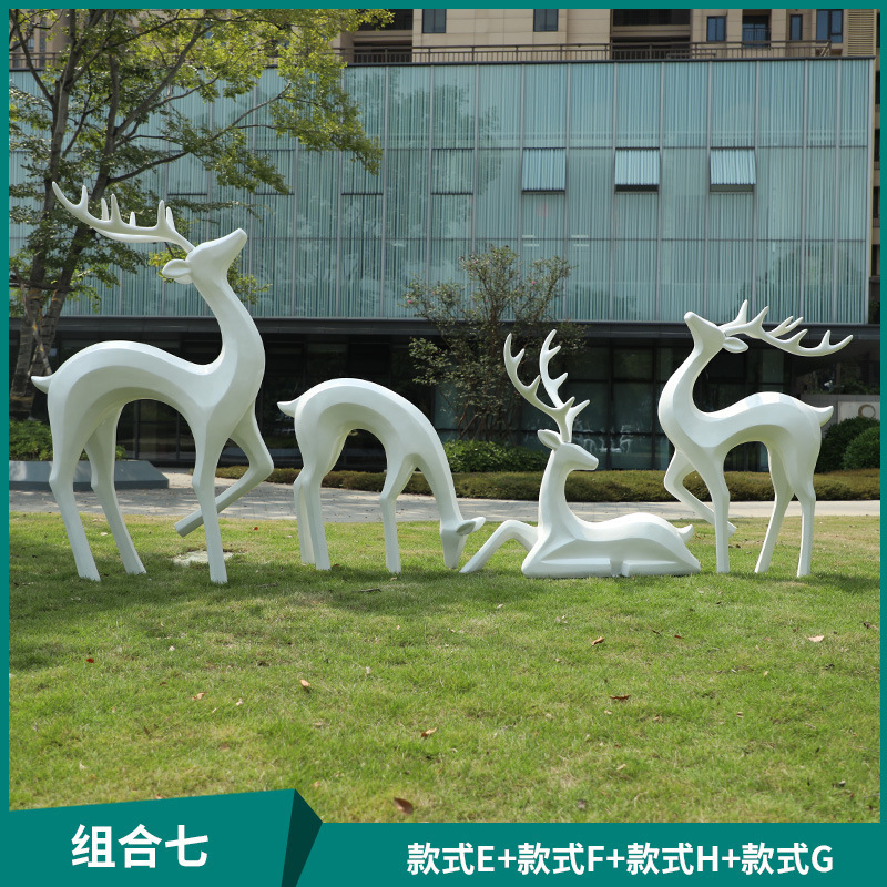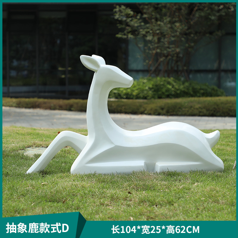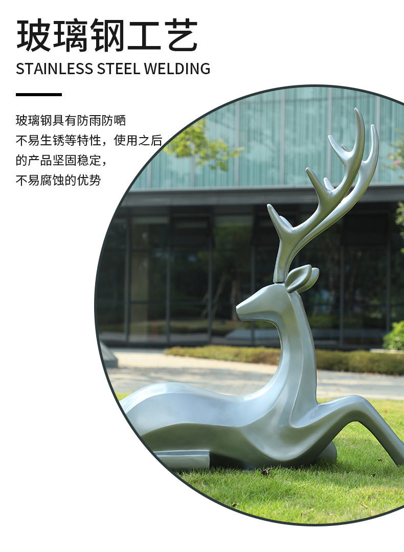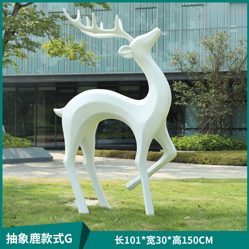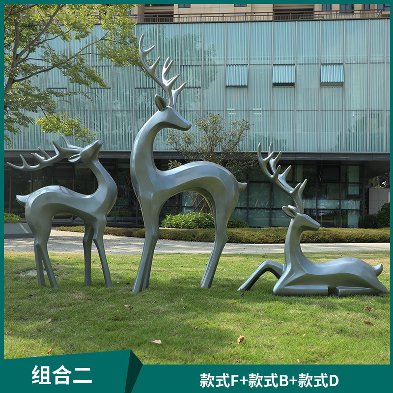 户外抽象几何梅花鹿雕塑玻璃钢园林造景售楼部草坪装饰品落地摆件