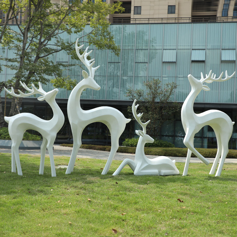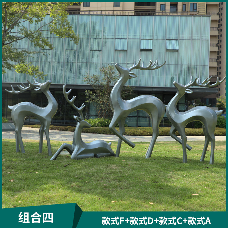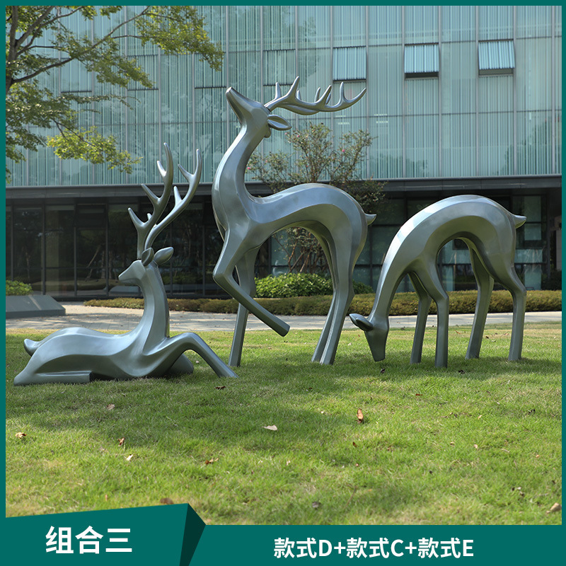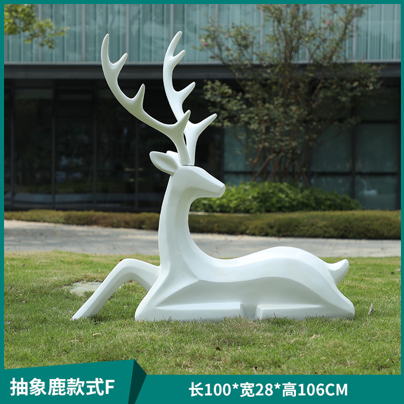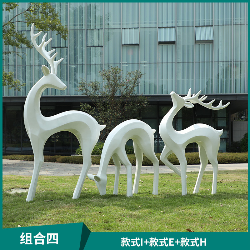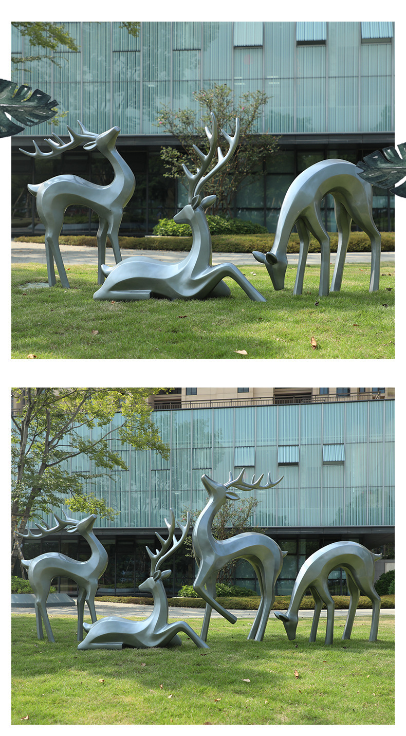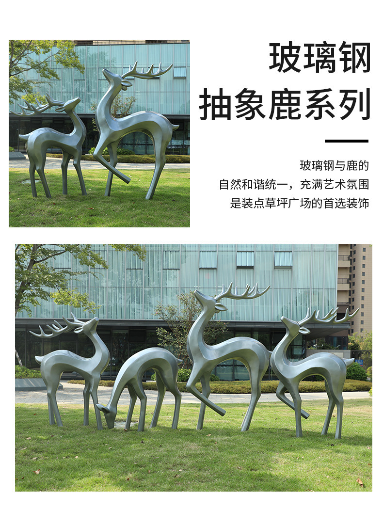 户外抽象几何梅花鹿雕塑玻璃钢园林造景售楼部草坪装饰品落地摆件