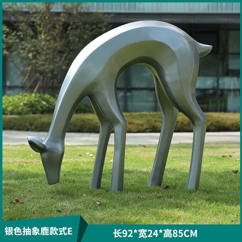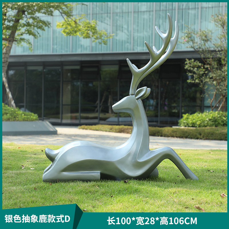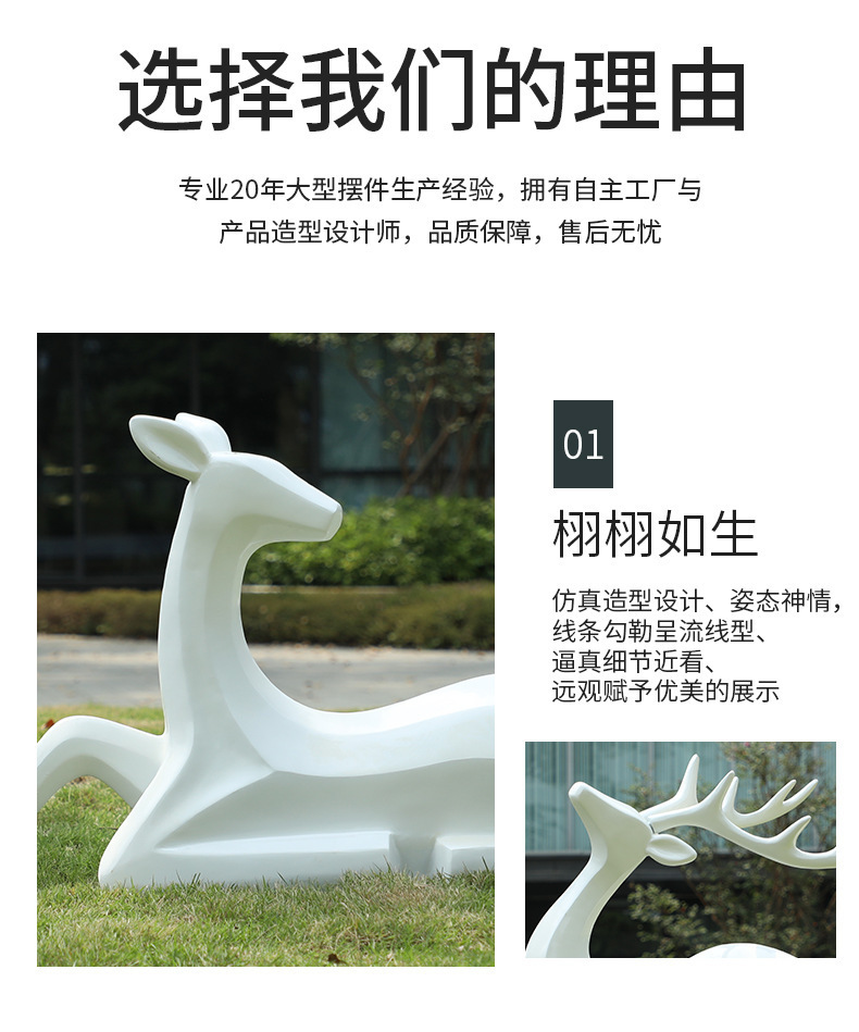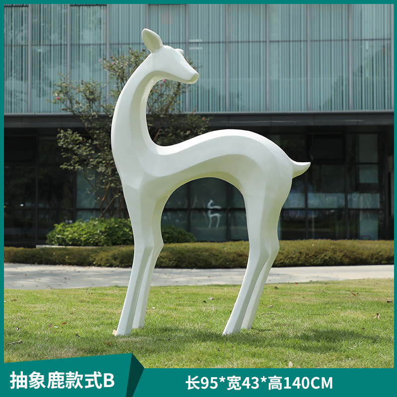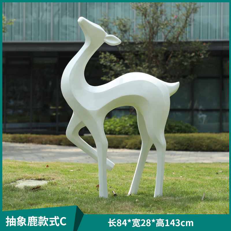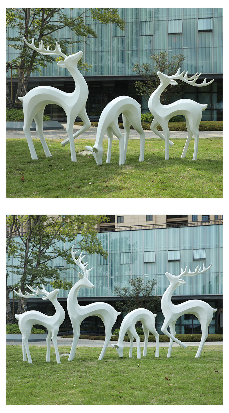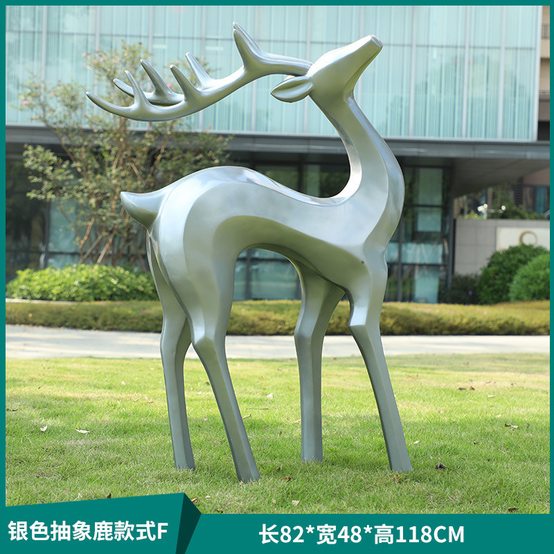 户外抽象几何梅花鹿雕塑玻璃钢园林造景售楼部草坪装饰品落地摆件
