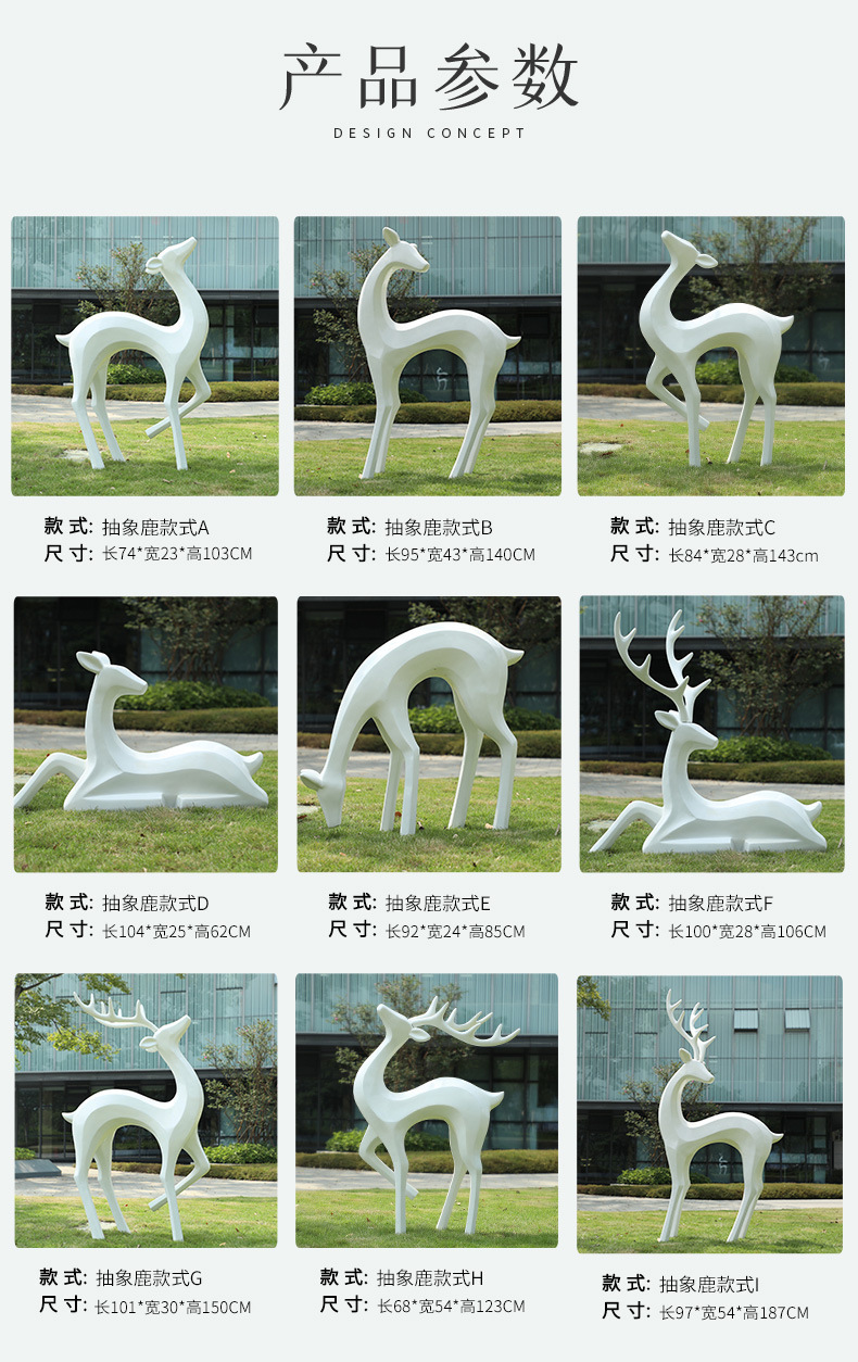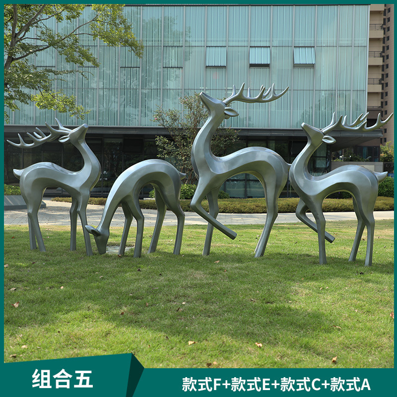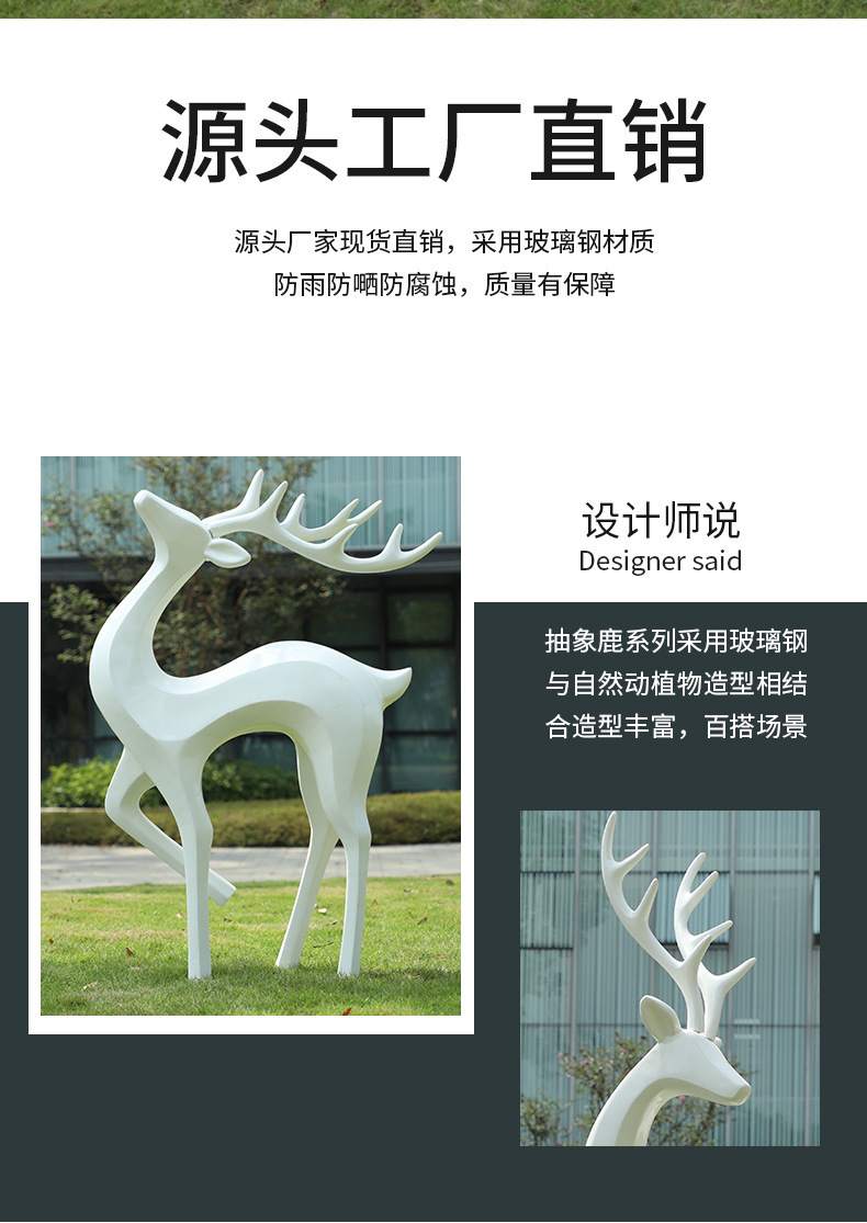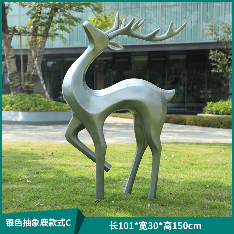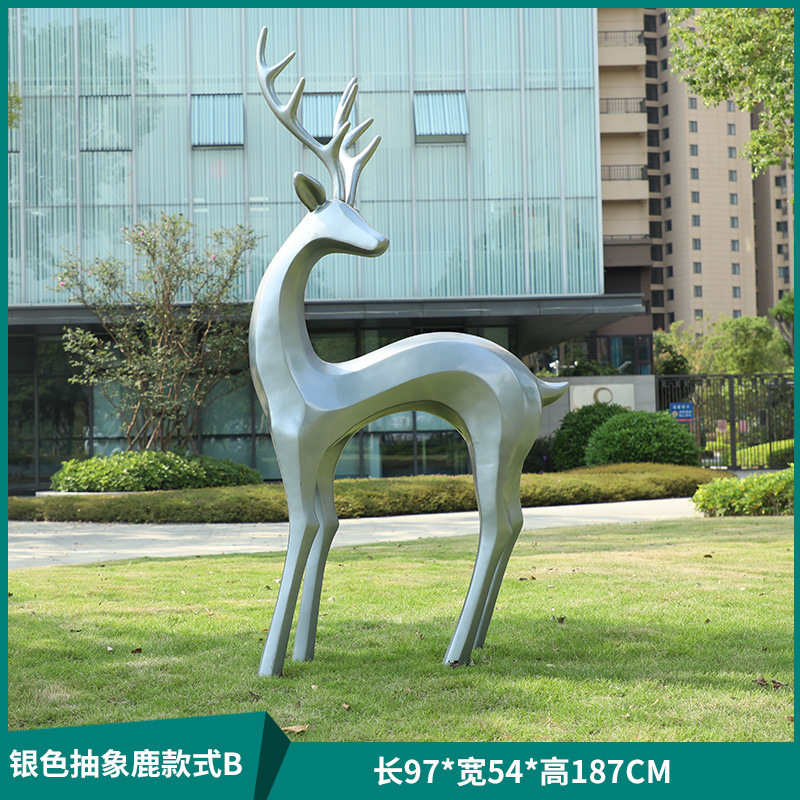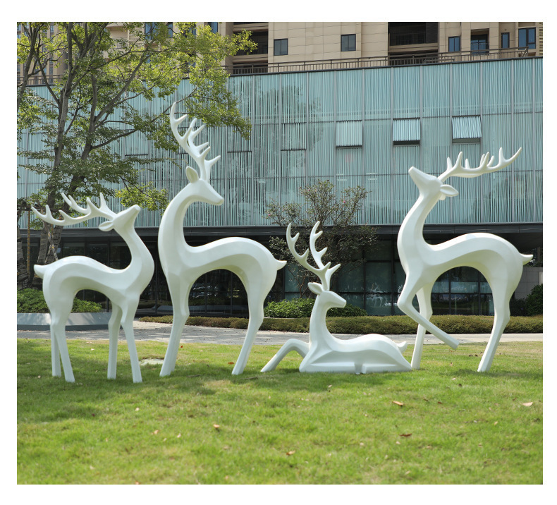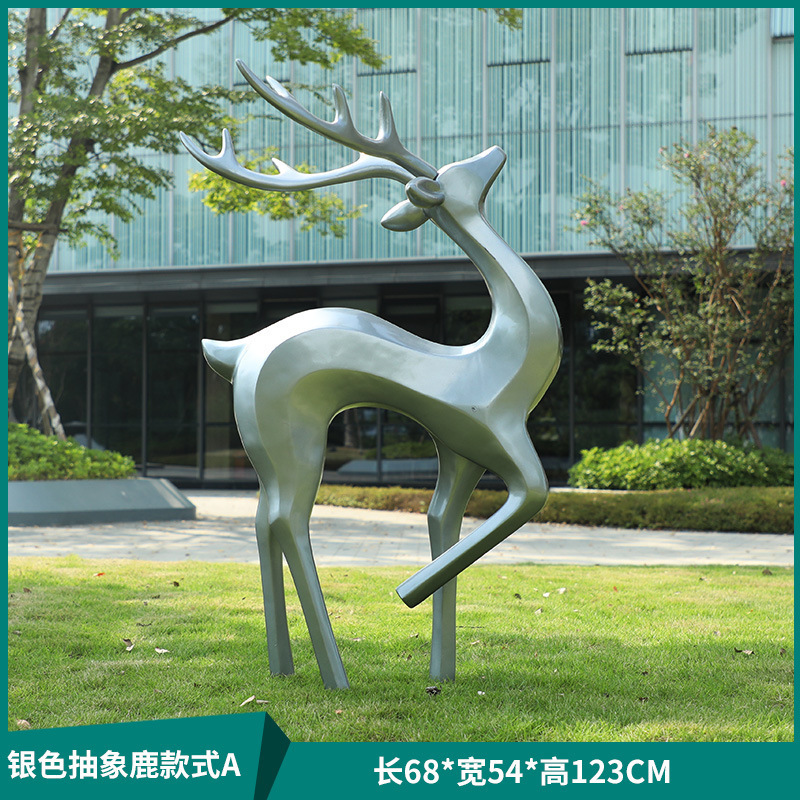 户外抽象几何梅花鹿雕塑玻璃钢园林造景售楼部草坪装饰品落地摆件
