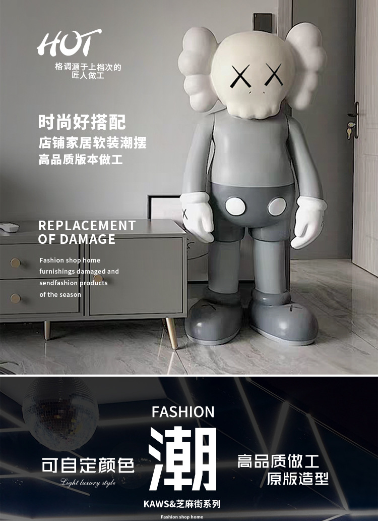 网红kaws芝麻街大摆件卡通暴力熊雕塑商场景区门店拍照打卡装饰品