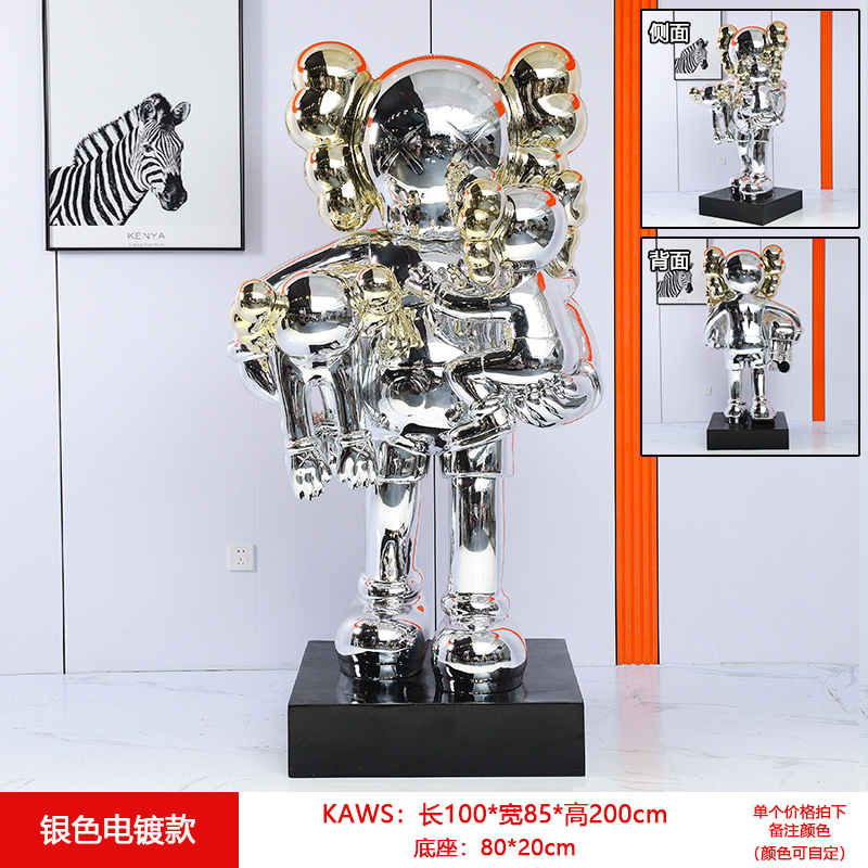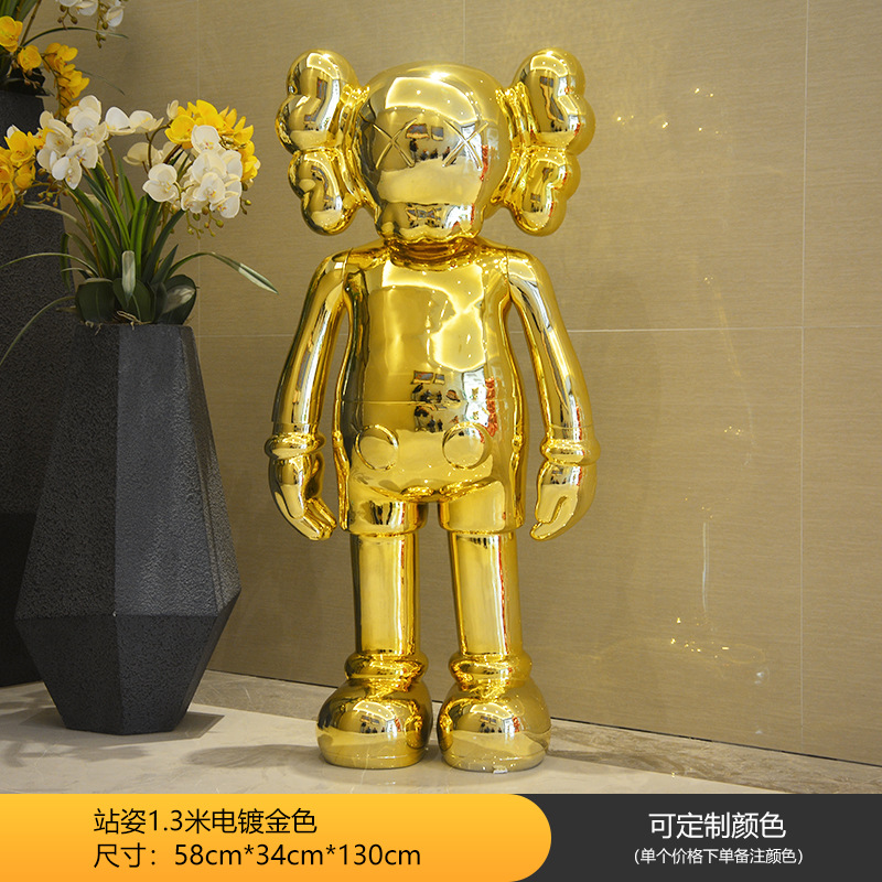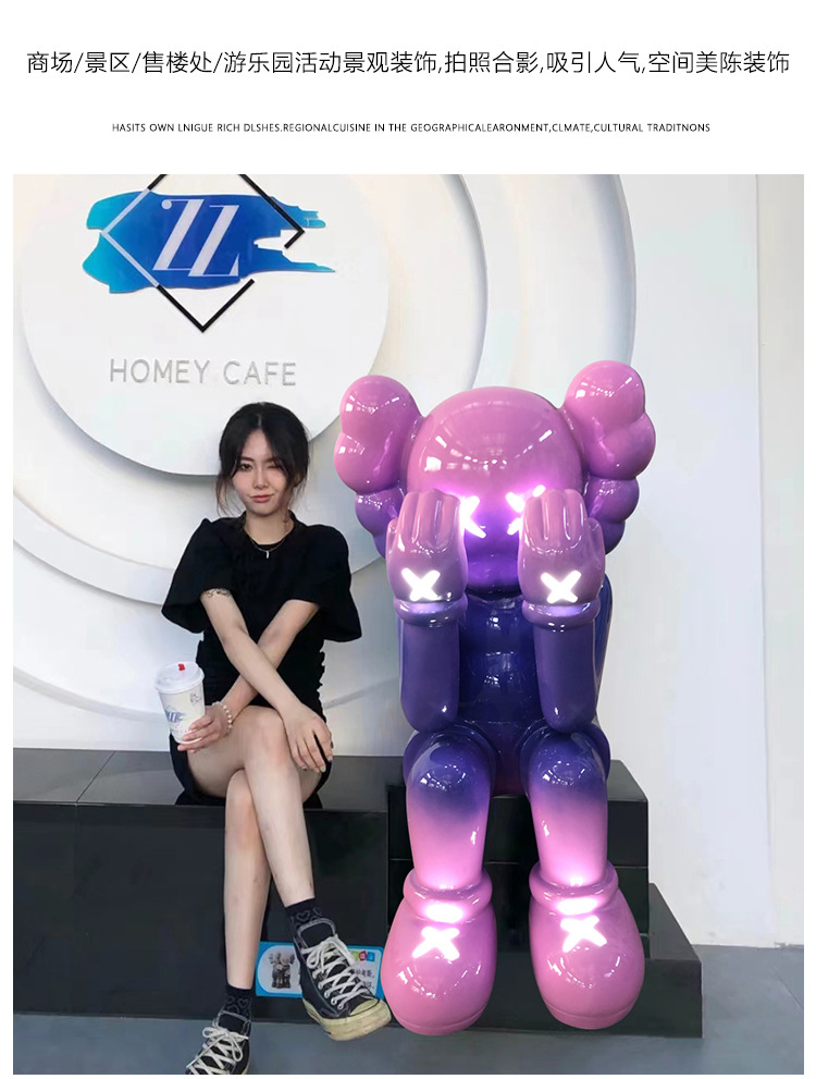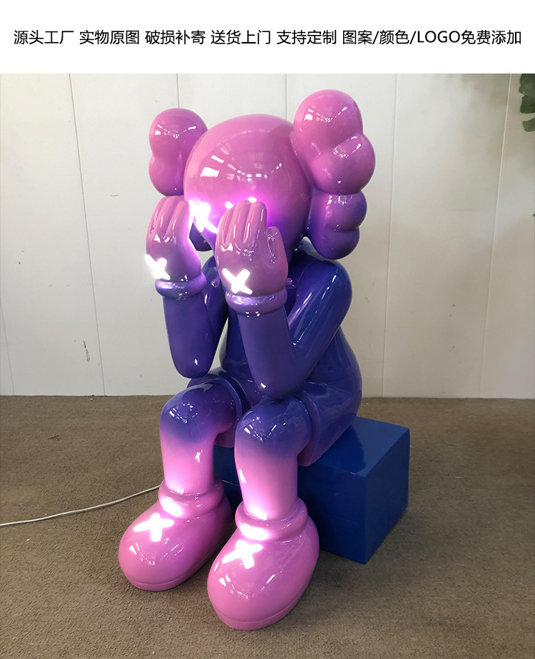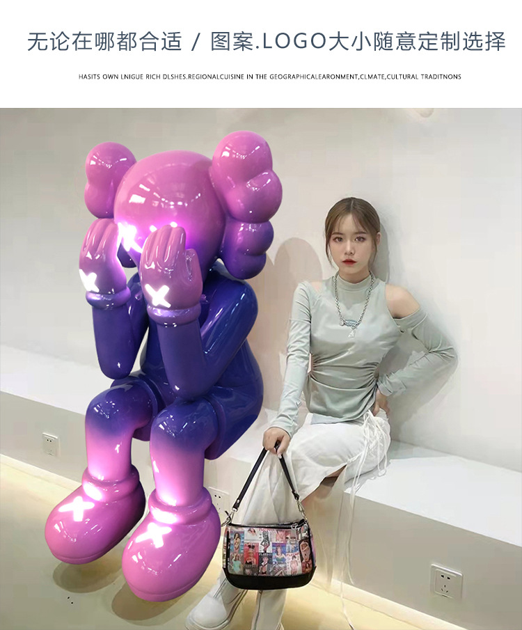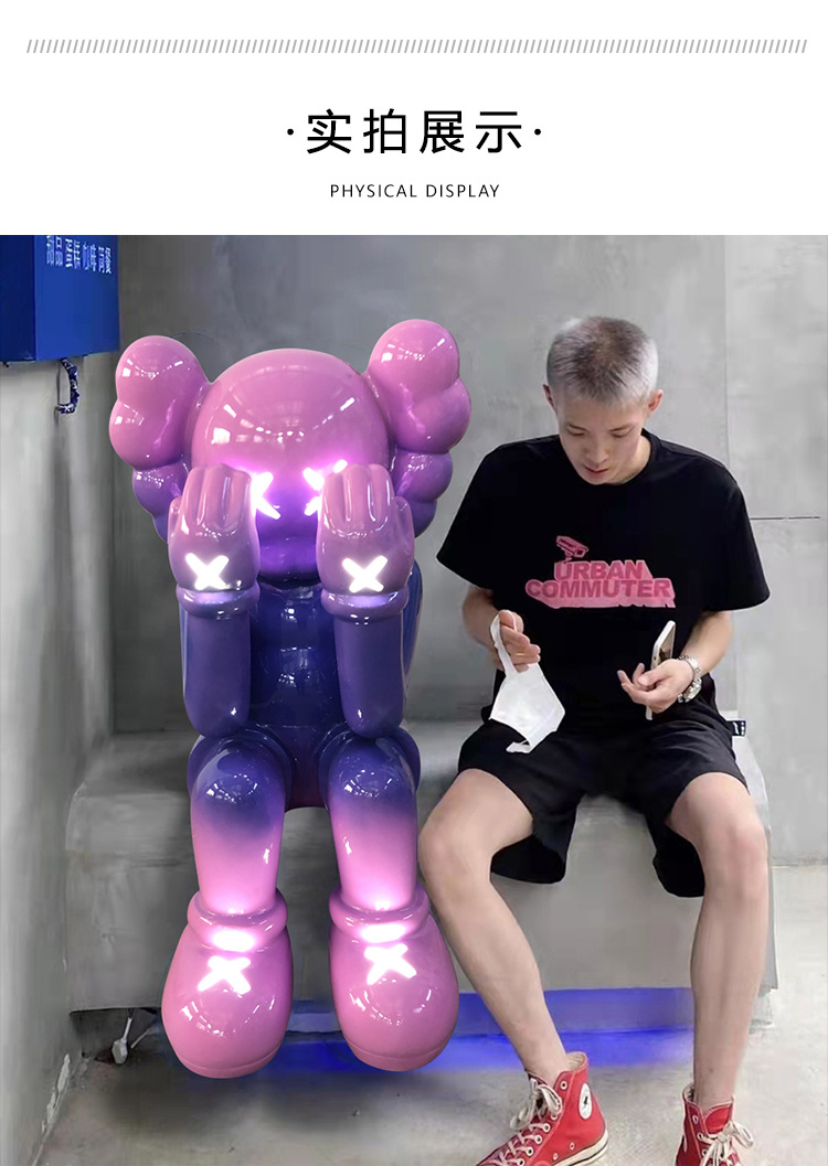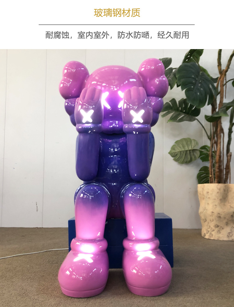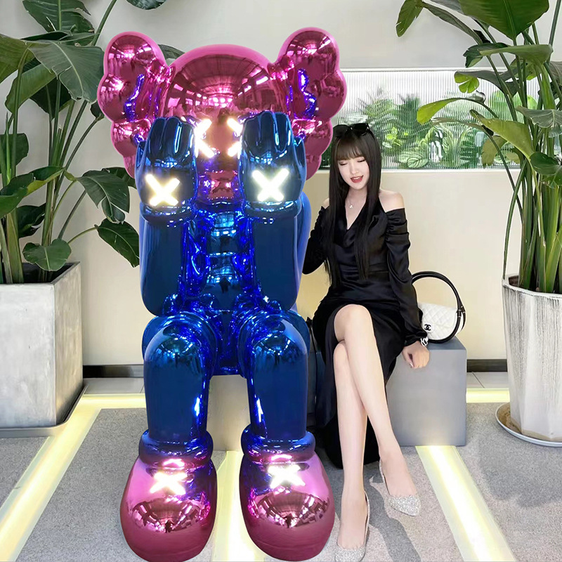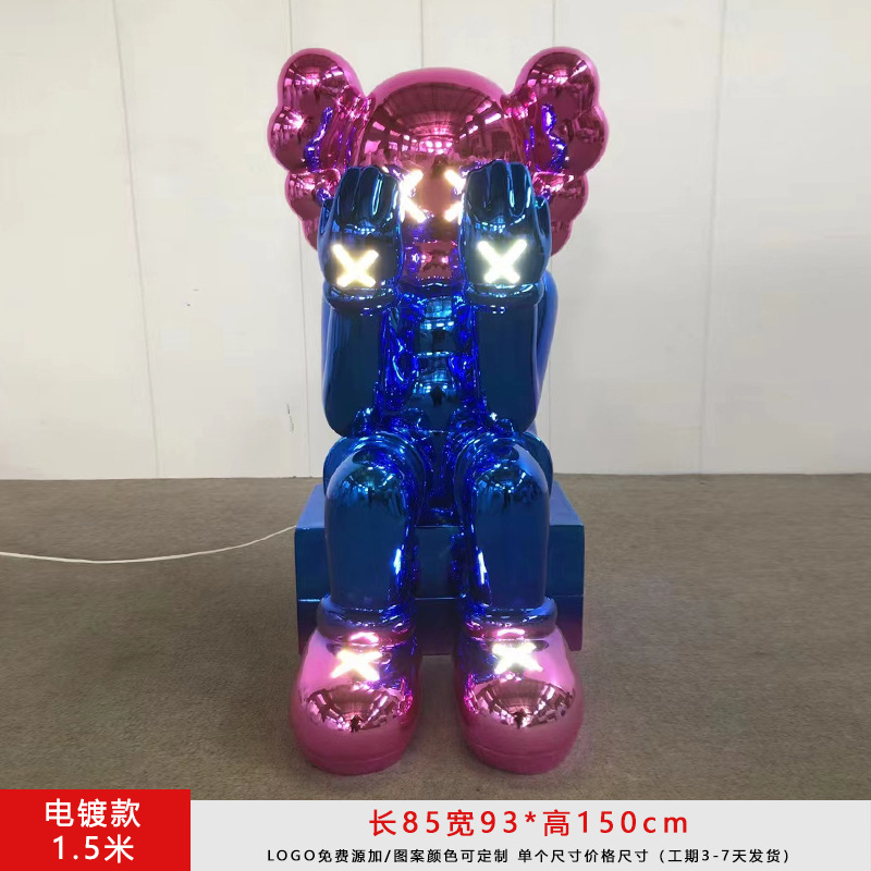 暴力熊公仔电镀发光kaws大摆件坐姿雕塑橱窗酒吧ktv客厅落地装饰
