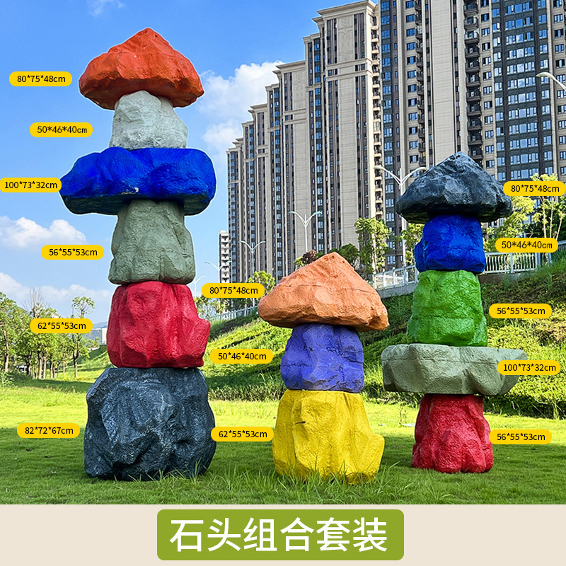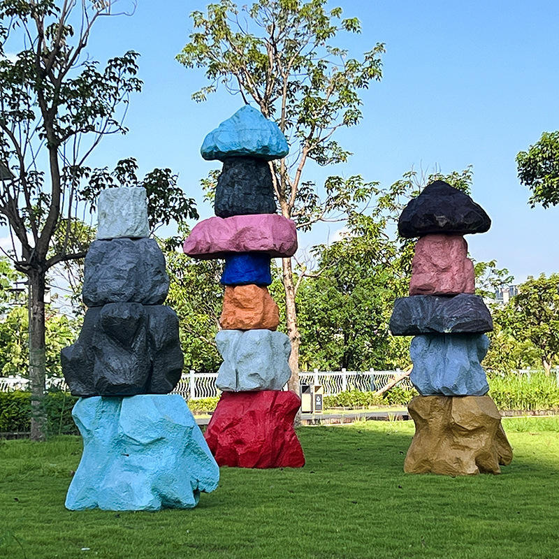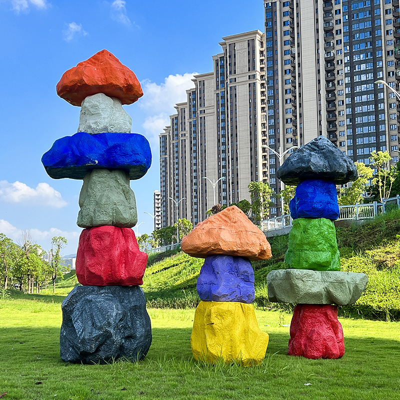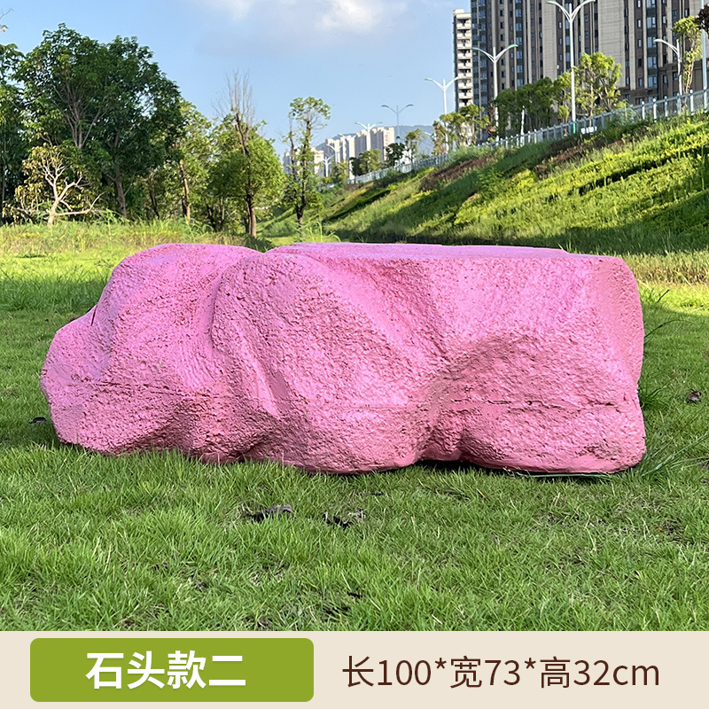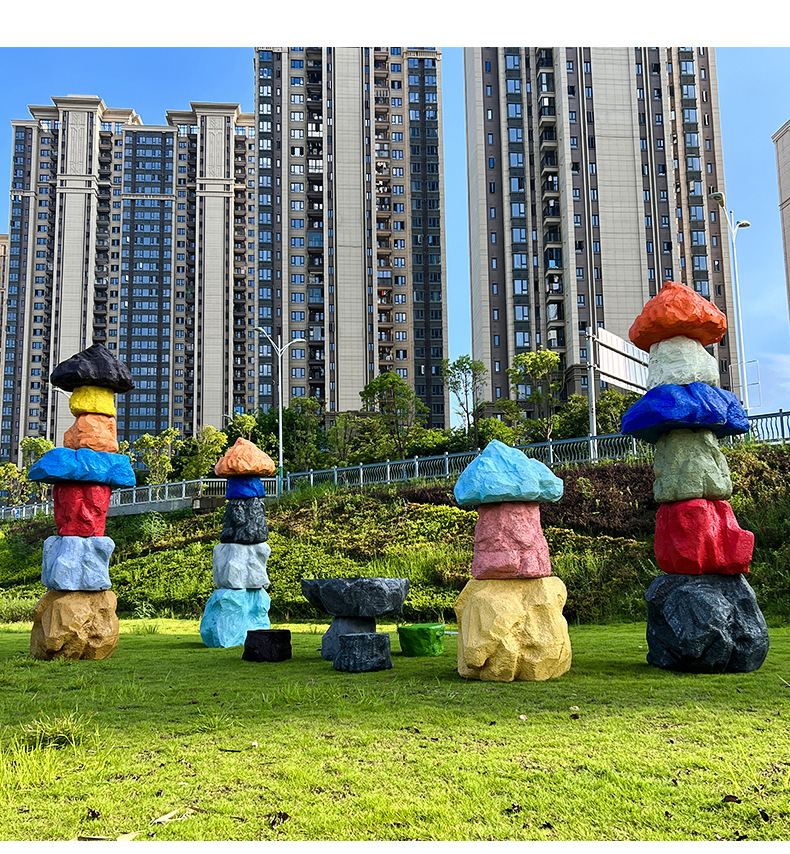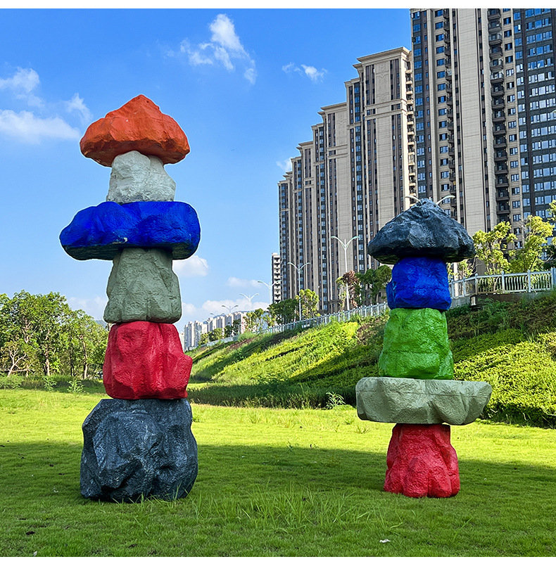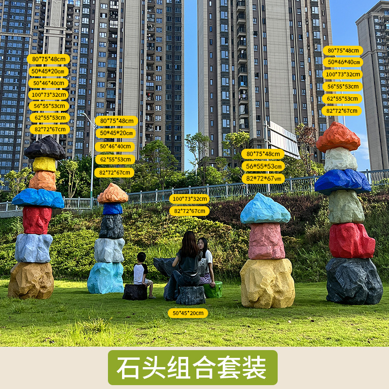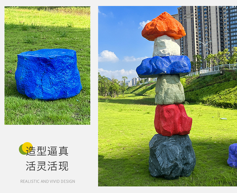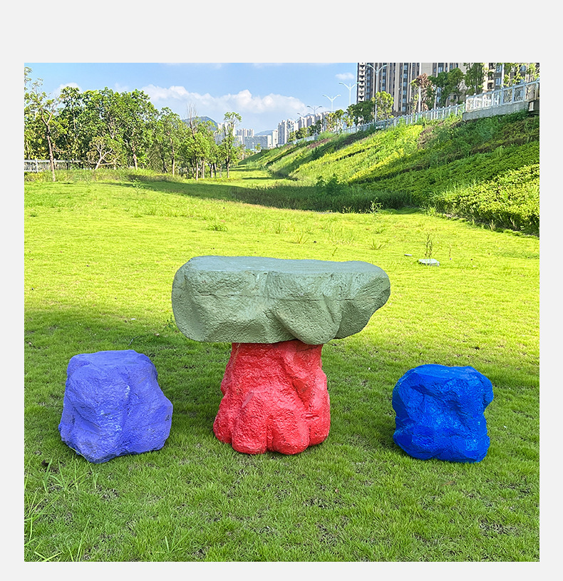 户外网红彩色石头座椅雕塑玻璃钢仿真造景庭院景区草坪装饰大摆件